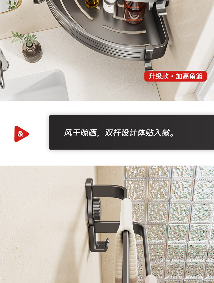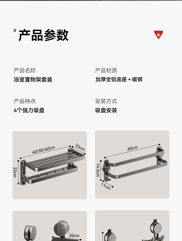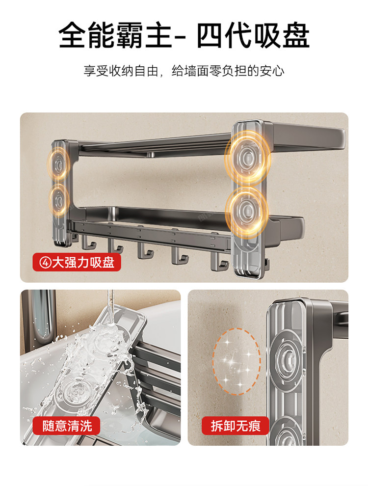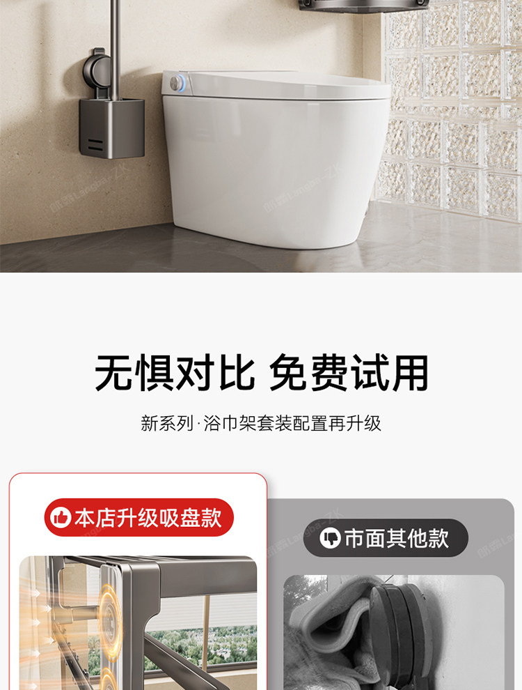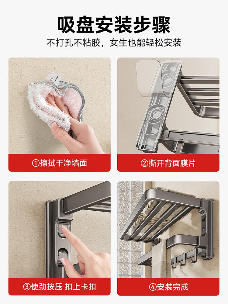 Suction Cup Bathroom Towel Rack, No-Drill Toilet and Bathroom Storage Rack, High-End Integrated Bath Towel Rack with Hanging Rod