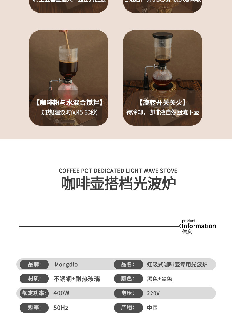 Mongdio siphon pot light wave oven coffee siphon pot household glass heating set infrared halogen lamp