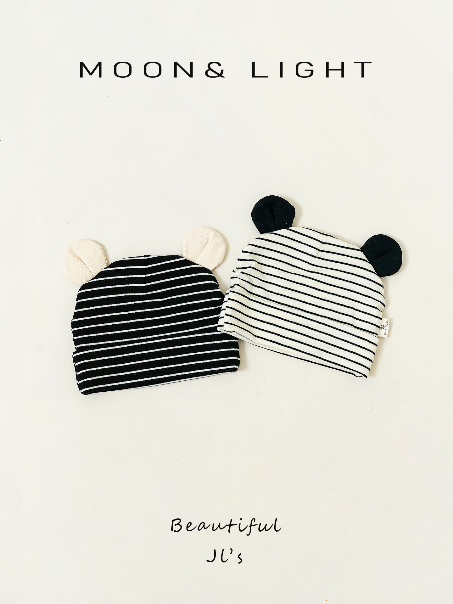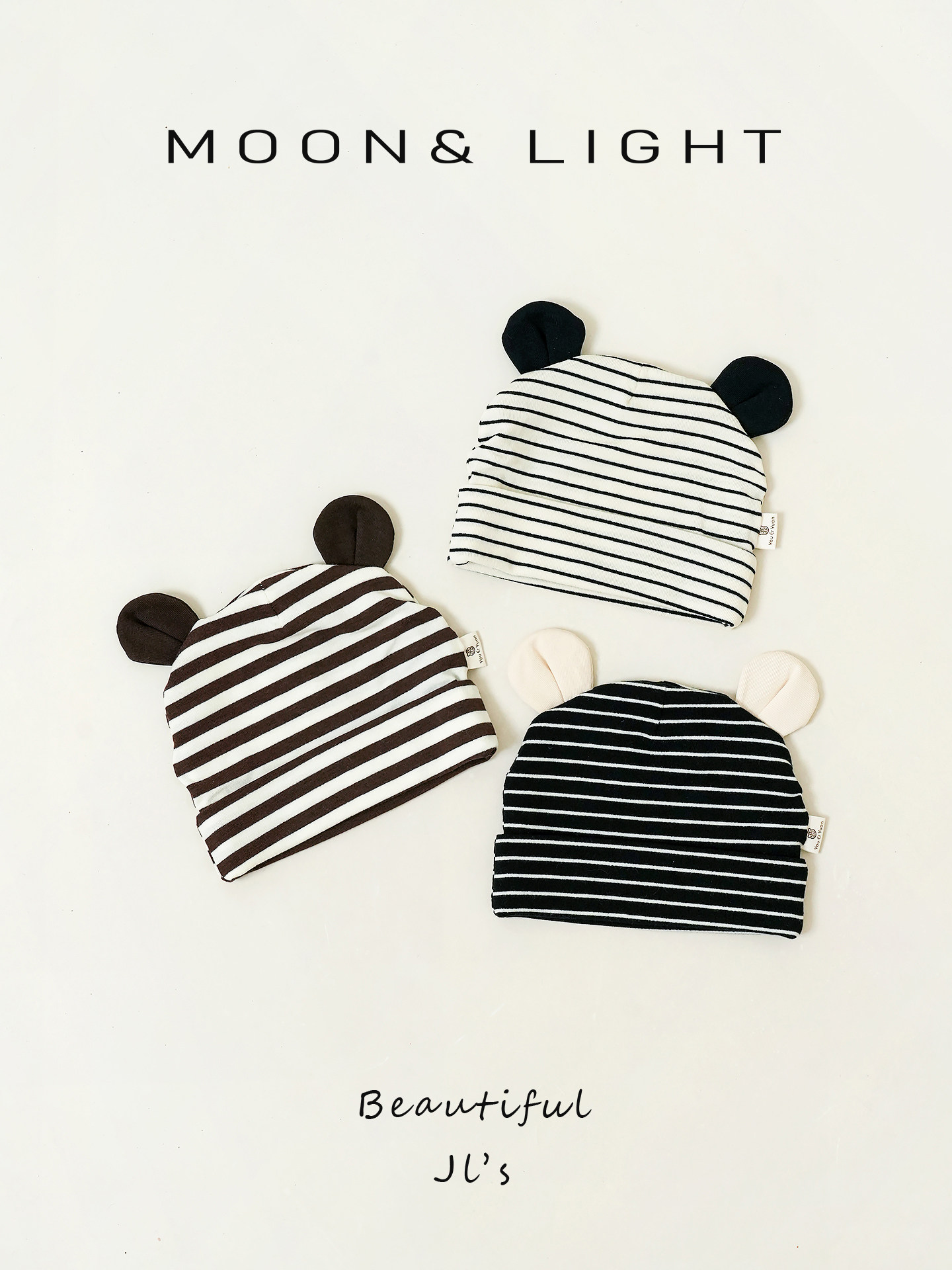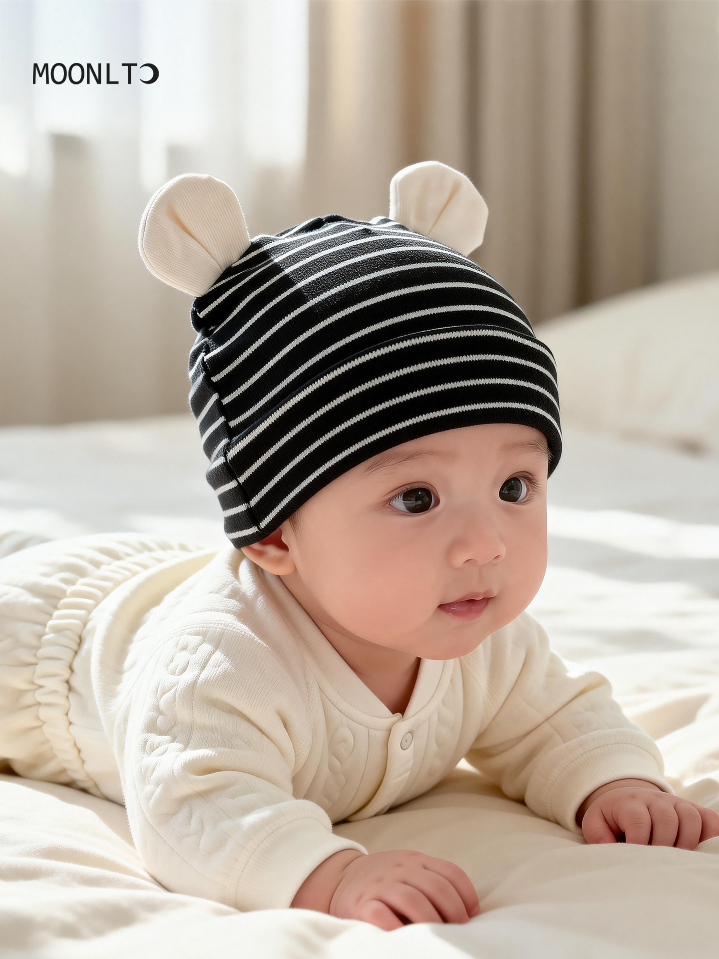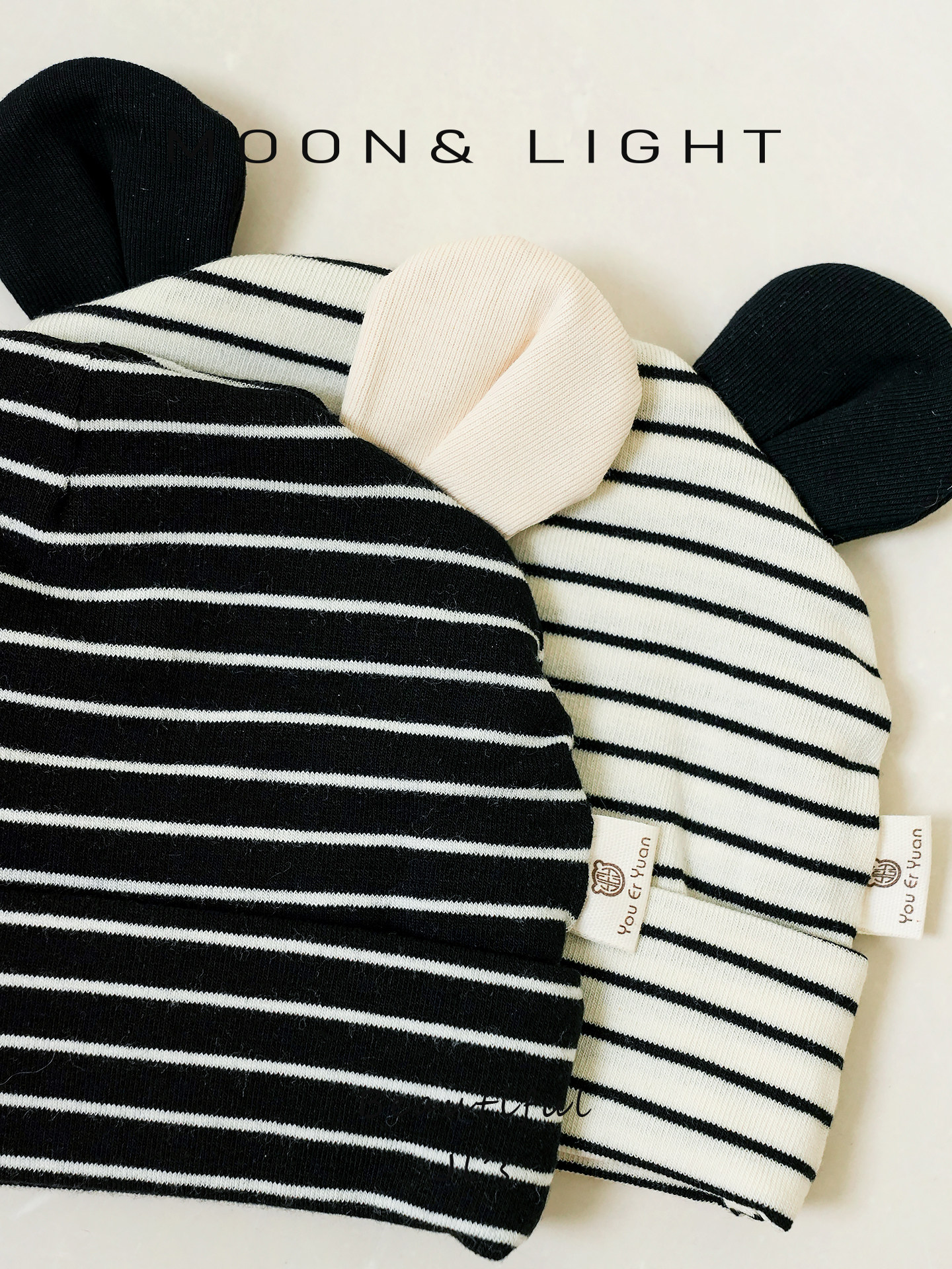 Infant and toddler hats, spring and autumn striped ears, sun protection, thin newborn baby hats, male and female babies, small-month-old pullover hats
