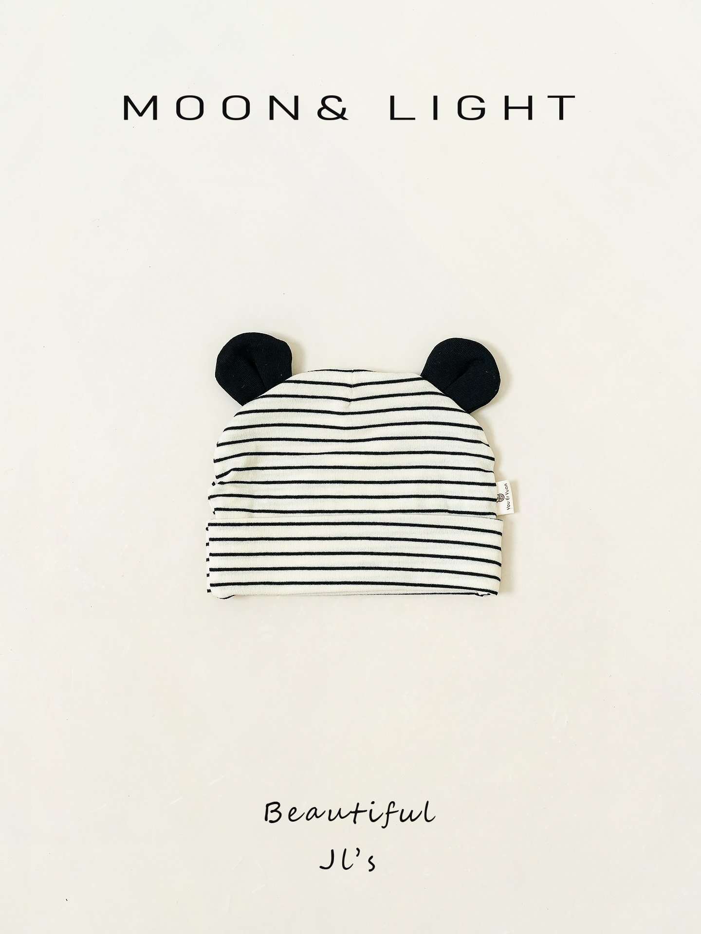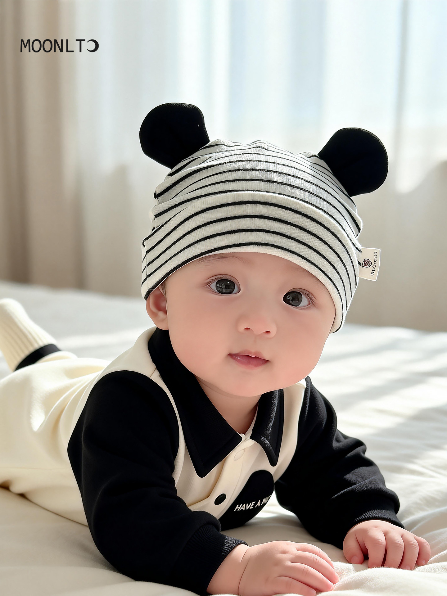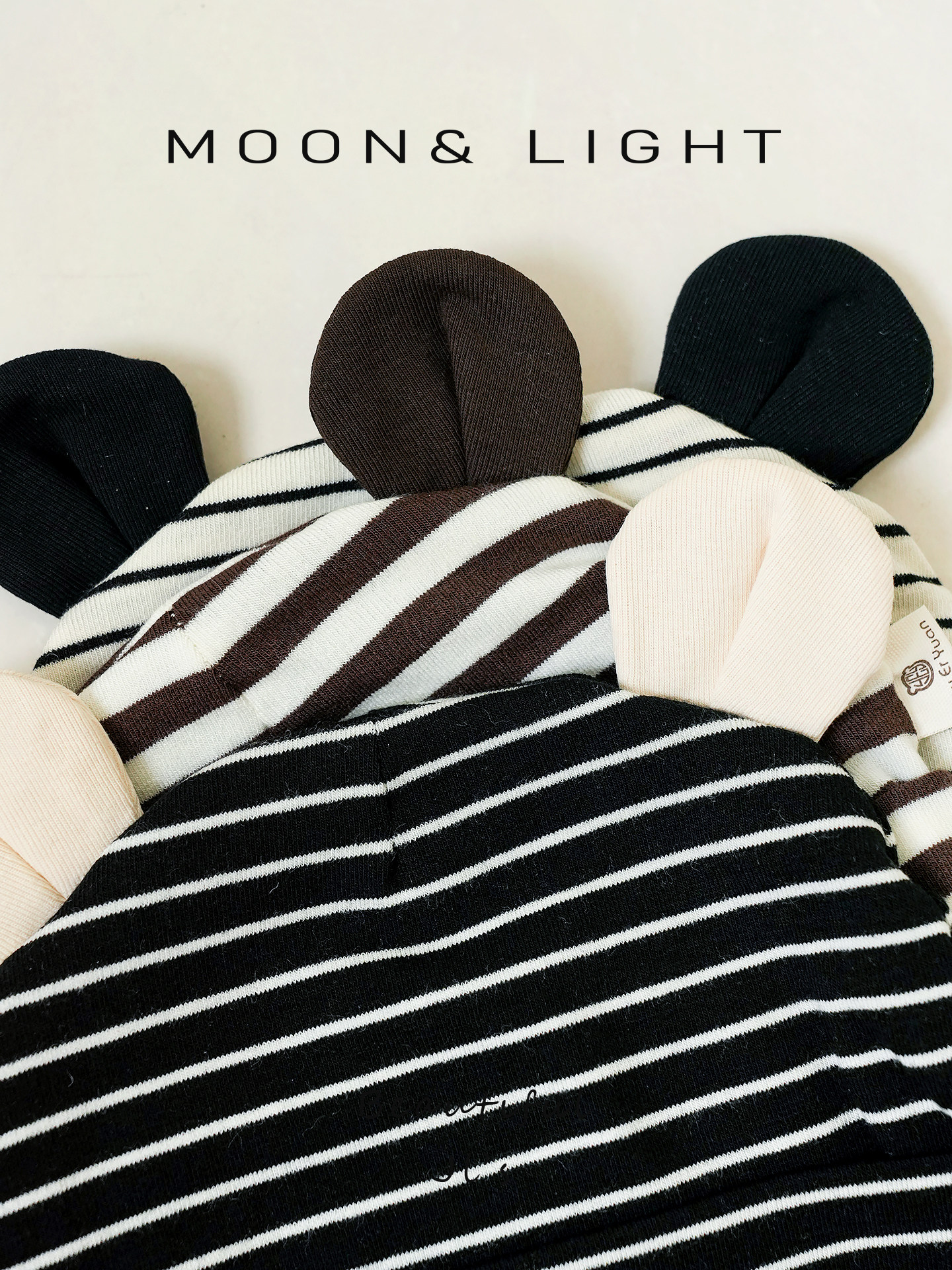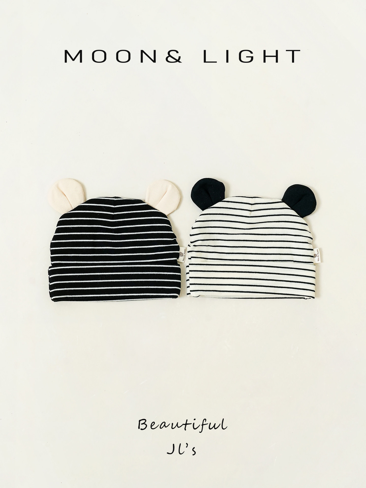 Infant and toddler hats, spring and autumn striped ears, sun protection, thin newborn baby hats, male and female babies, small-month-old pullover hats