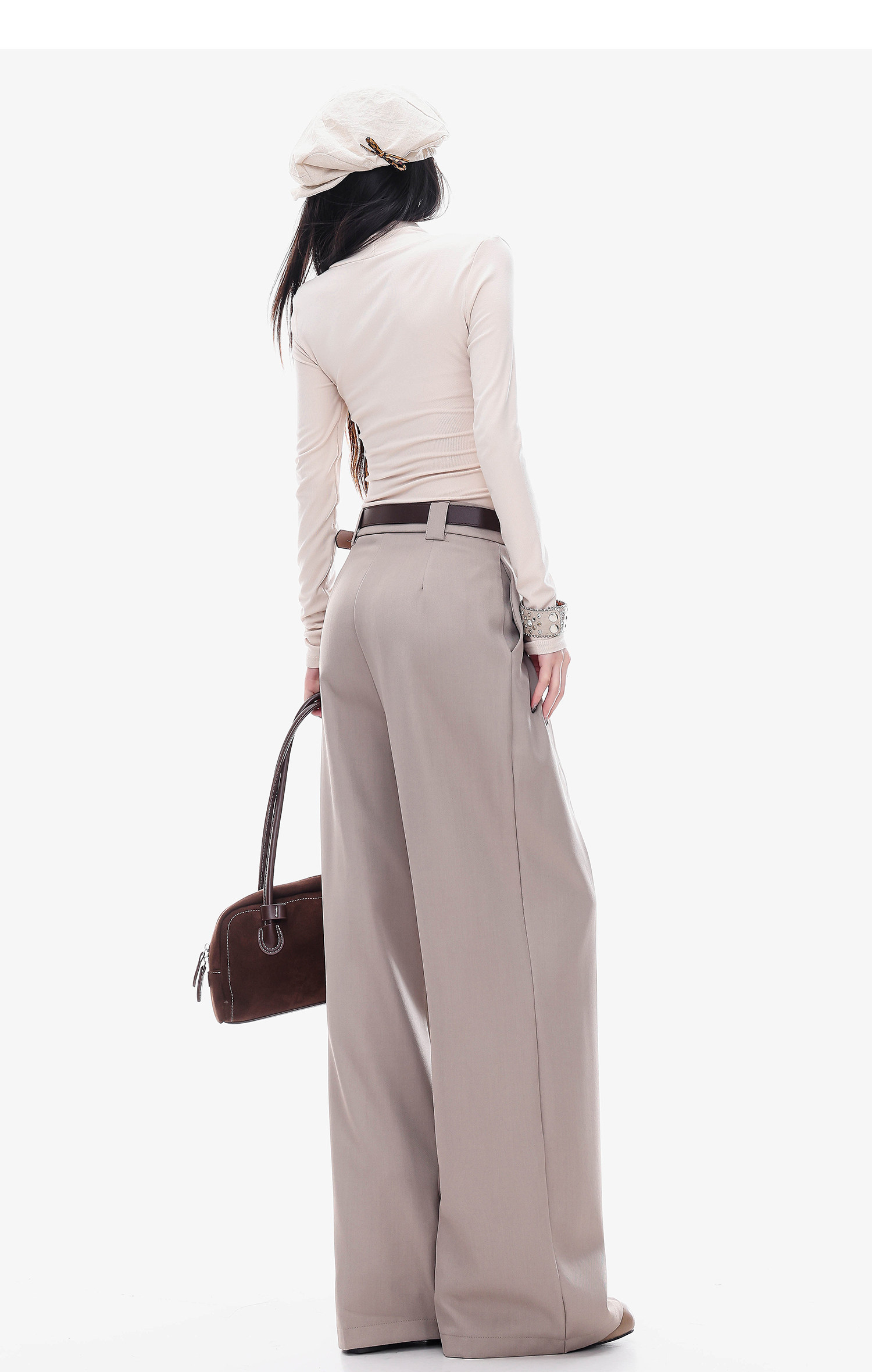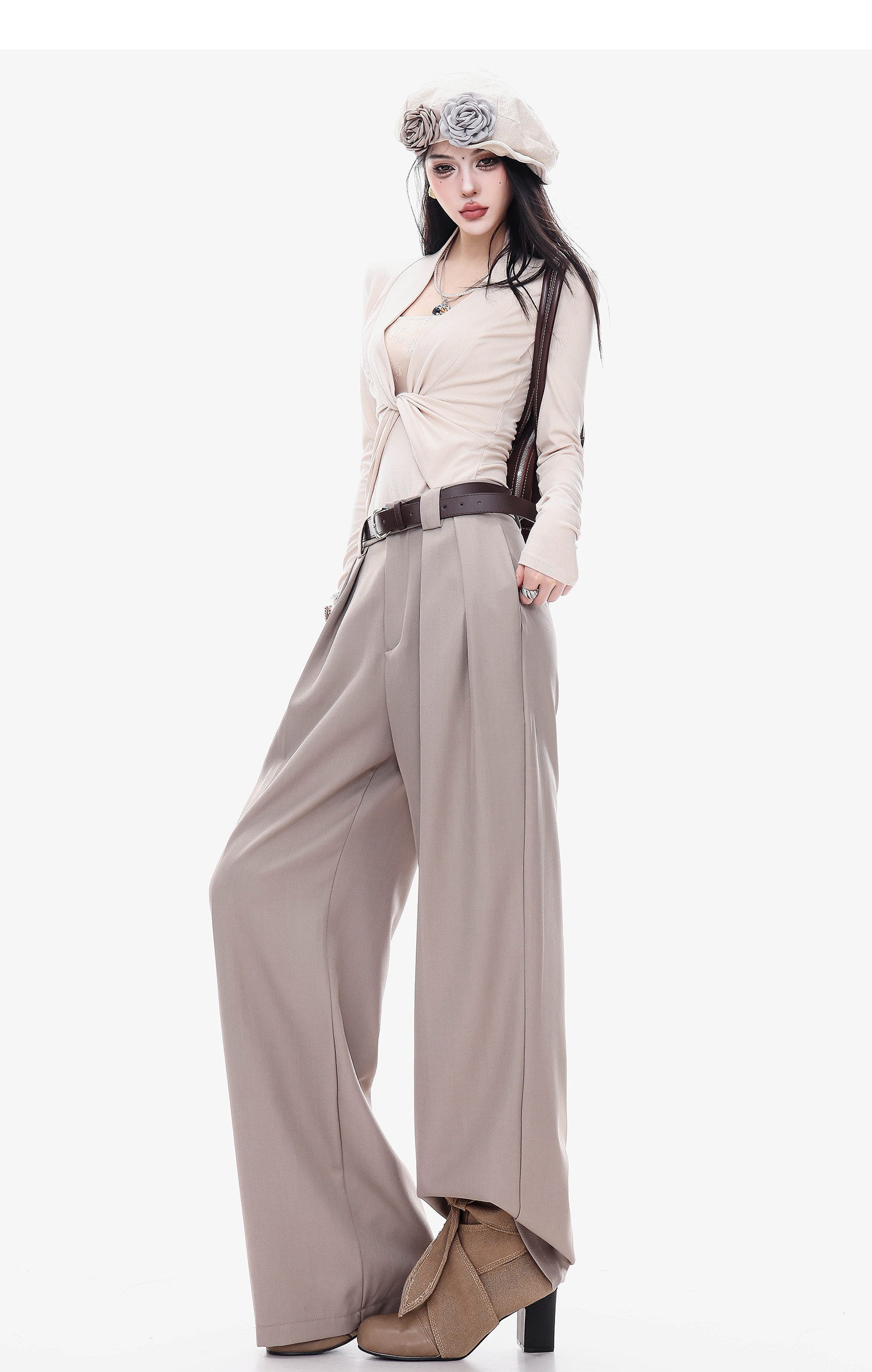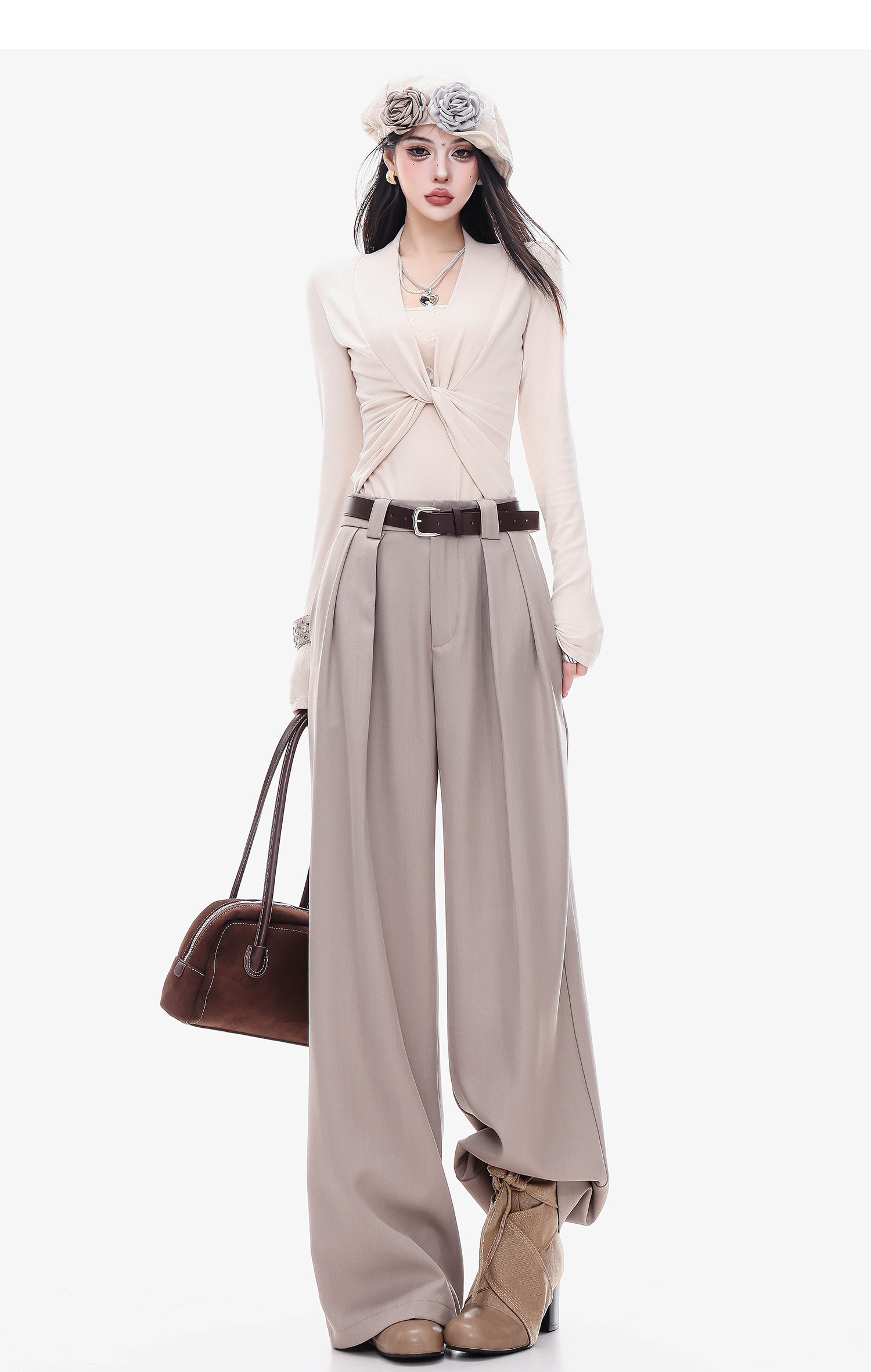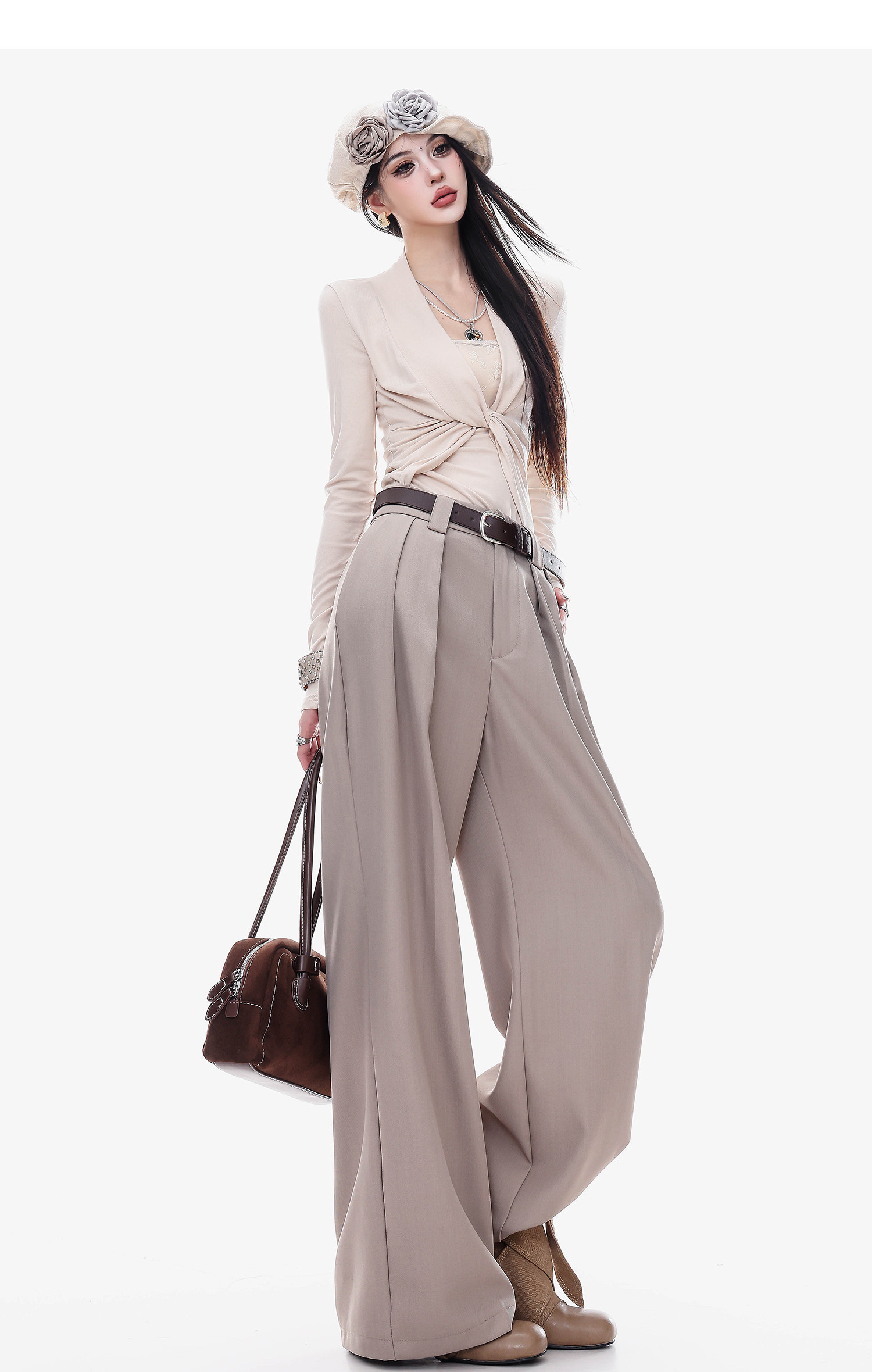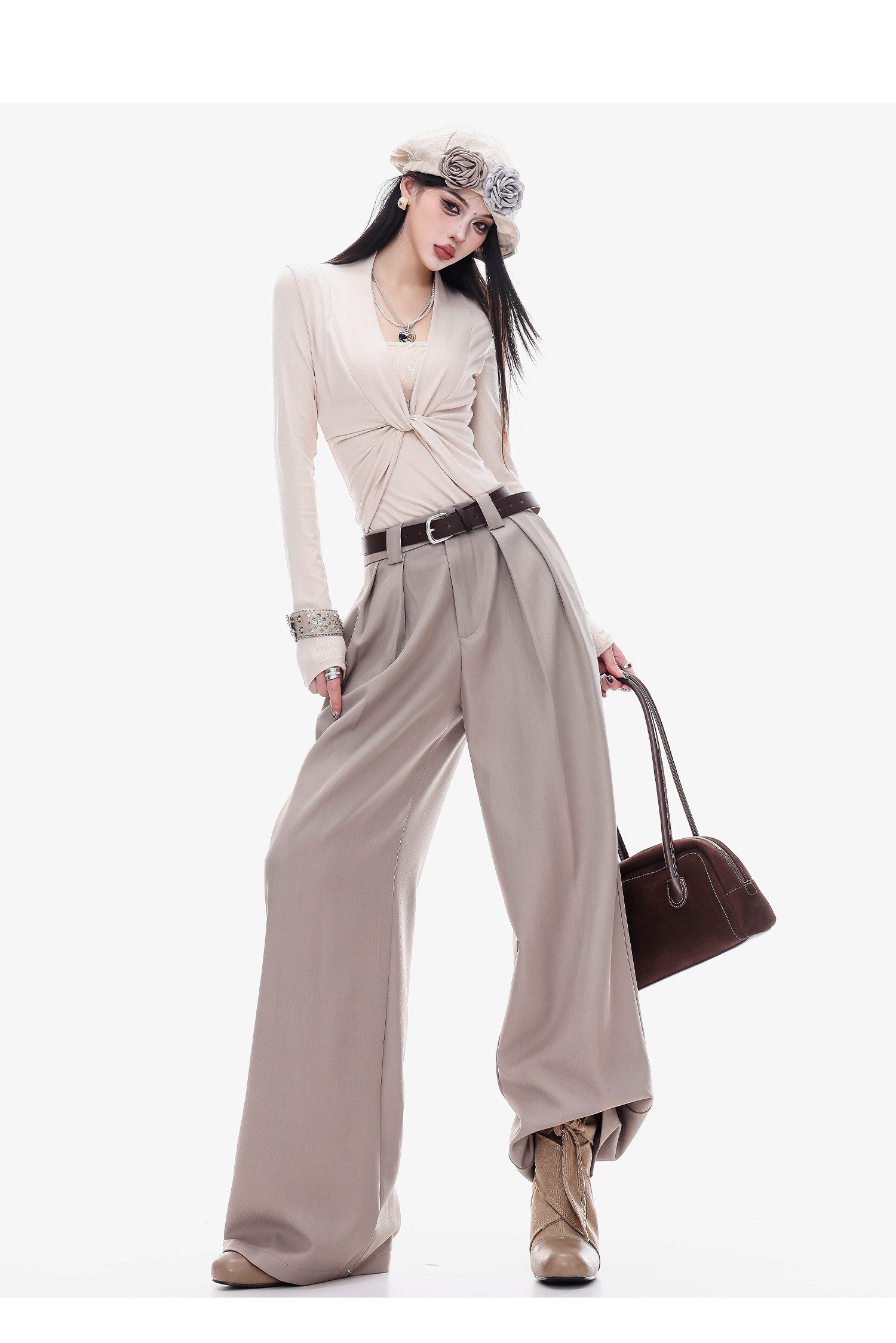 Abwlr Original Spring and Autumn Minimalist Style Pleated Wide-Leg Pants for Women, Loose Fit, Draped Straight-Leg Pants, Versatile for Commuting and Casual Wear