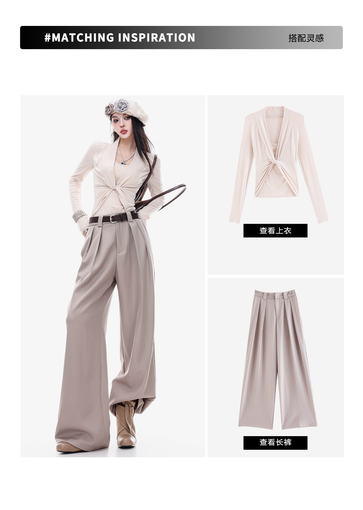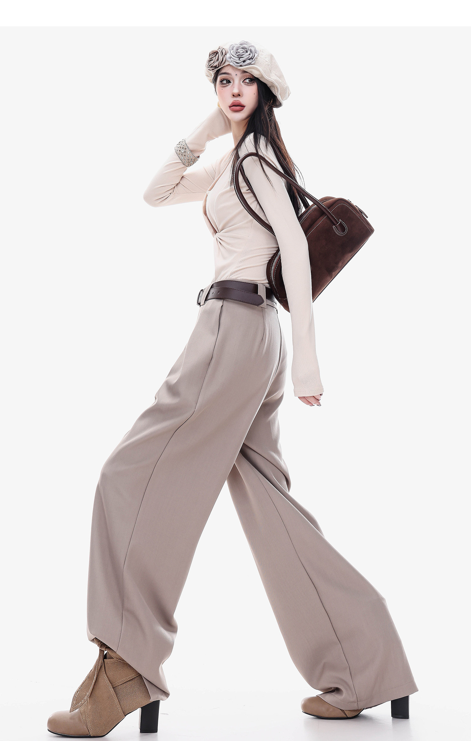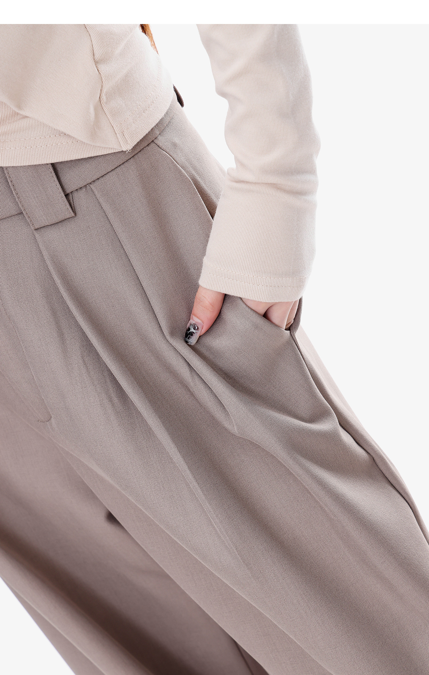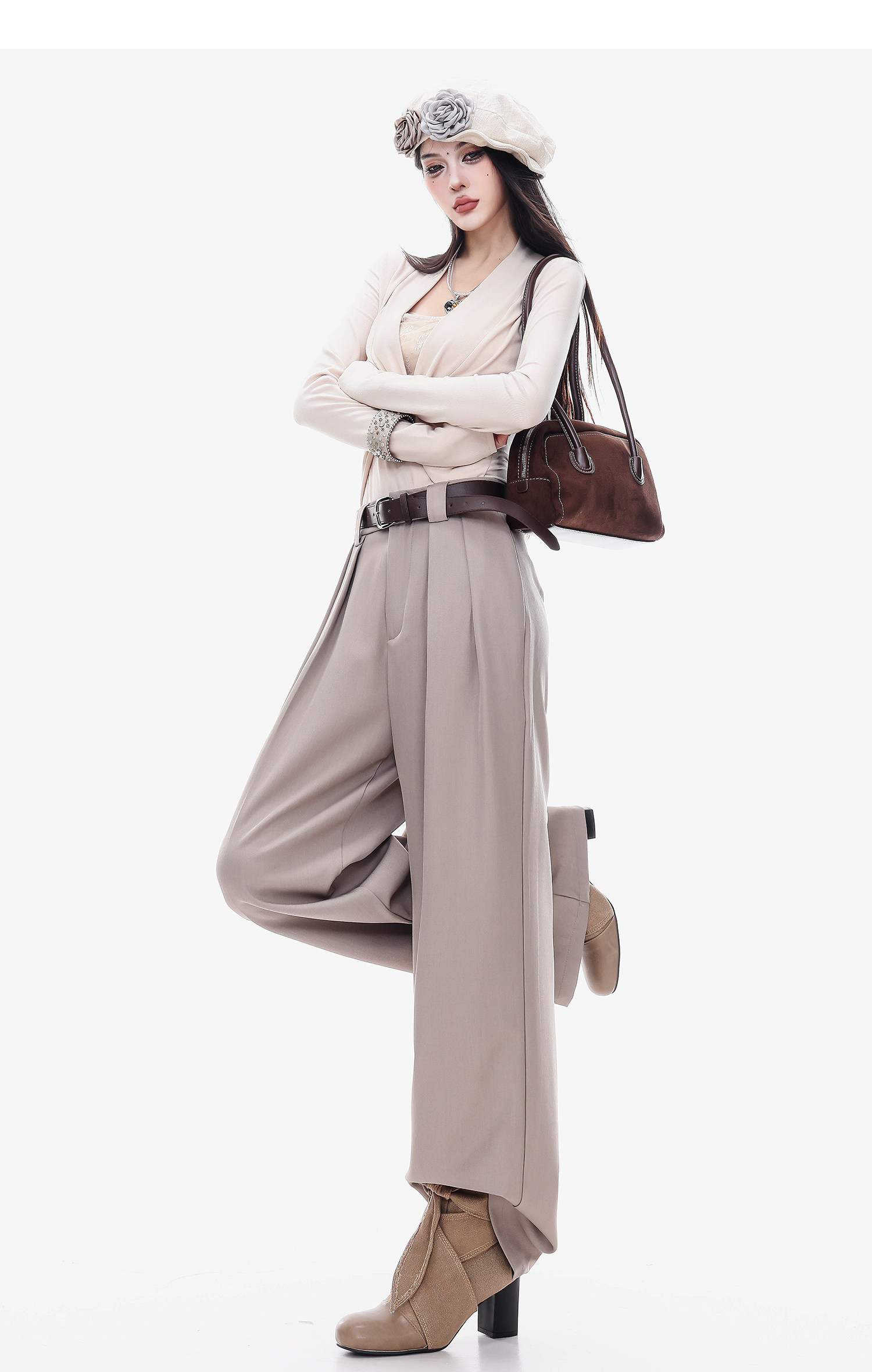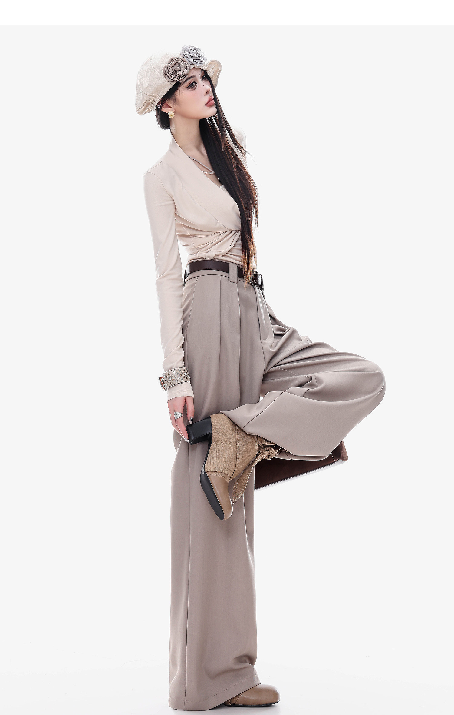 Abwlr Original Spring and Autumn Minimalist Style Pleated Wide-Leg Pants for Women, Loose Fit, Draped Straight-Leg Pants, Versatile for Commuting and Casual Wear