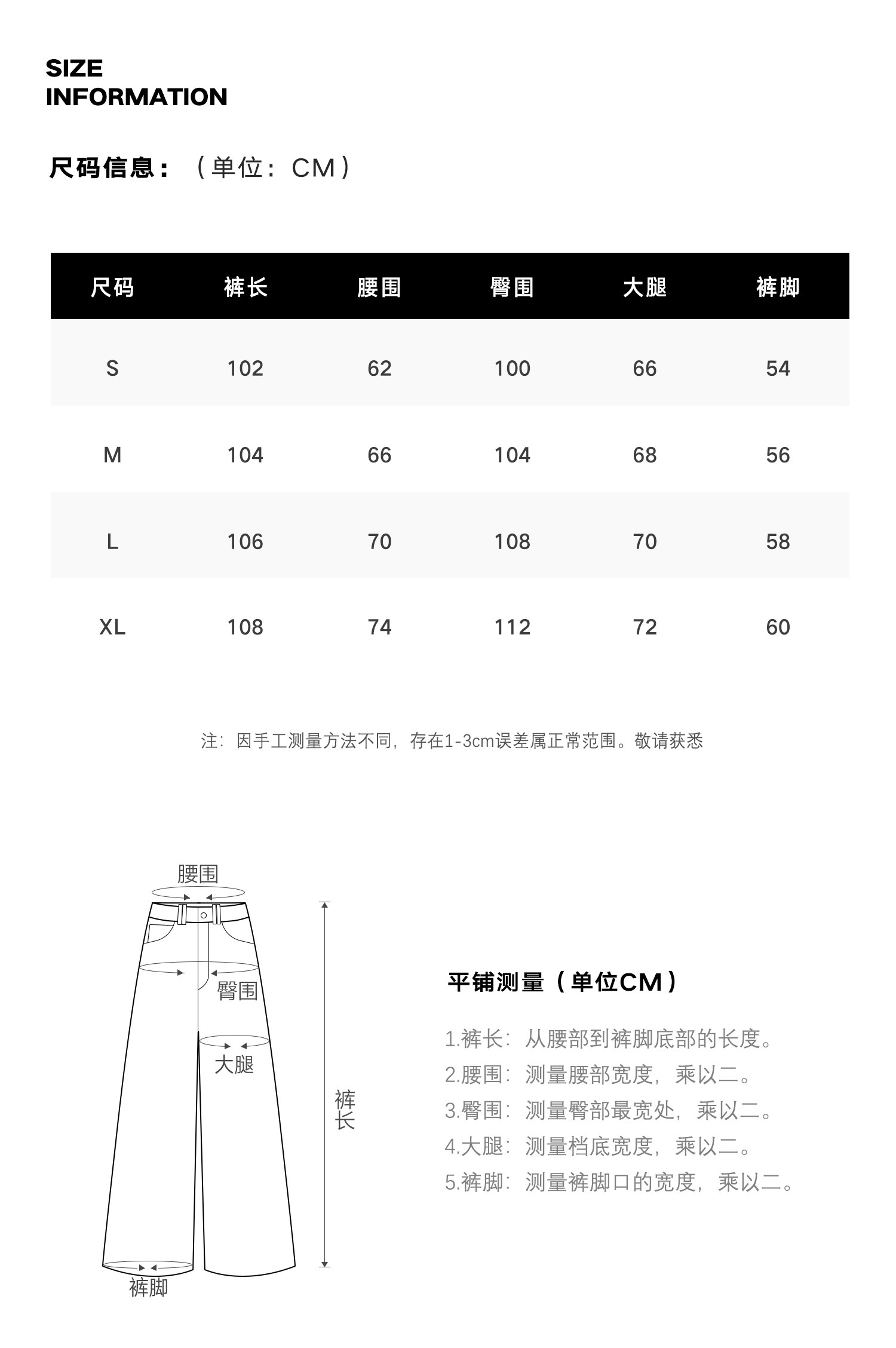 Outseam (cm) 99 cm 101.5 cm 104 cm 106.5 cm 109 cm
