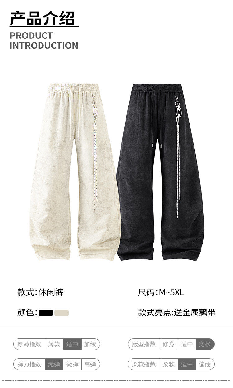 [Includes Detachable Strap]American Retro Tie-Dye Casual Pants for Men and Women, Spring Trendy Brand Sports Wide-Leg Pants