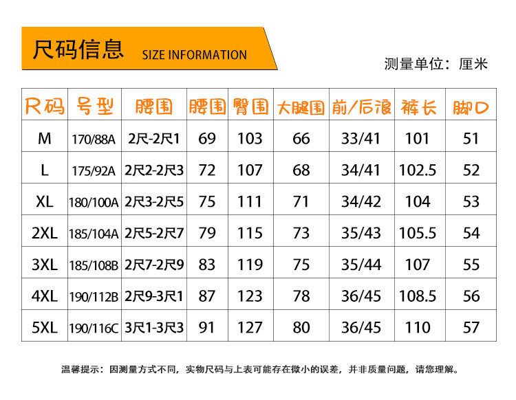 Outseam (cm) 99 cm 101.5 cm 104 cm 106.5 cm 109 cm
