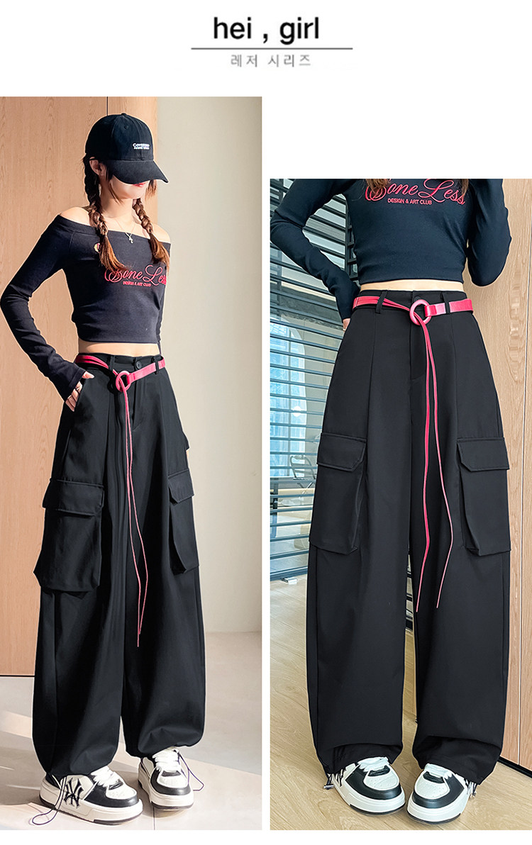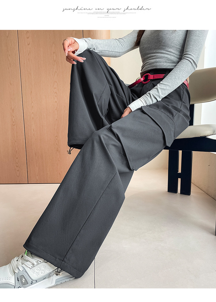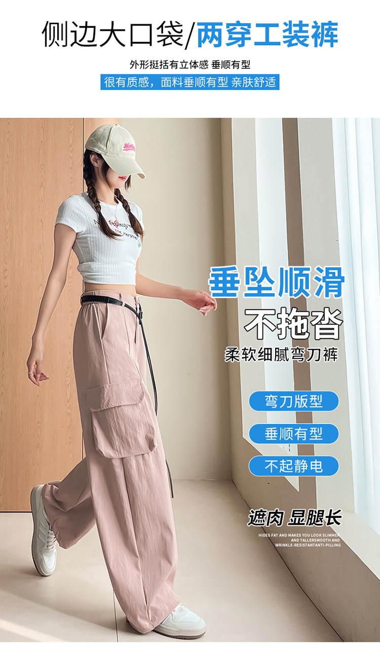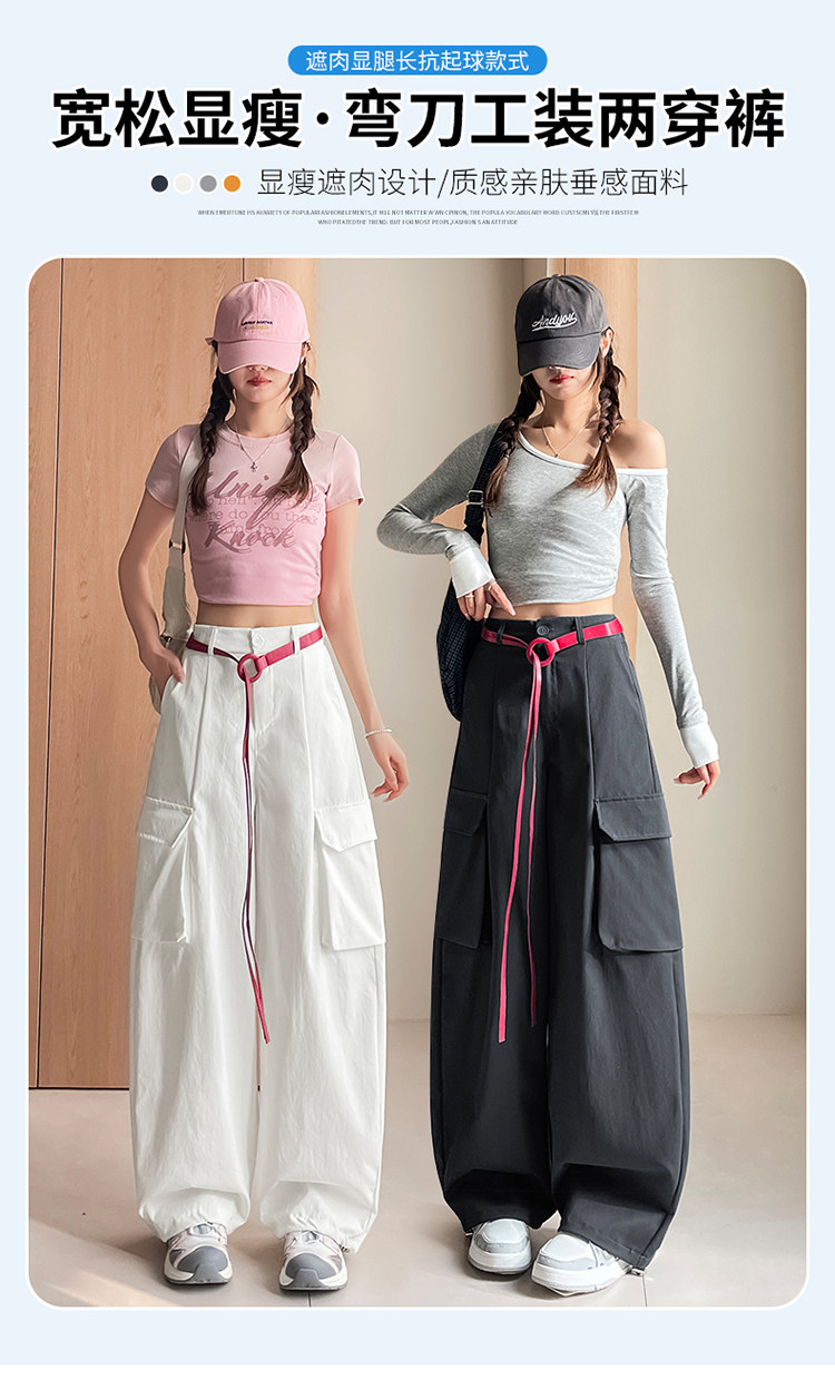 美式两穿阔腿工装裤女春季宽松显瘦垂感弯刀裤百搭休闲束脚运动裤