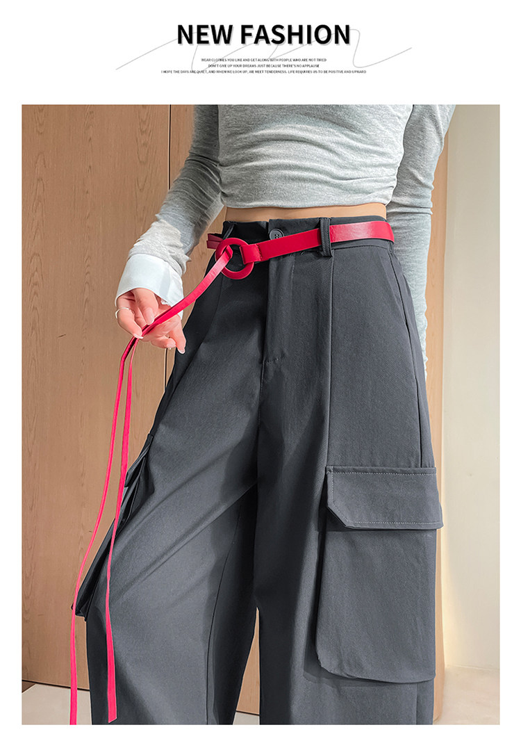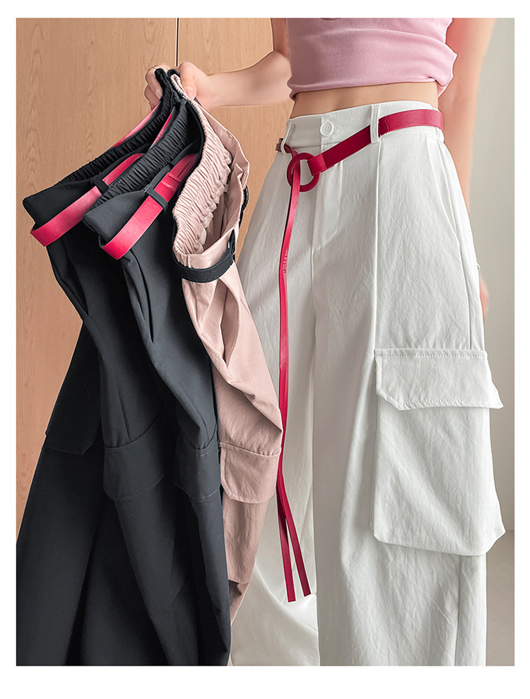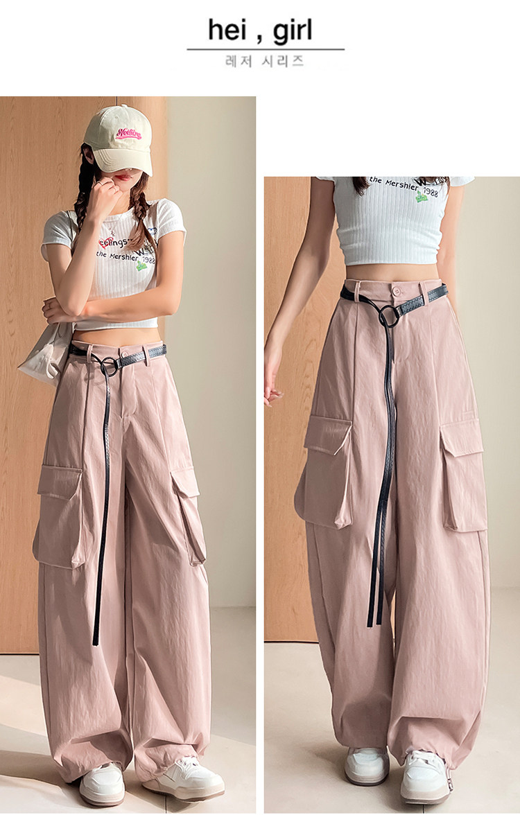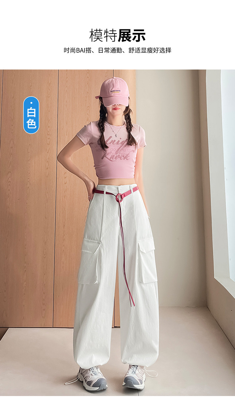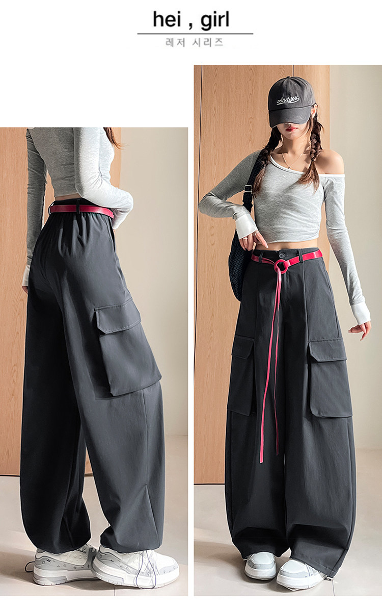 美式两穿阔腿工装裤女春季宽松显瘦垂感弯刀裤百搭休闲束脚运动裤