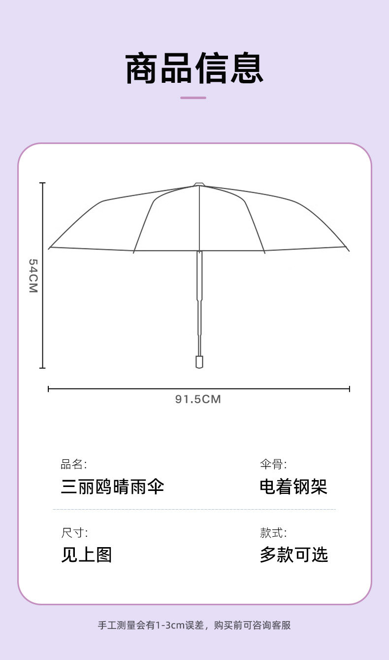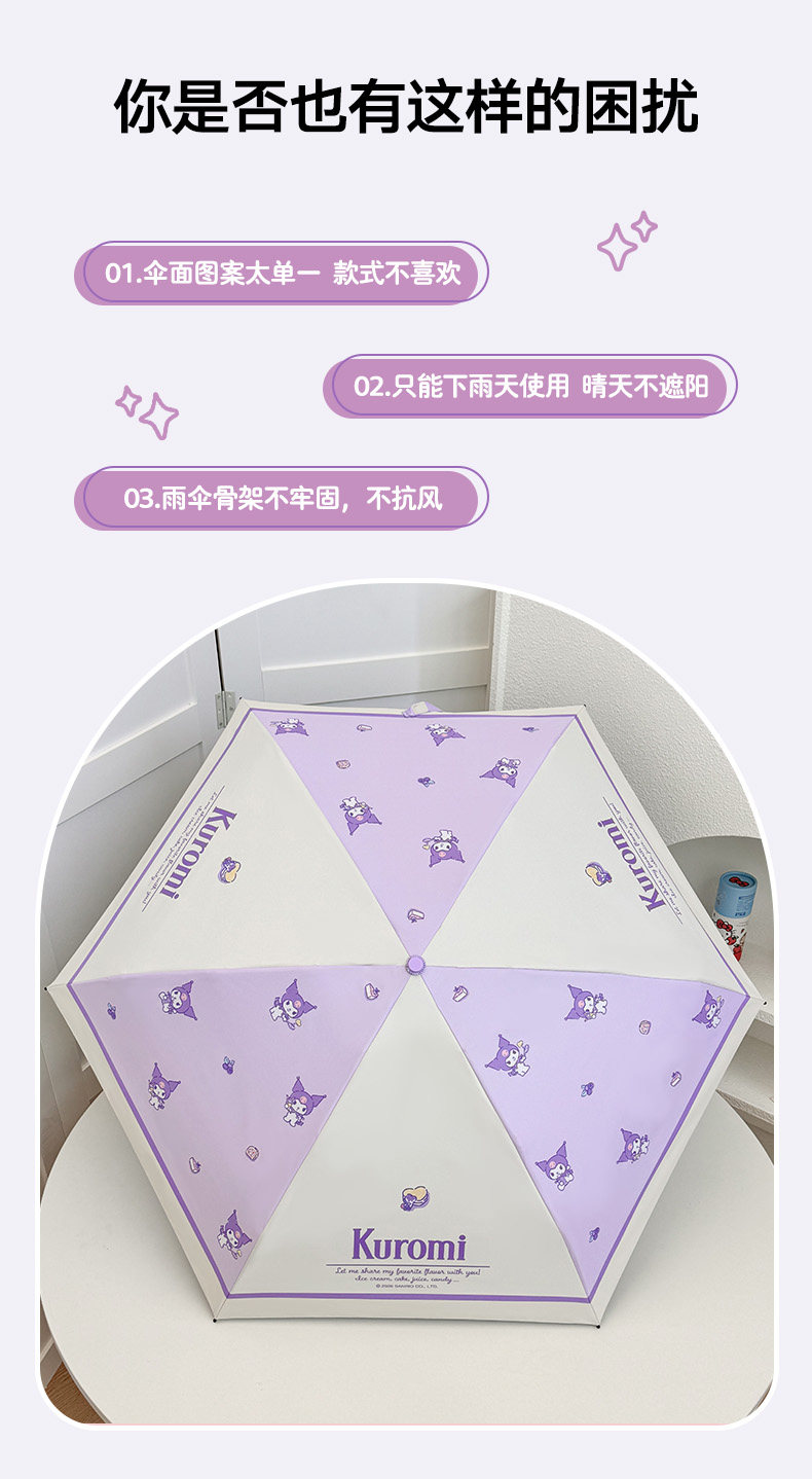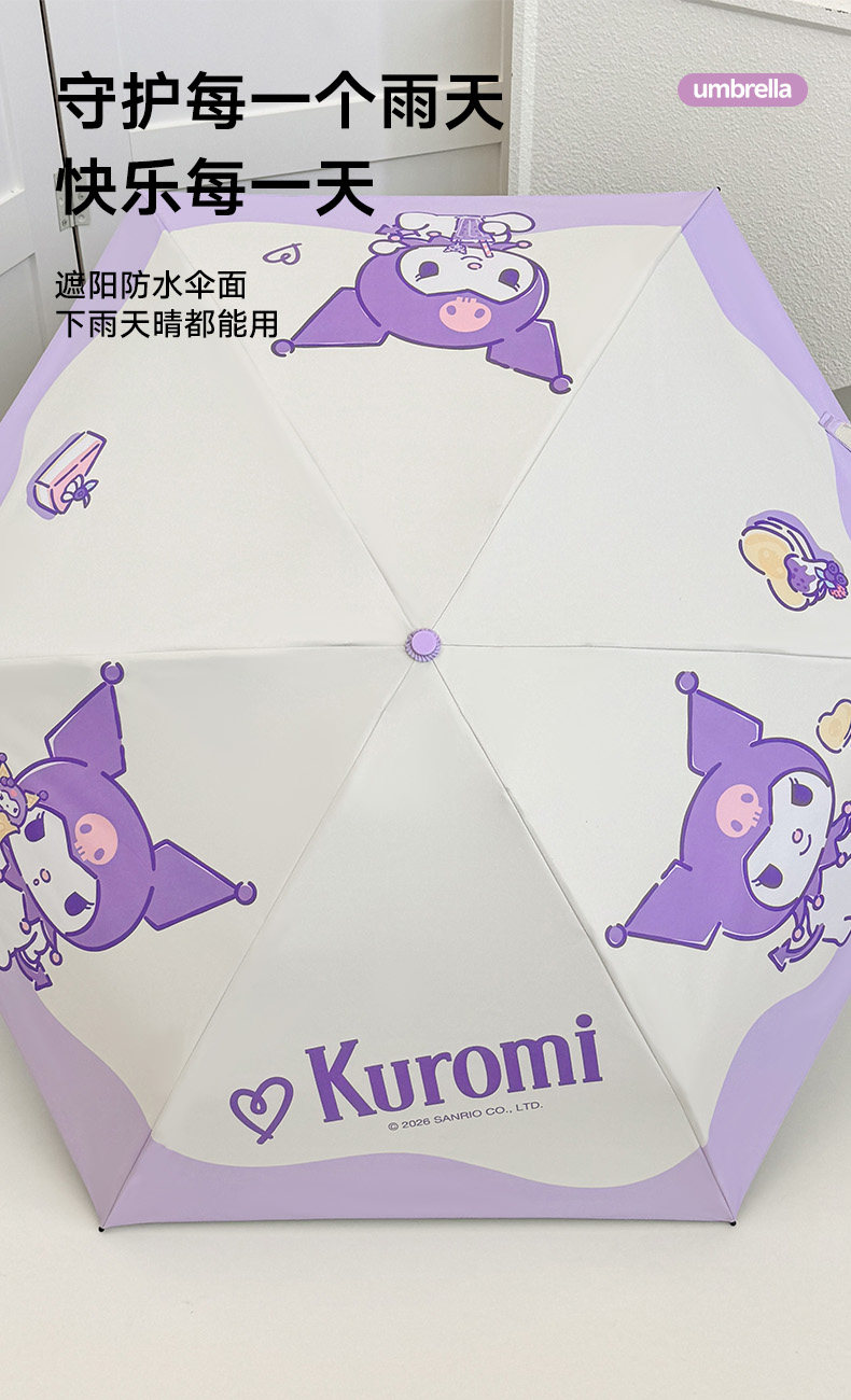 Genuine Sanrio Sun Umbrella Cartoon Student Thickened Little Girl Portable Windproof and Rainproof Cute Sunshade Folding Umbrella