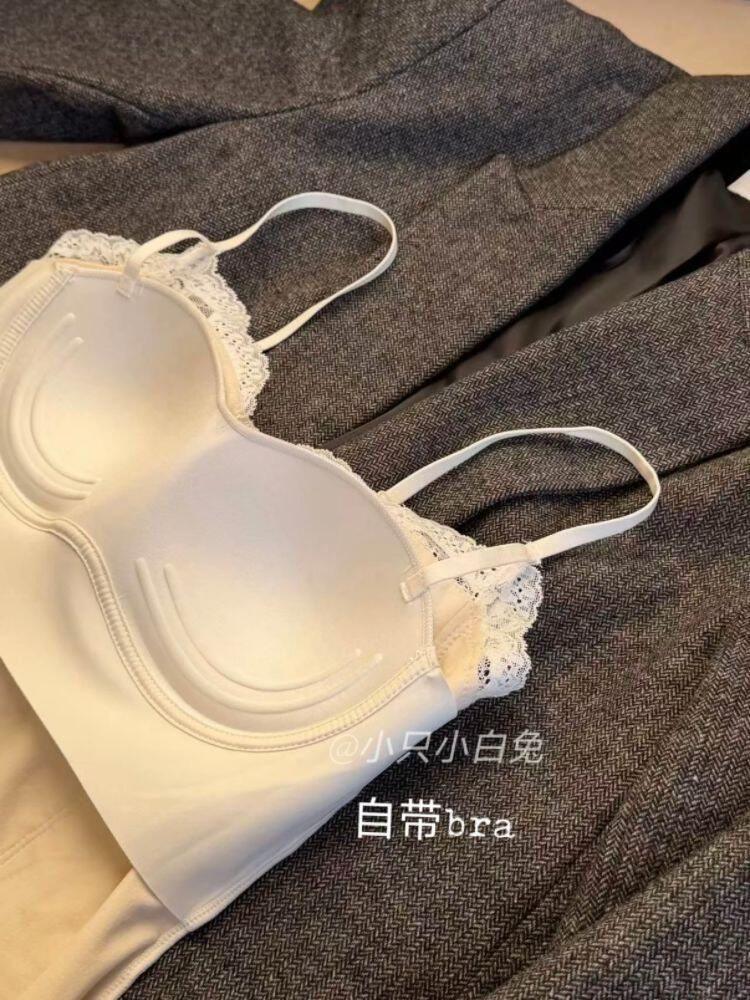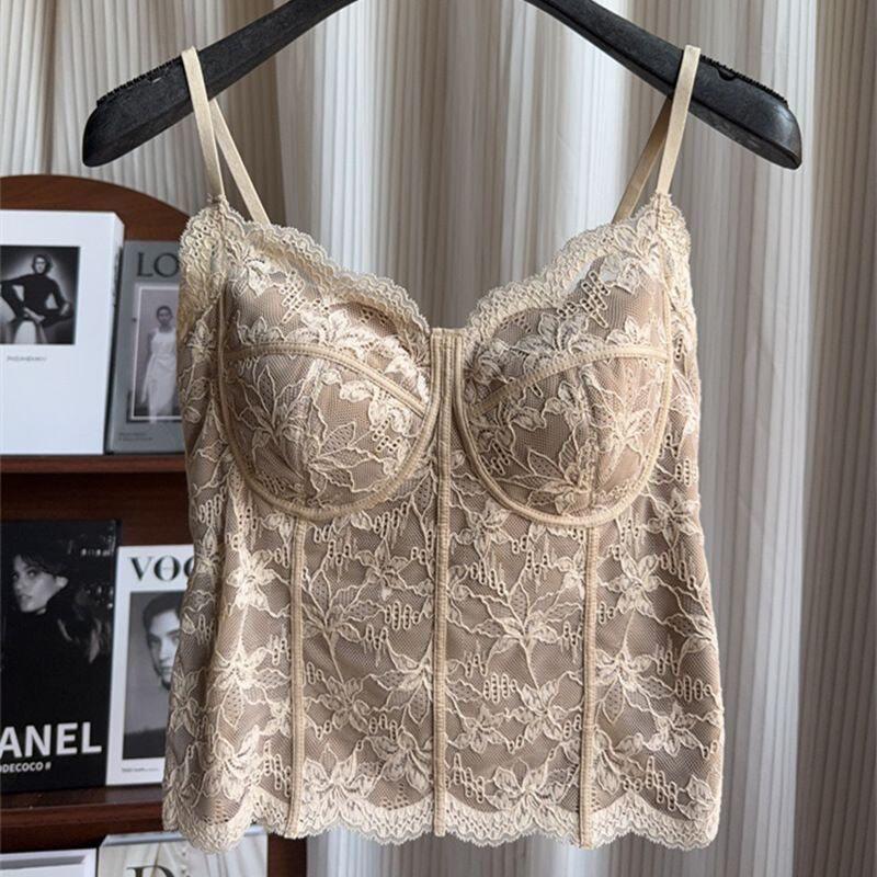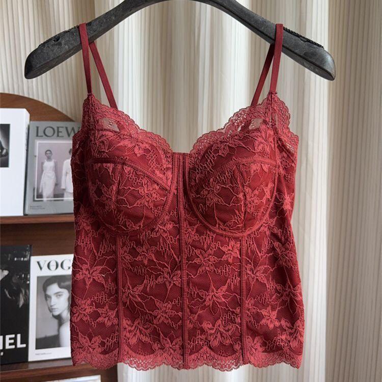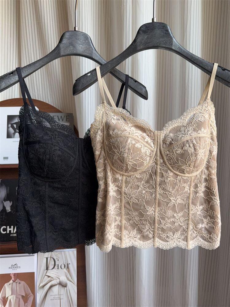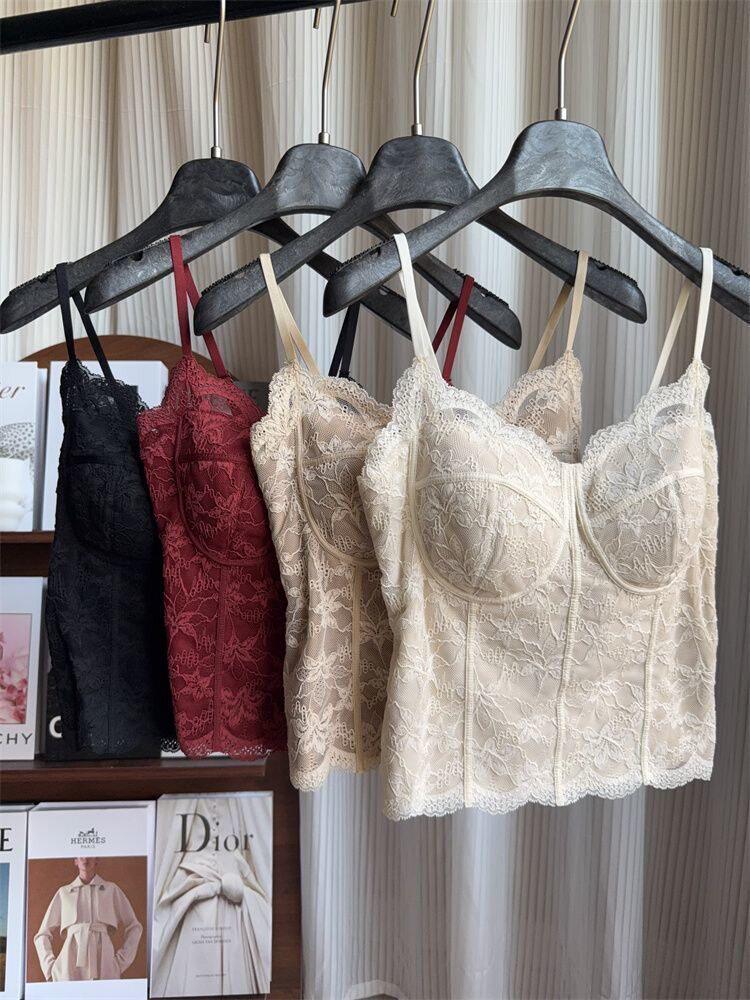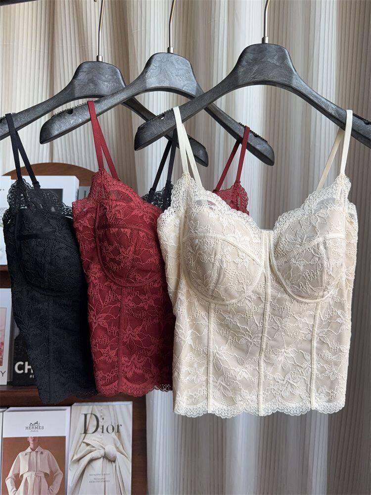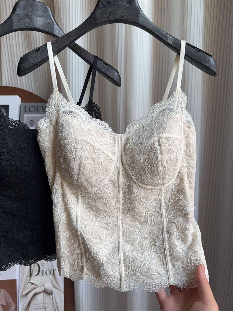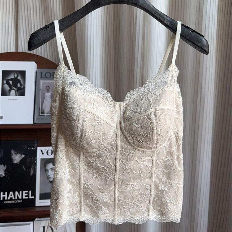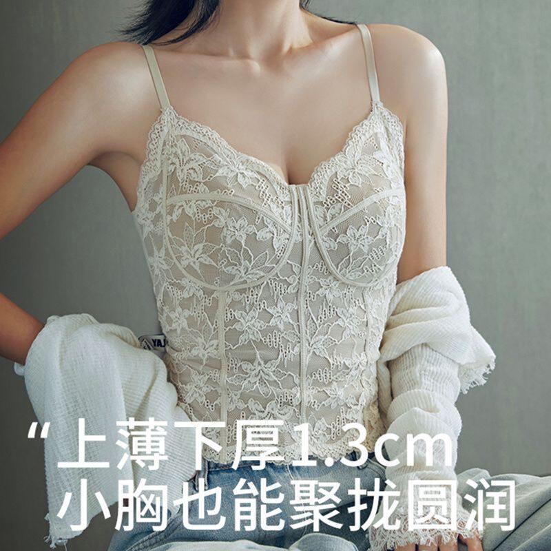 Summer 2026 New Style Slim Fit Camisole with Chest Pads for Women, Suitable for Wearing Inside or Outside, Lace Fishbone Top