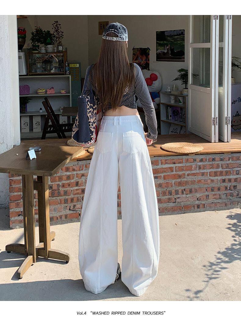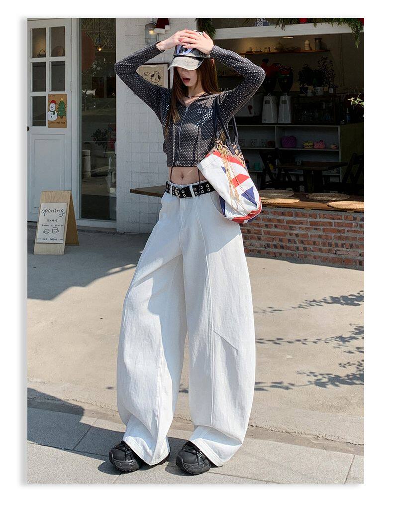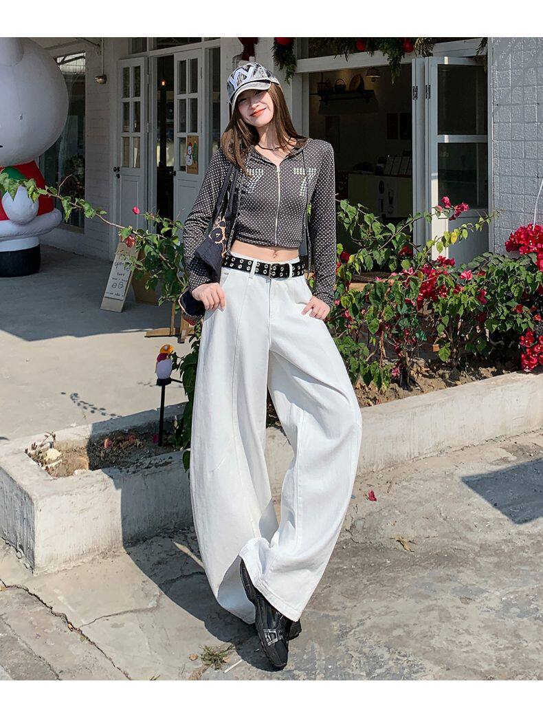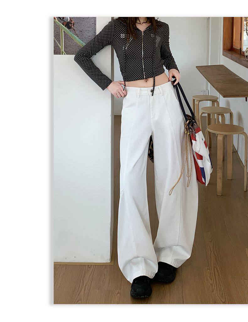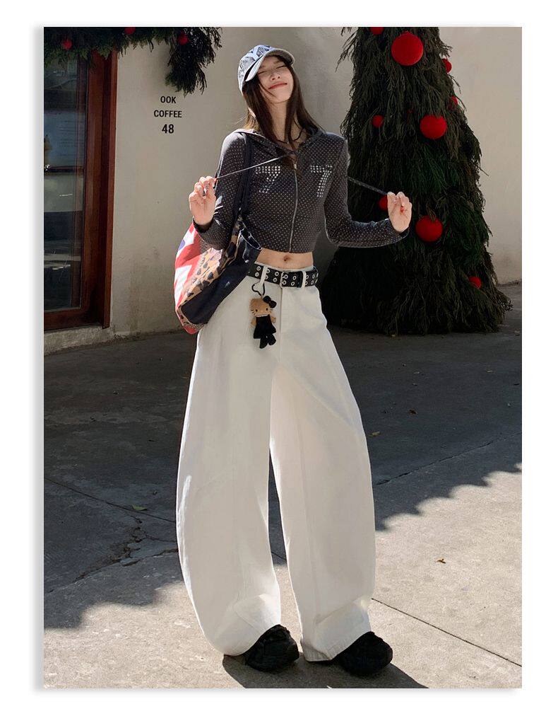 American-Style High-Waisted Curved-Leg Pants for Women, 2026 Winter New Loose Wide-Leg Jeans, Extended Length Versatile Floor-Length Pants