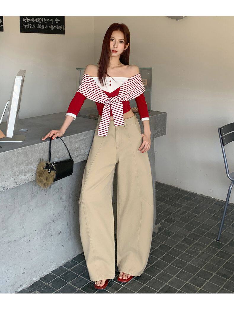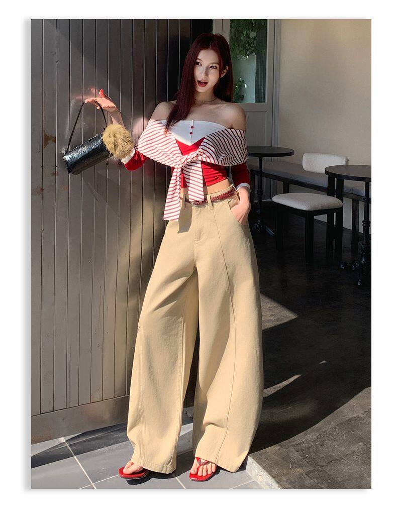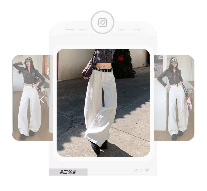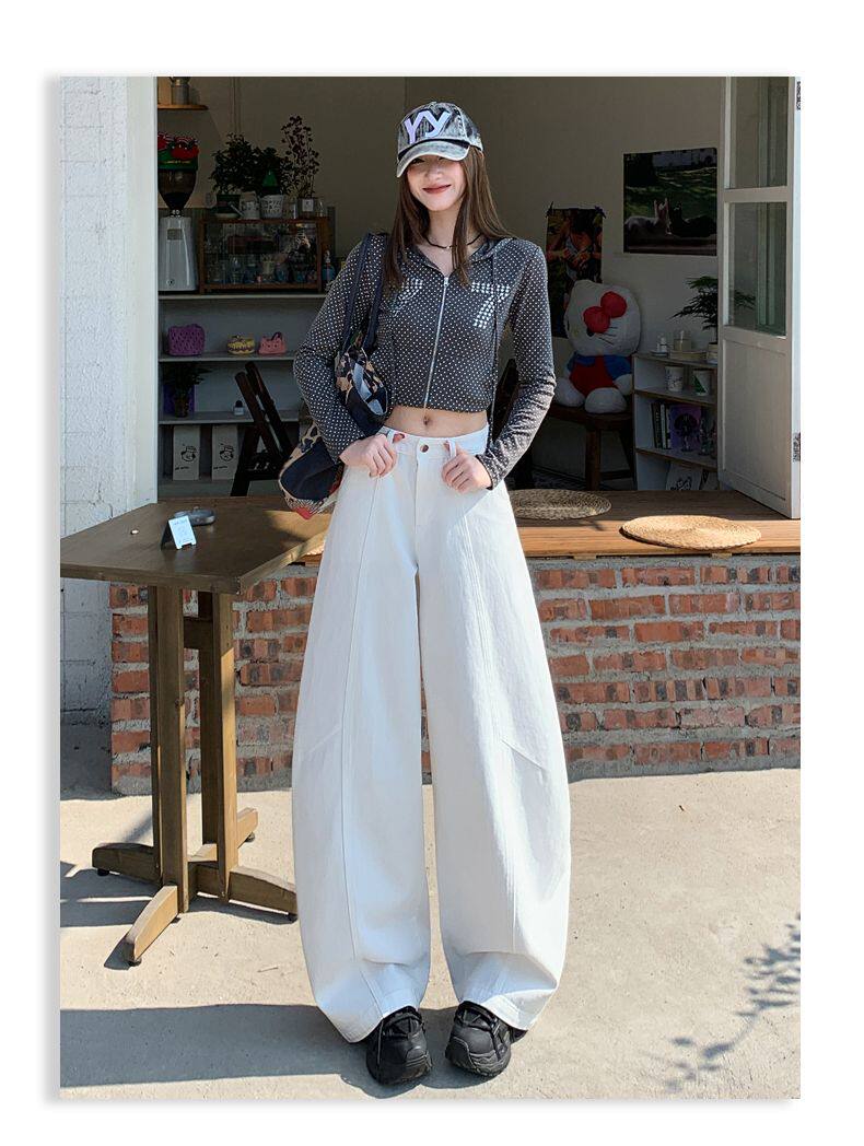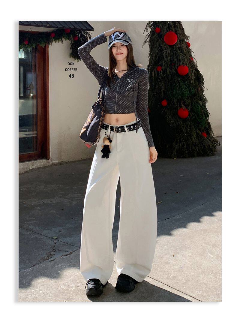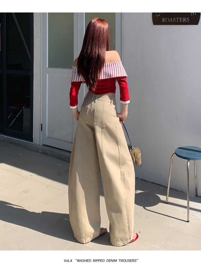 American-Style High-Waisted Curved-Leg Pants for Women, 2026 Winter New Loose Wide-Leg Jeans, Extended Length Versatile Floor-Length Pants