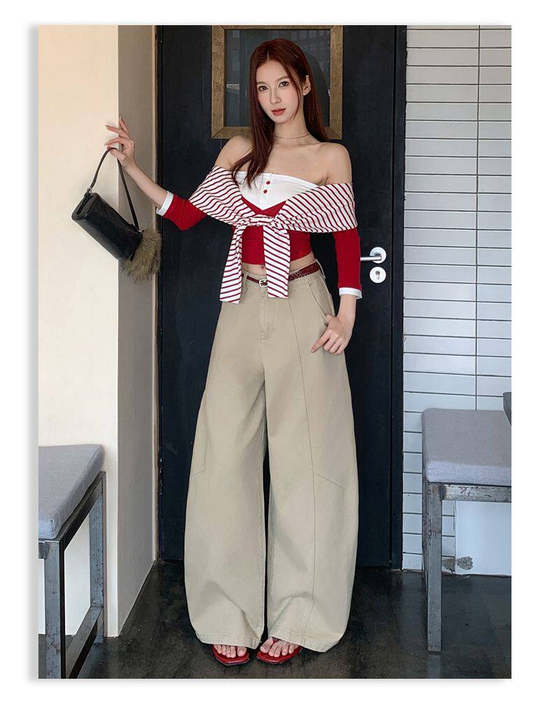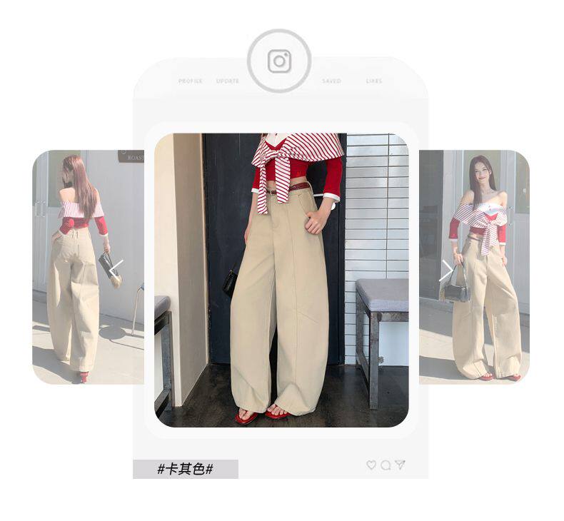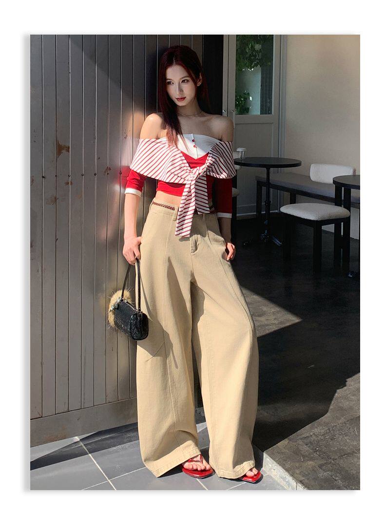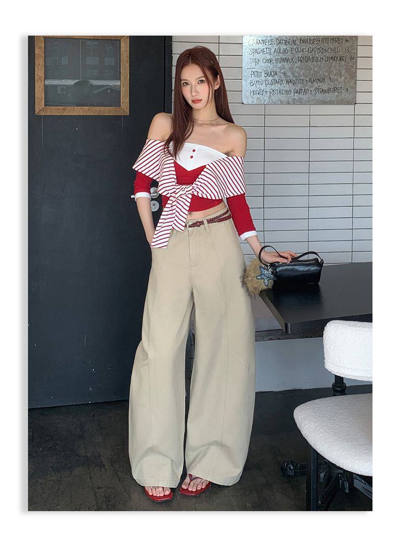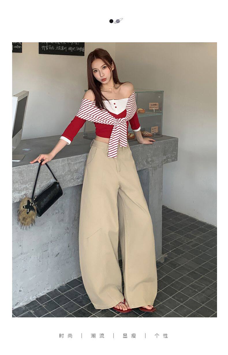 American-Style High-Waisted Curved-Leg Pants for Women, 2026 Winter New Loose Wide-Leg Jeans, Extended Length Versatile Floor-Length Pants