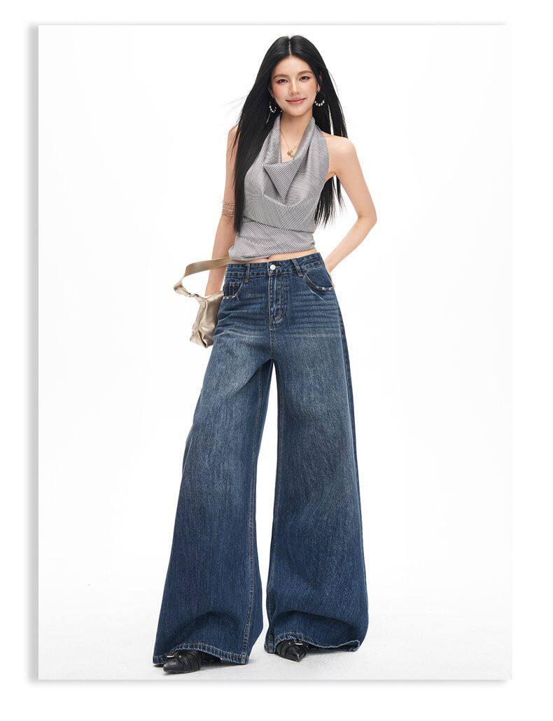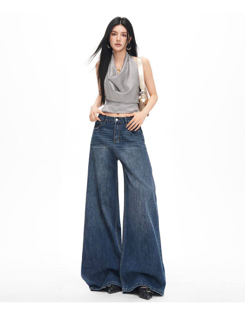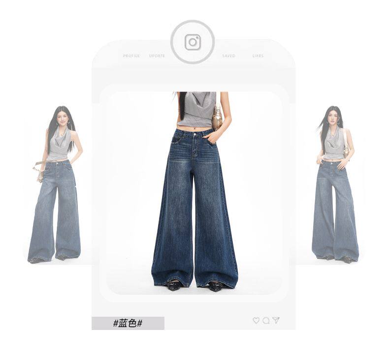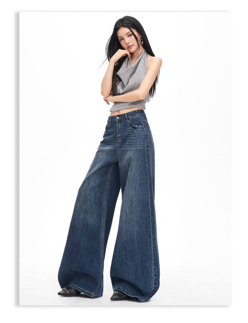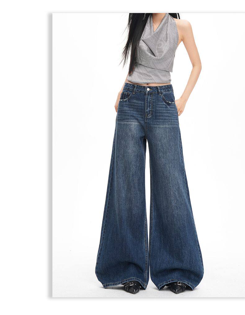 2026 New American-Style Flared Pants Retro High-Waisted Bell-Bottom Jeans for Women, Loose Fit, Slimming, Drapey Wide-Leg Pants