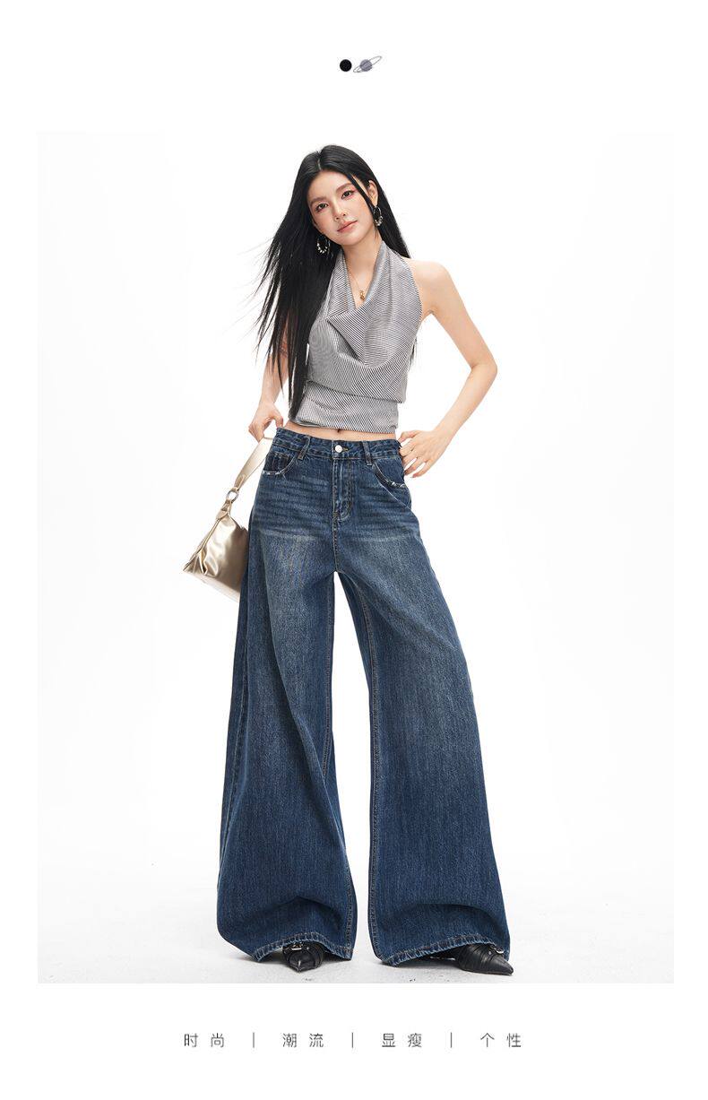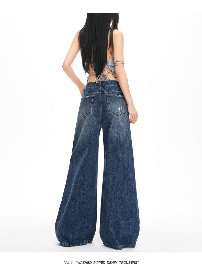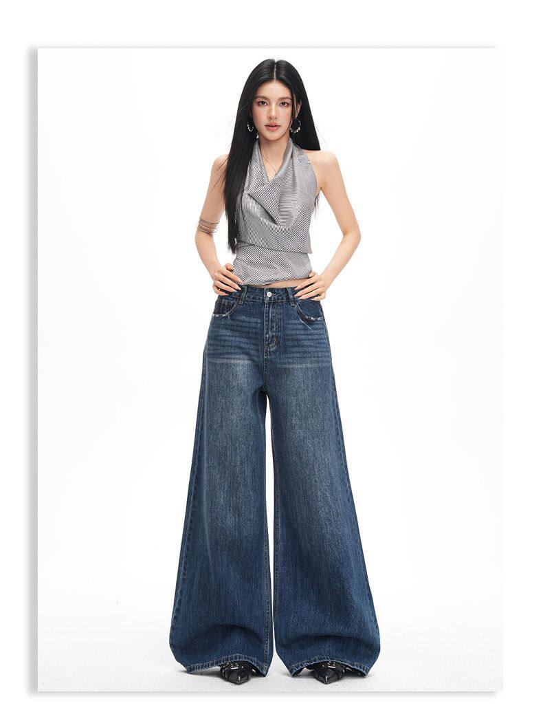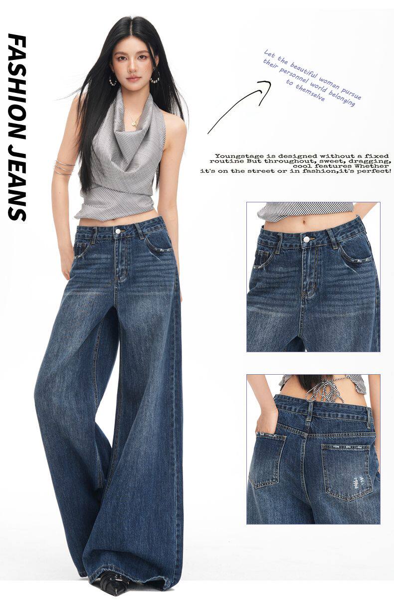 2026 New American-Style Flared Pants Retro High-Waisted Bell-Bottom Jeans for Women, Loose Fit, Slimming, Drapey Wide-Leg Pants