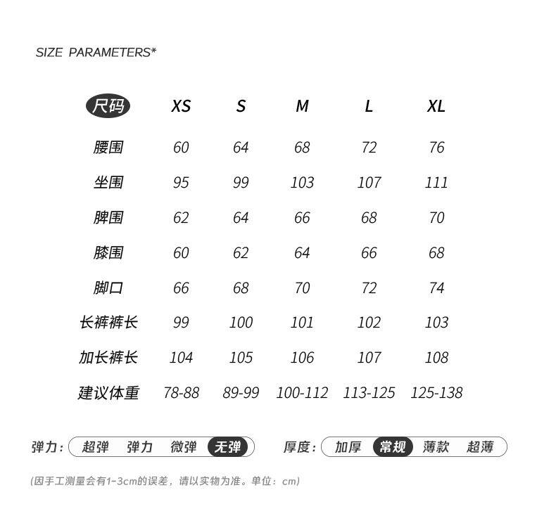 Outseam (cm) 99 cm 101.5 cm 104 cm 106.5 cm 109 cm