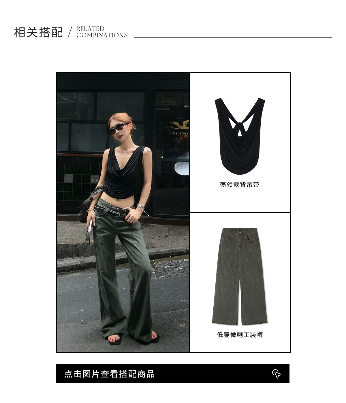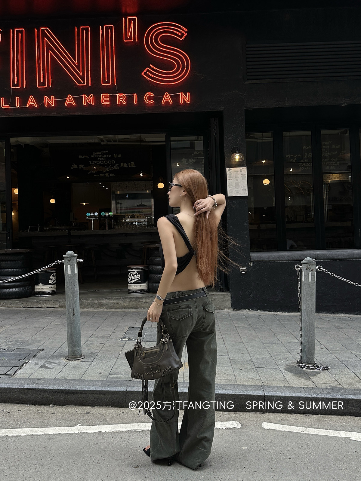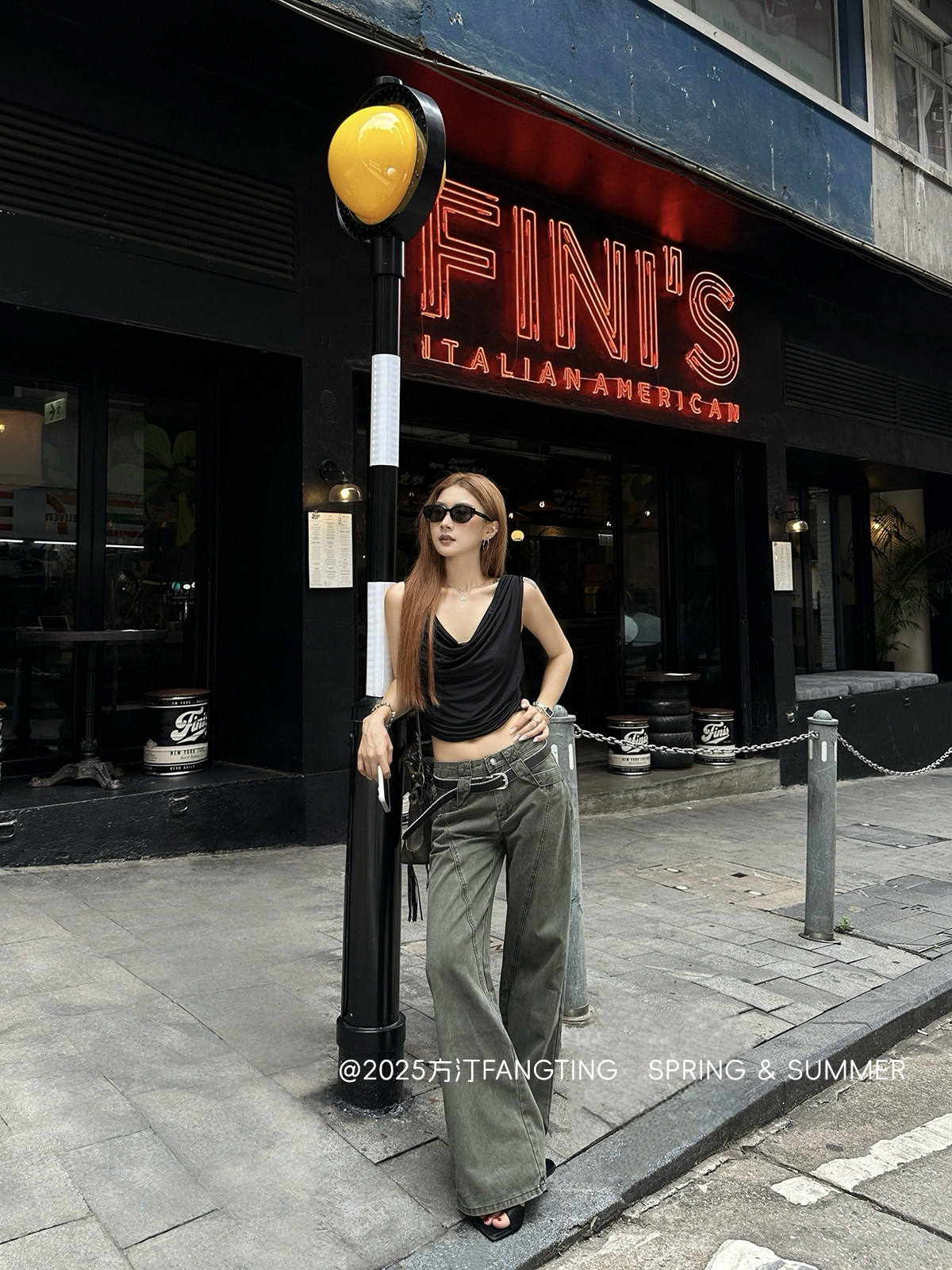 Fangting workwear army green pants women's spring and summer american retro slightly flared low waist wide leg casual pants