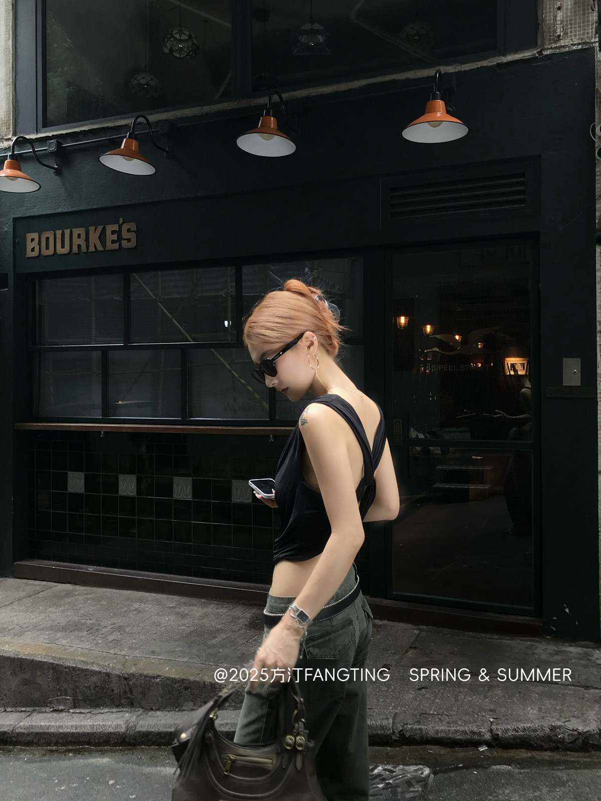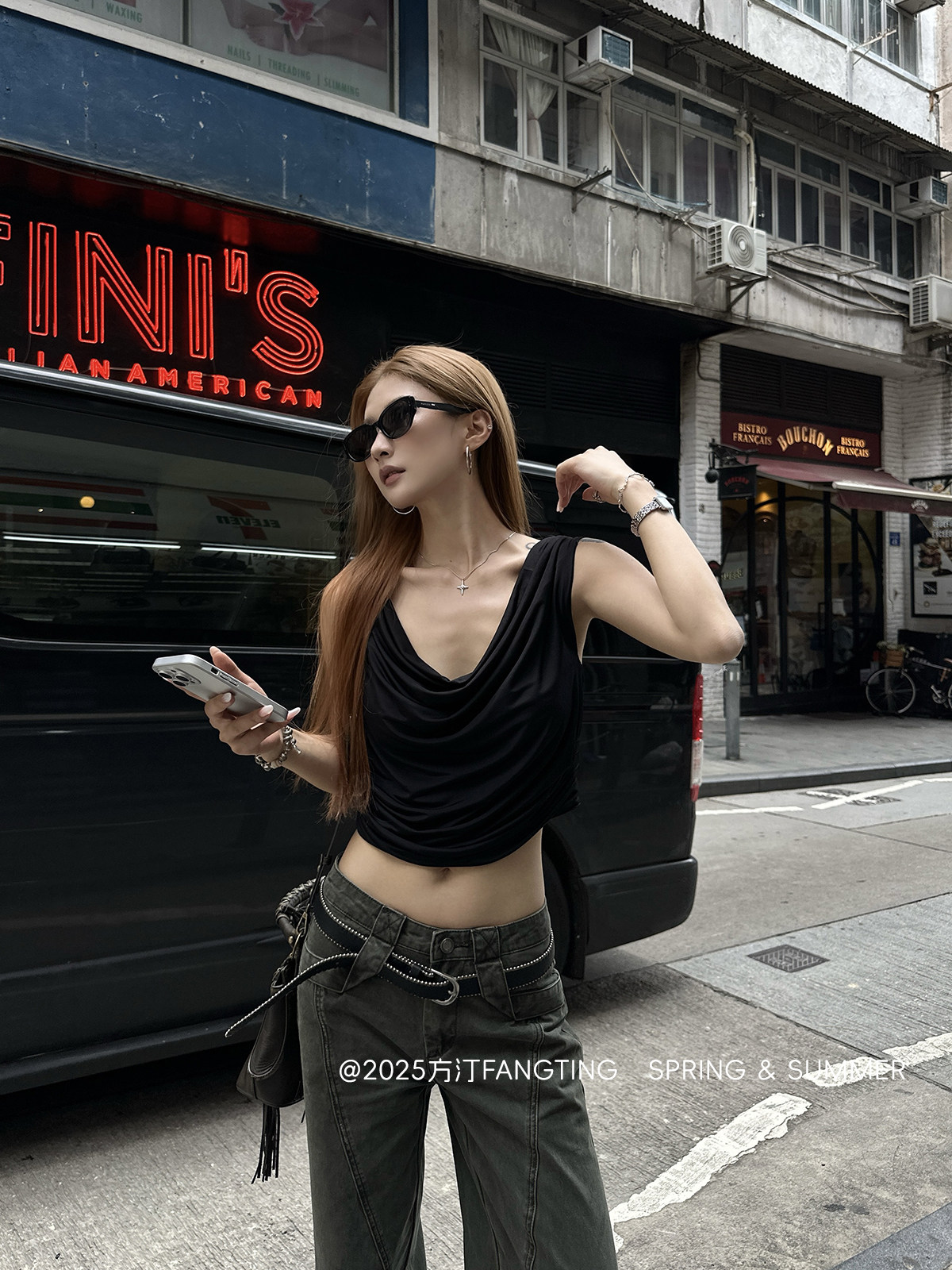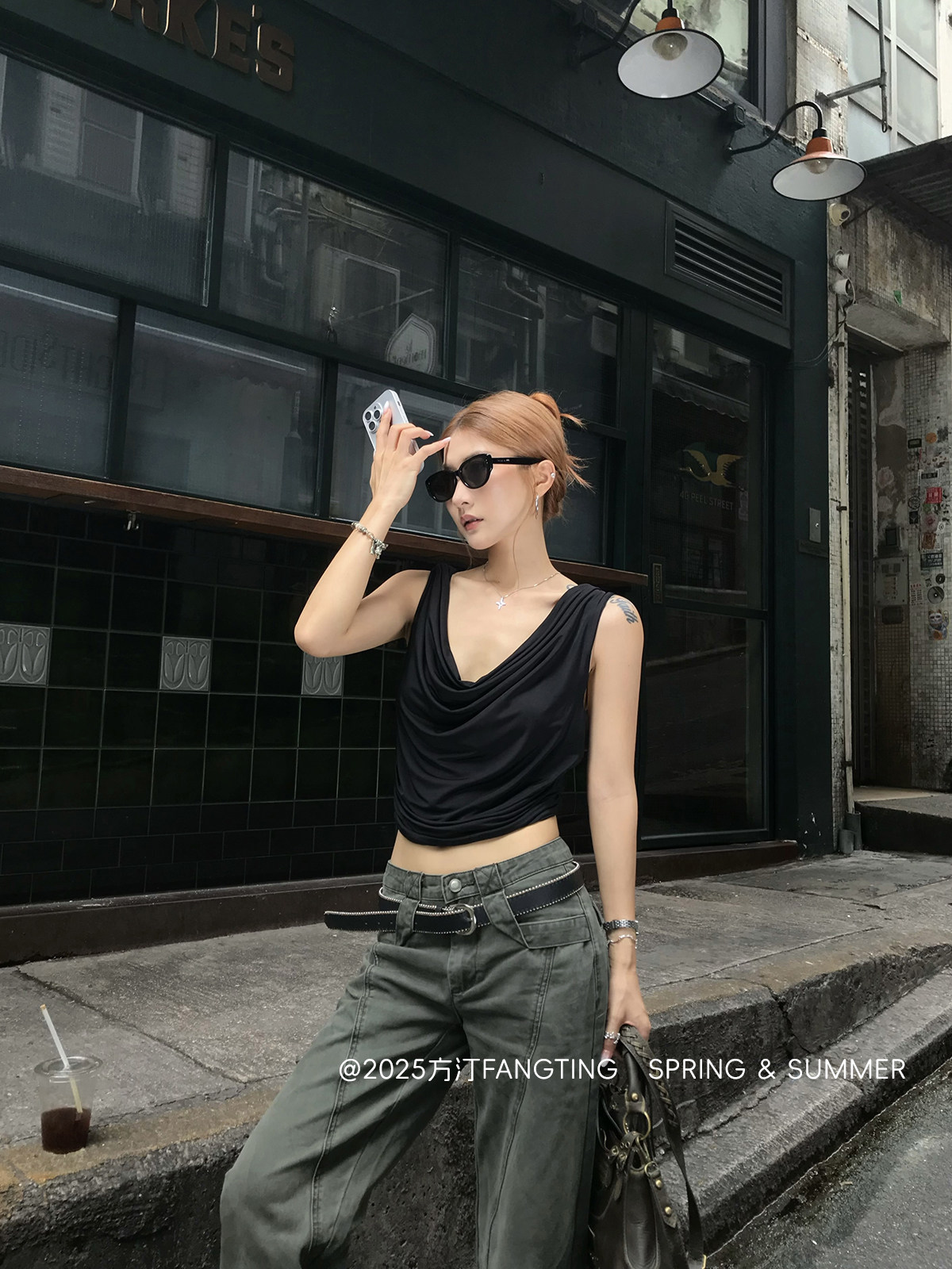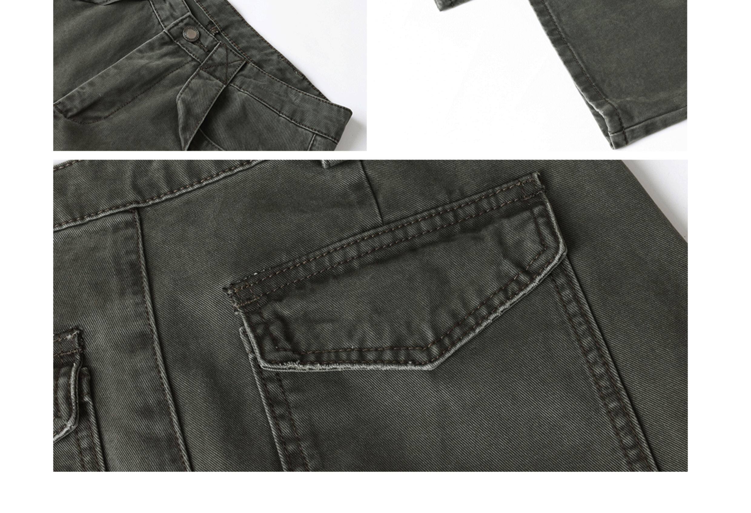 Fangting workwear army green pants women's spring and summer american retro slightly flared low waist wide leg casual pants