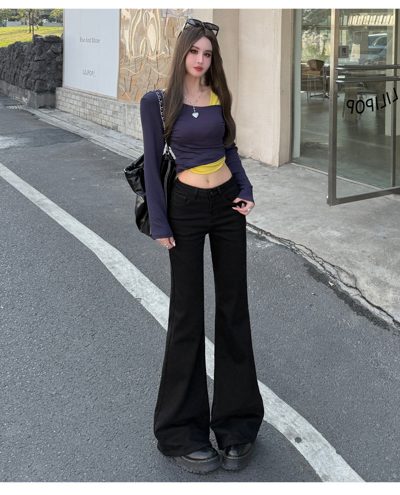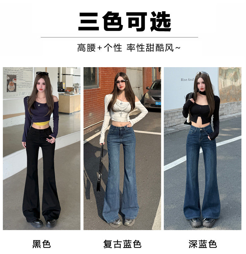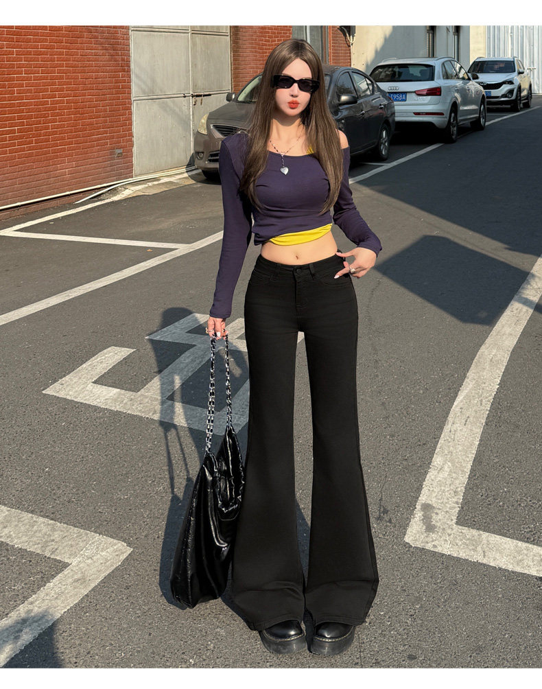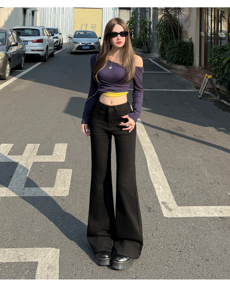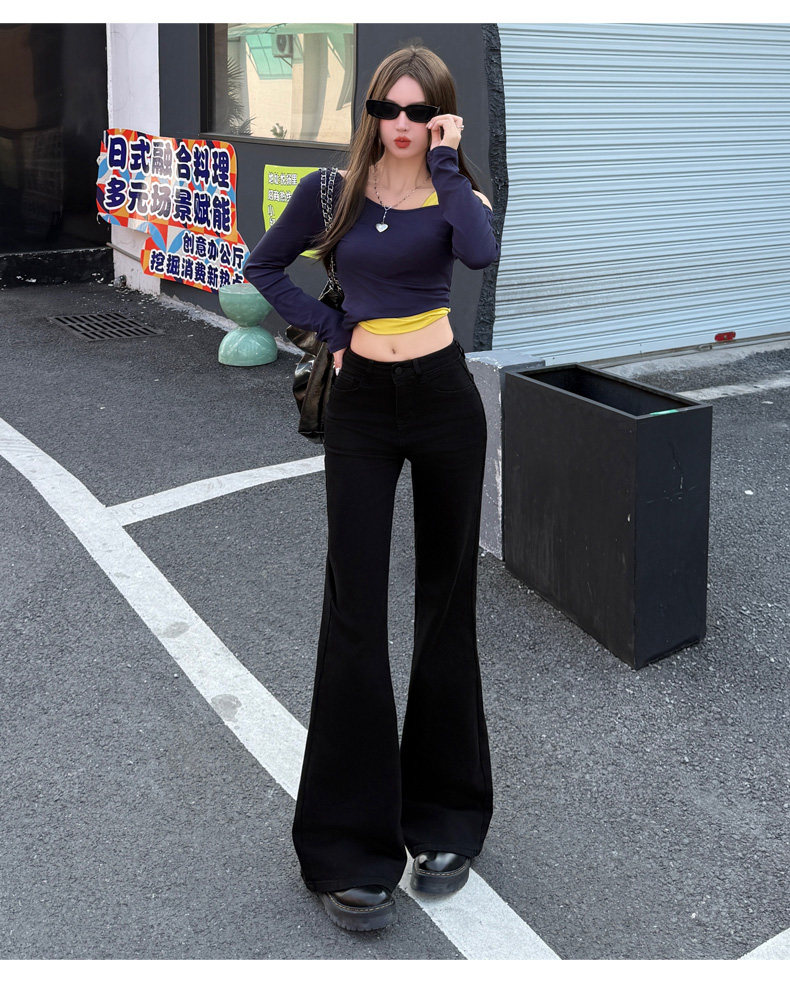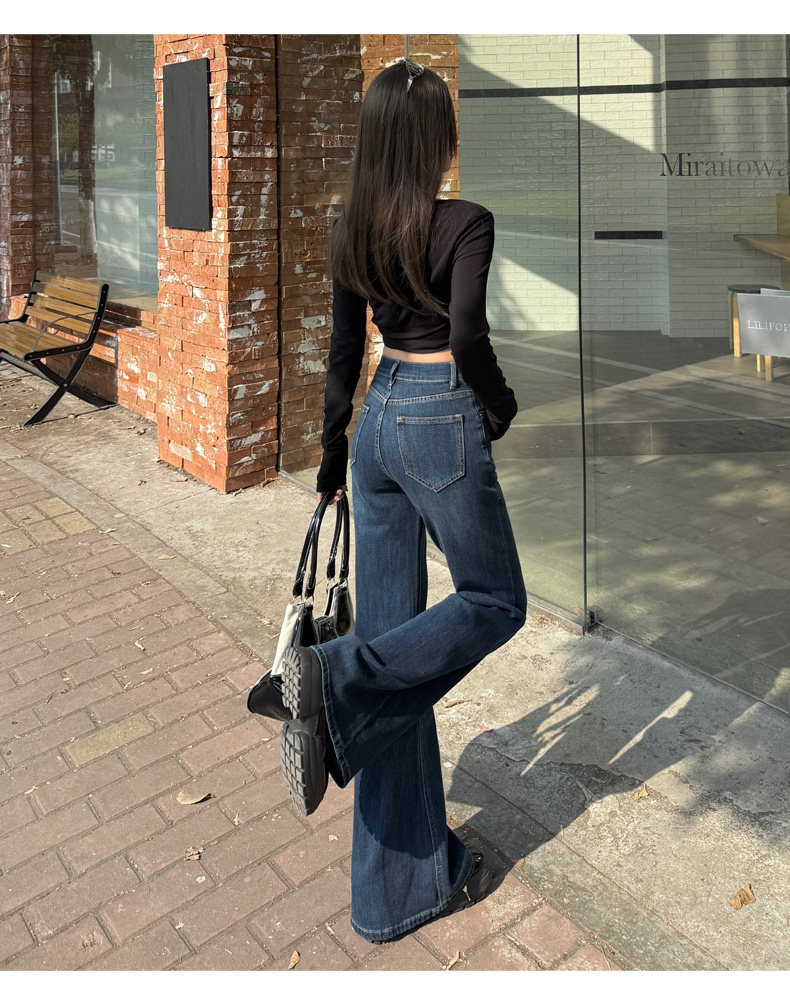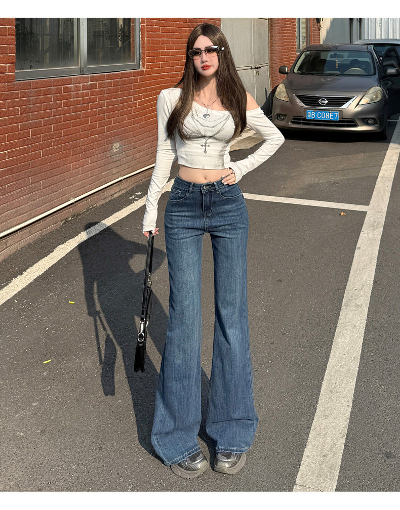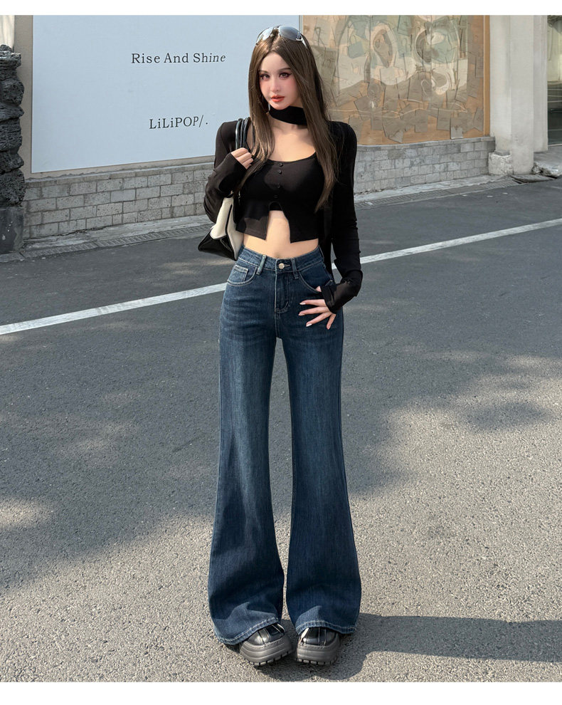 High-Waisted Stretchy Retro Blue Flared Jeans for Women, 2026 New Style, Non-Tight-Fitting, Slimming Black Floor-Length Bell-Bottom Pants