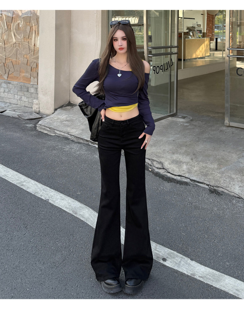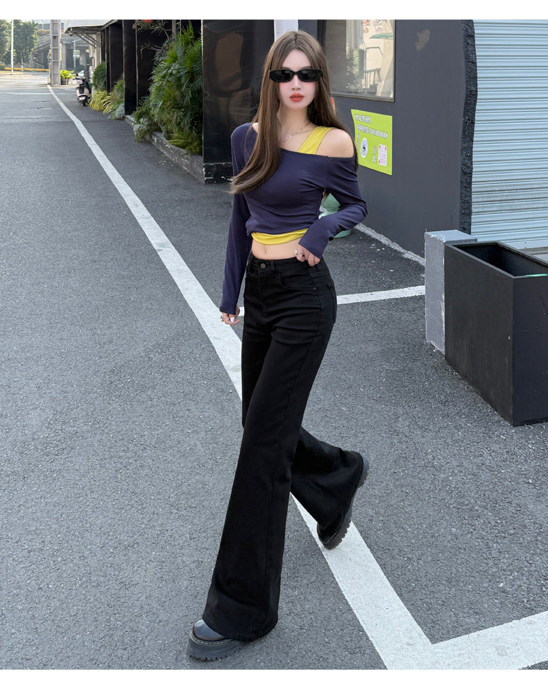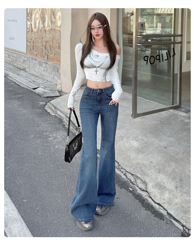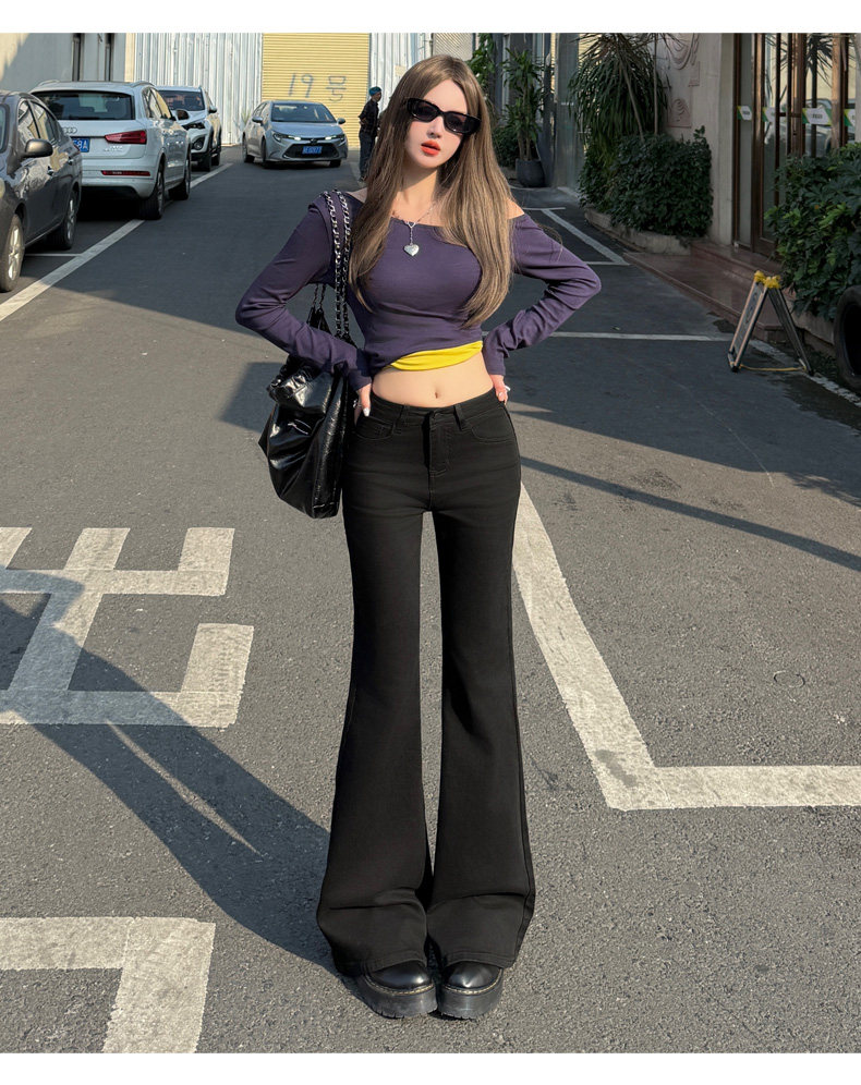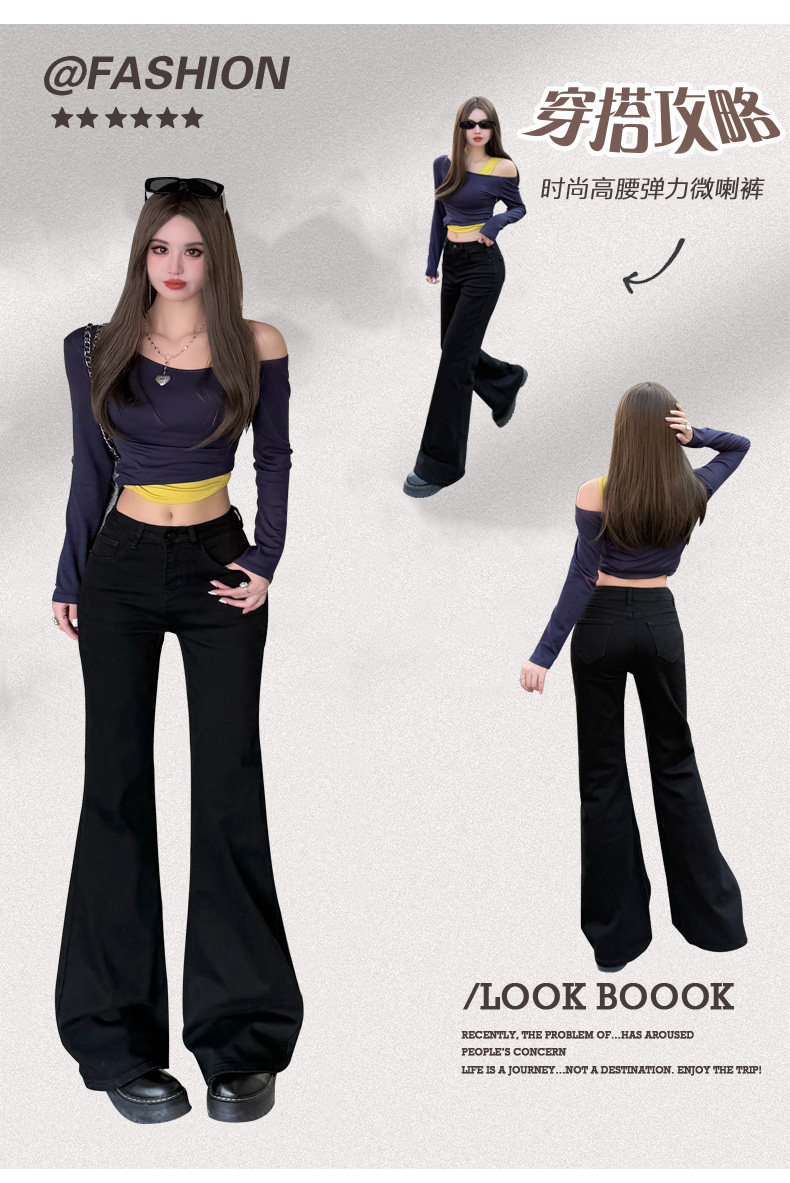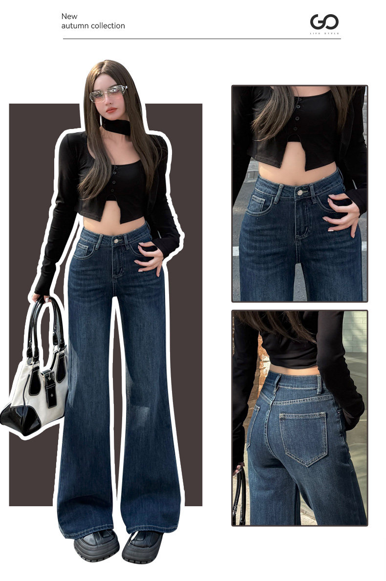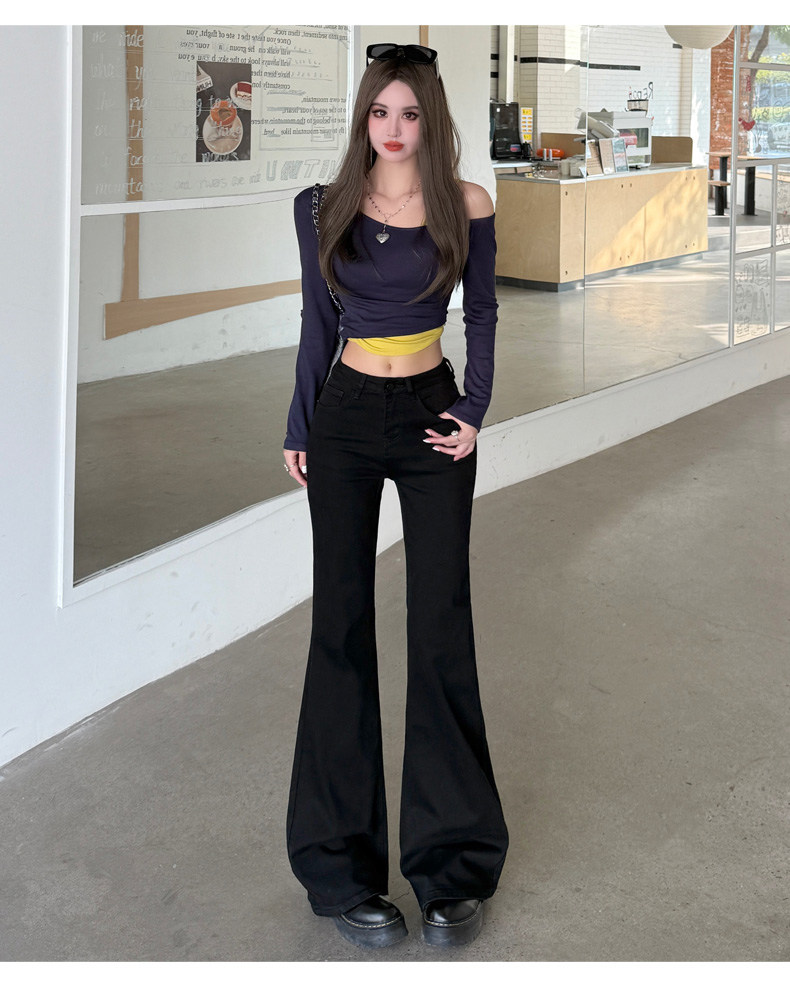 High-Waisted Stretchy Retro Blue Flared Jeans for Women, 2026 New Style, Non-Tight-Fitting, Slimming Black Floor-Length Bell-Bottom Pants
