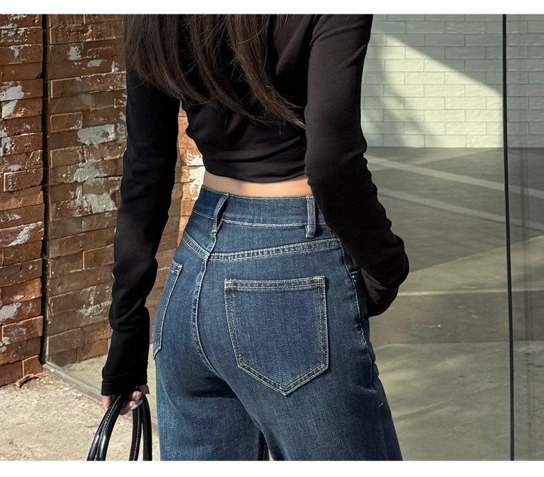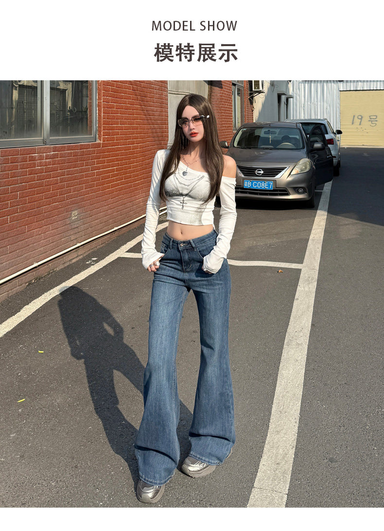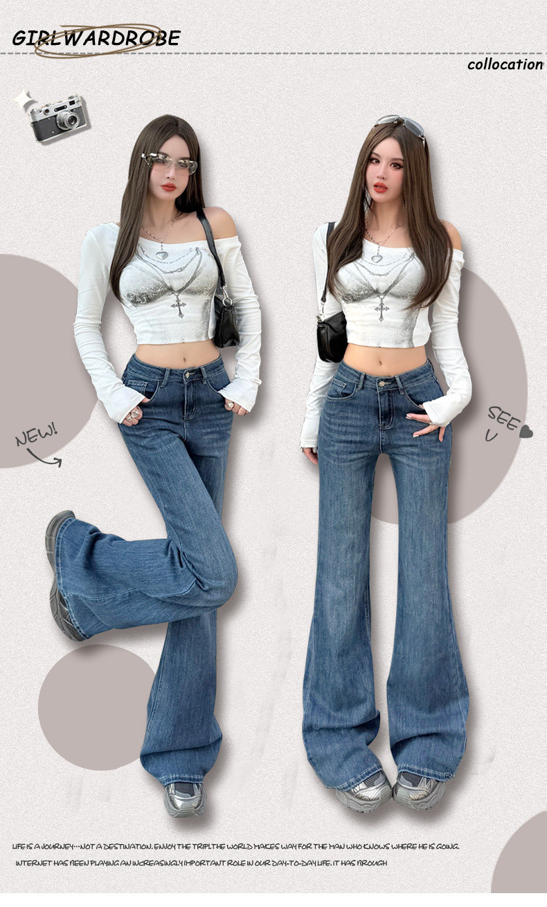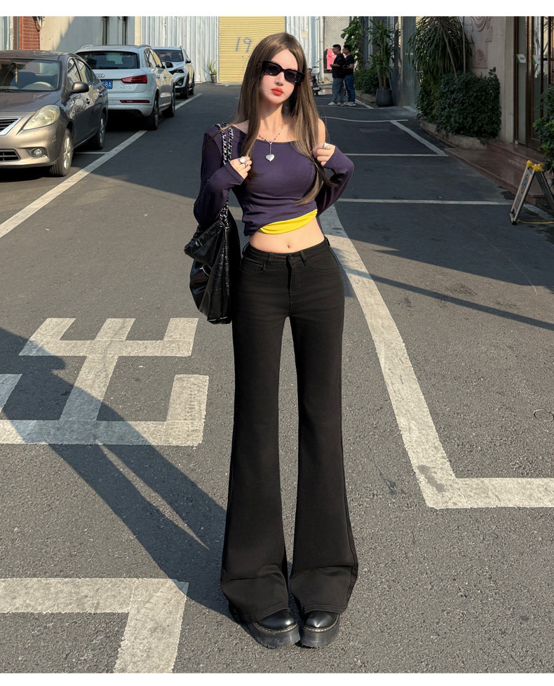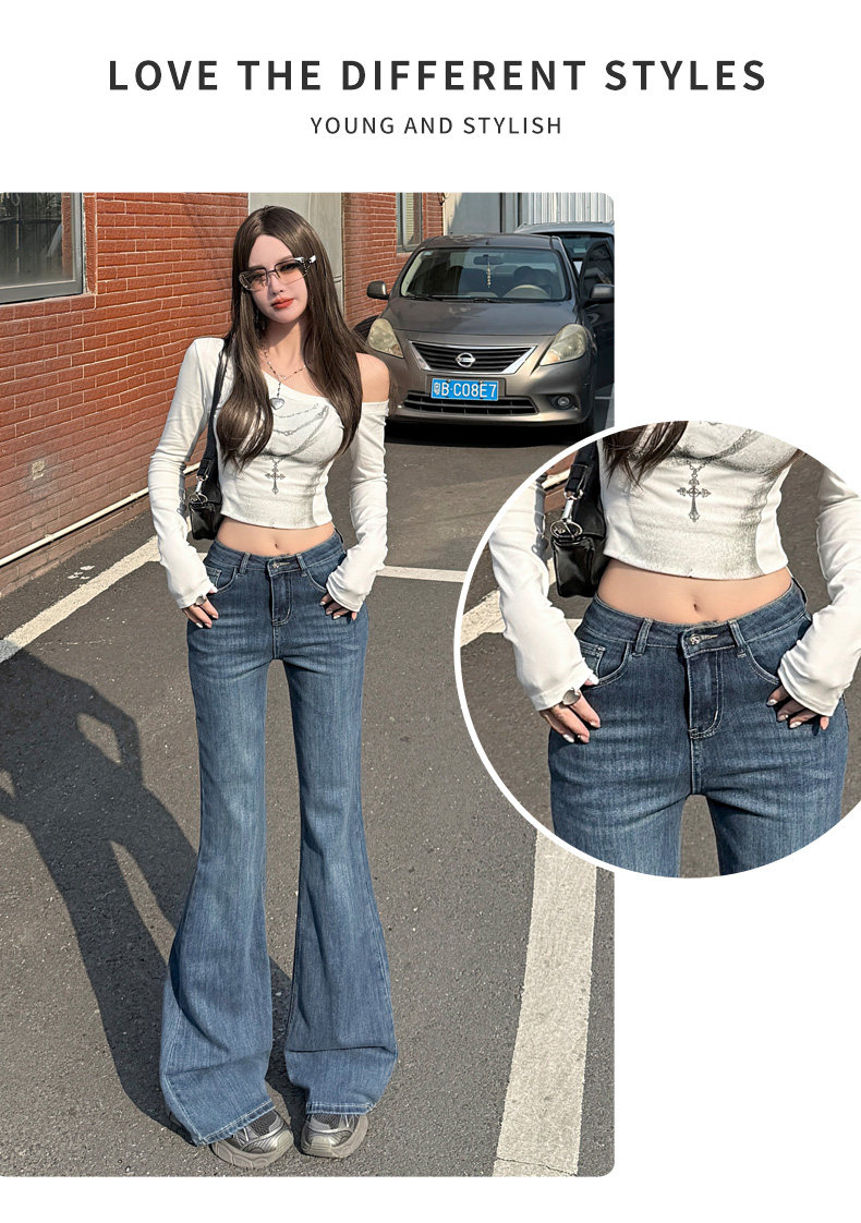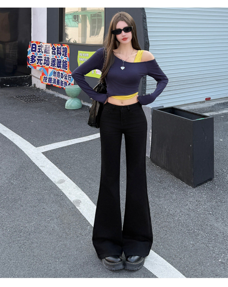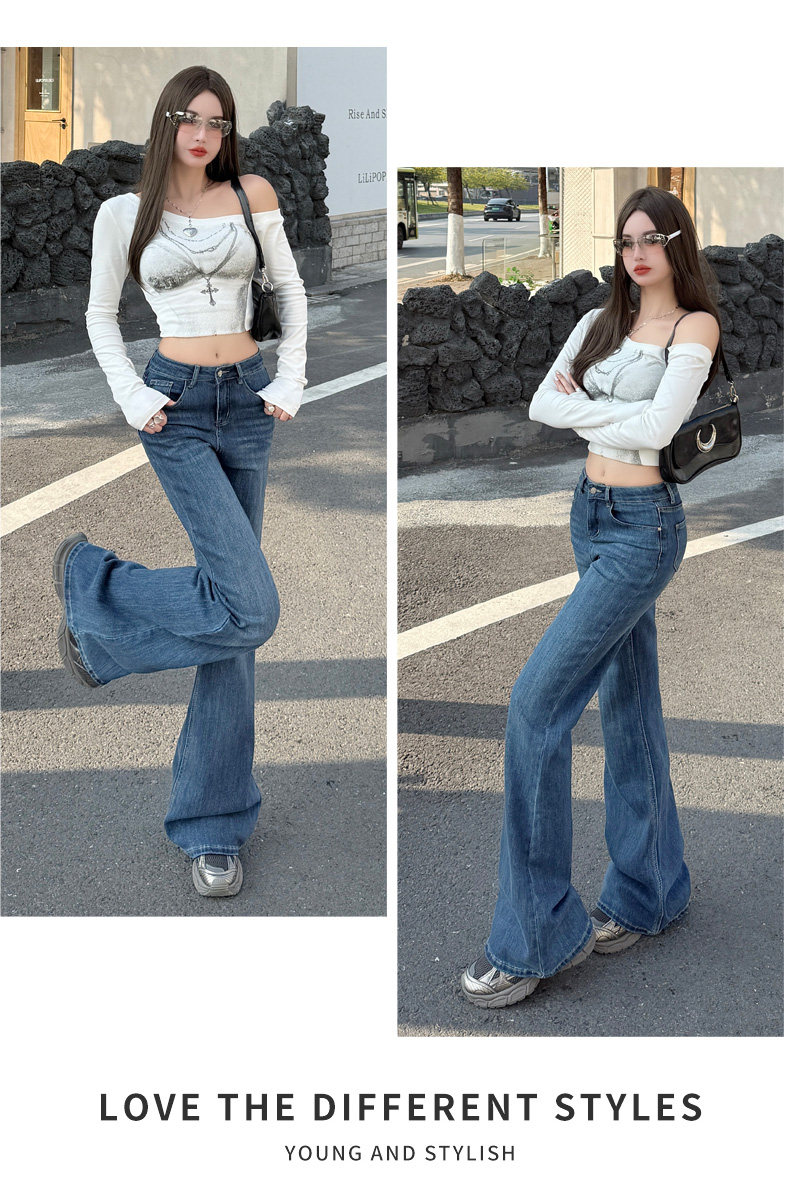 High-Waisted Stretchy Retro Blue Flared Jeans for Women, 2026 New Style, Non-Tight-Fitting, Slimming Black Floor-Length Bell-Bottom Pants