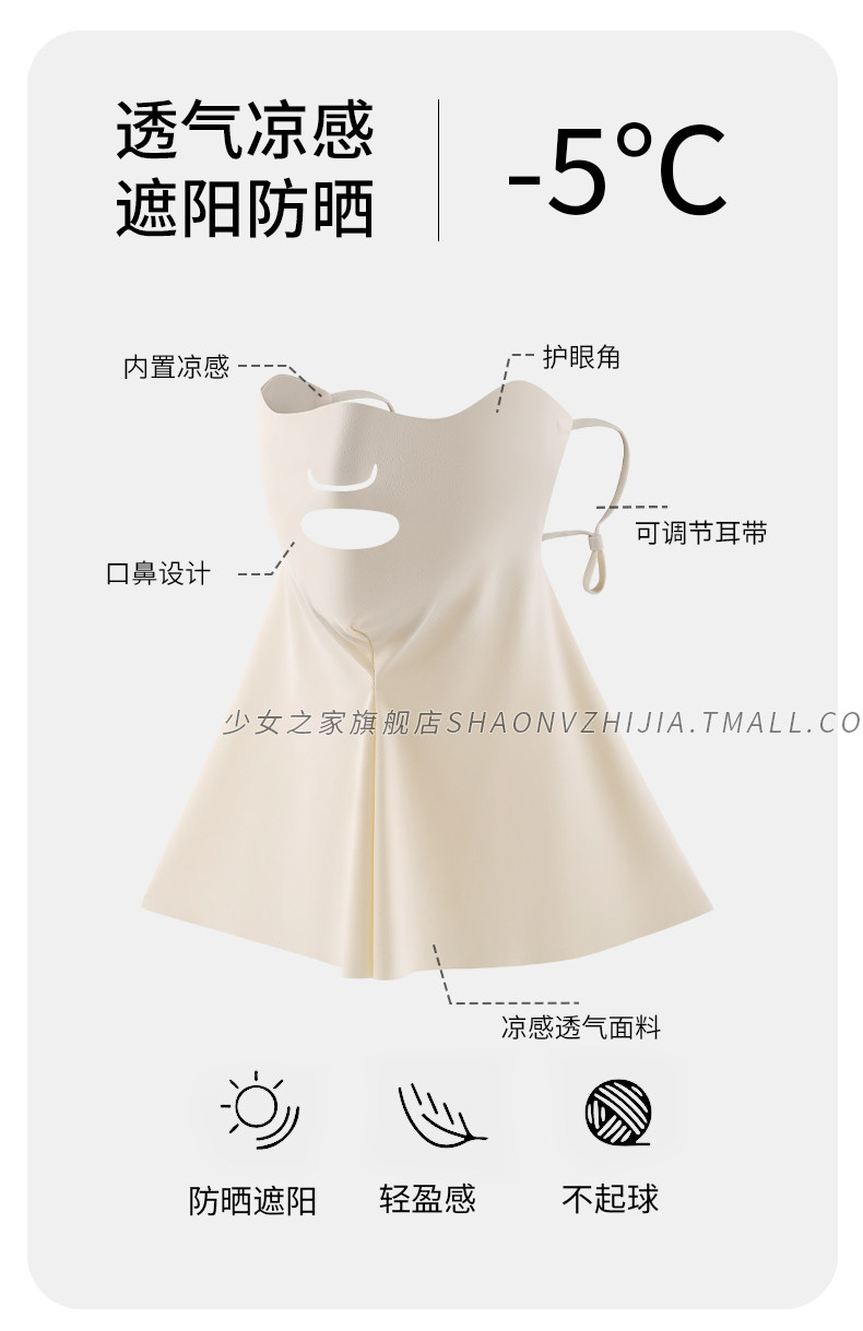 New Style Sun Protection Mask, Full Face Uv Protection for Women, Summer Ice Silk Breathable Integrated Neck Protection Sunshade Mask, Eye Protection