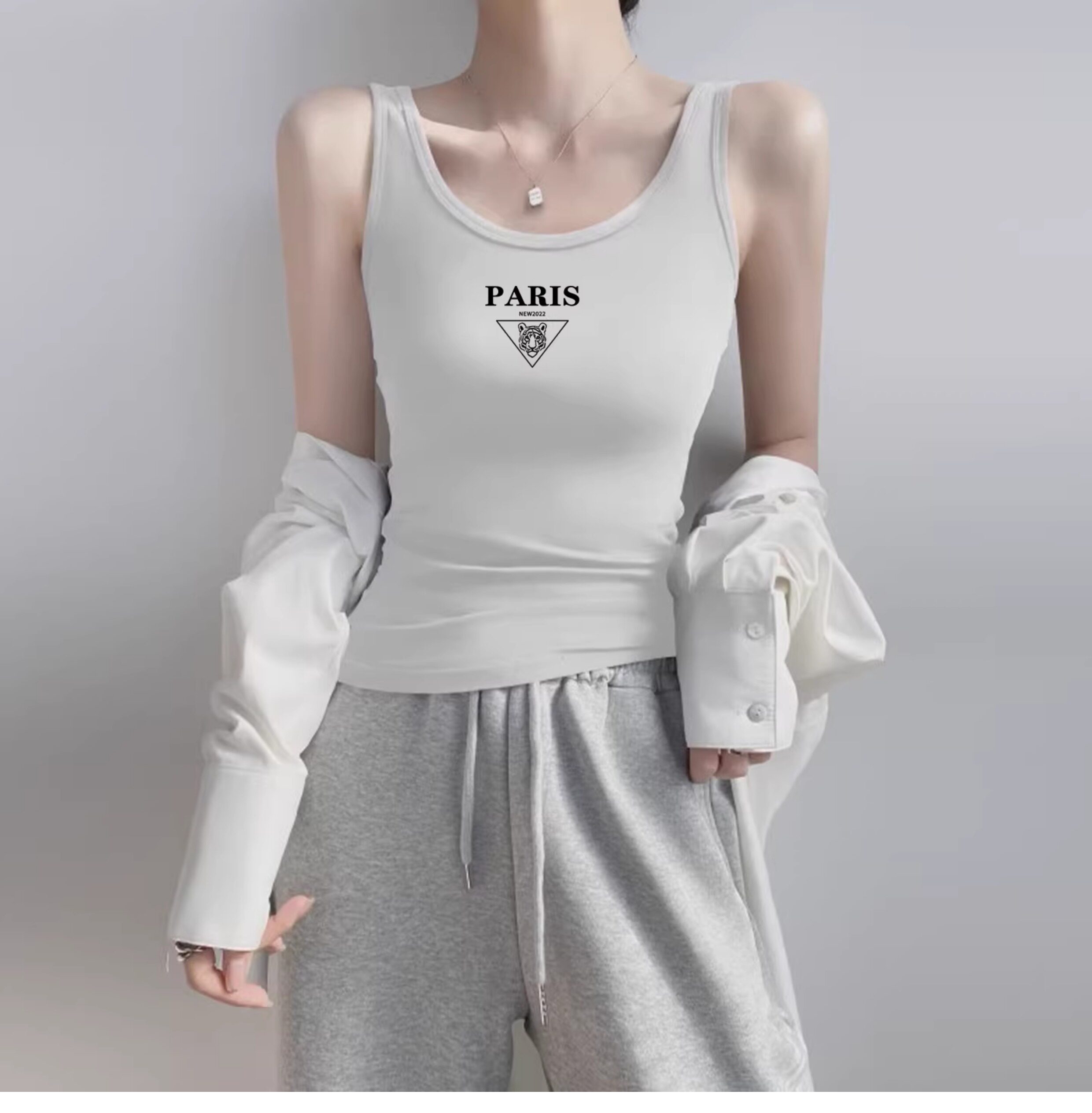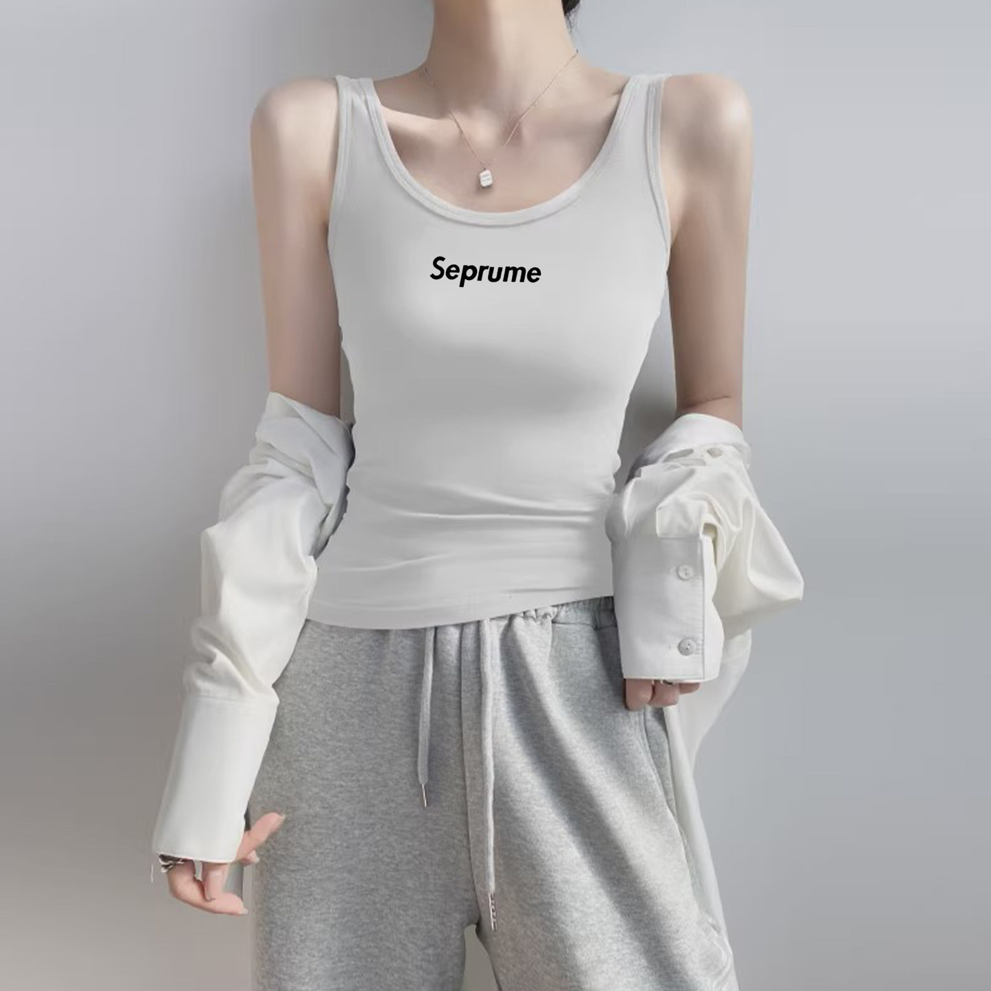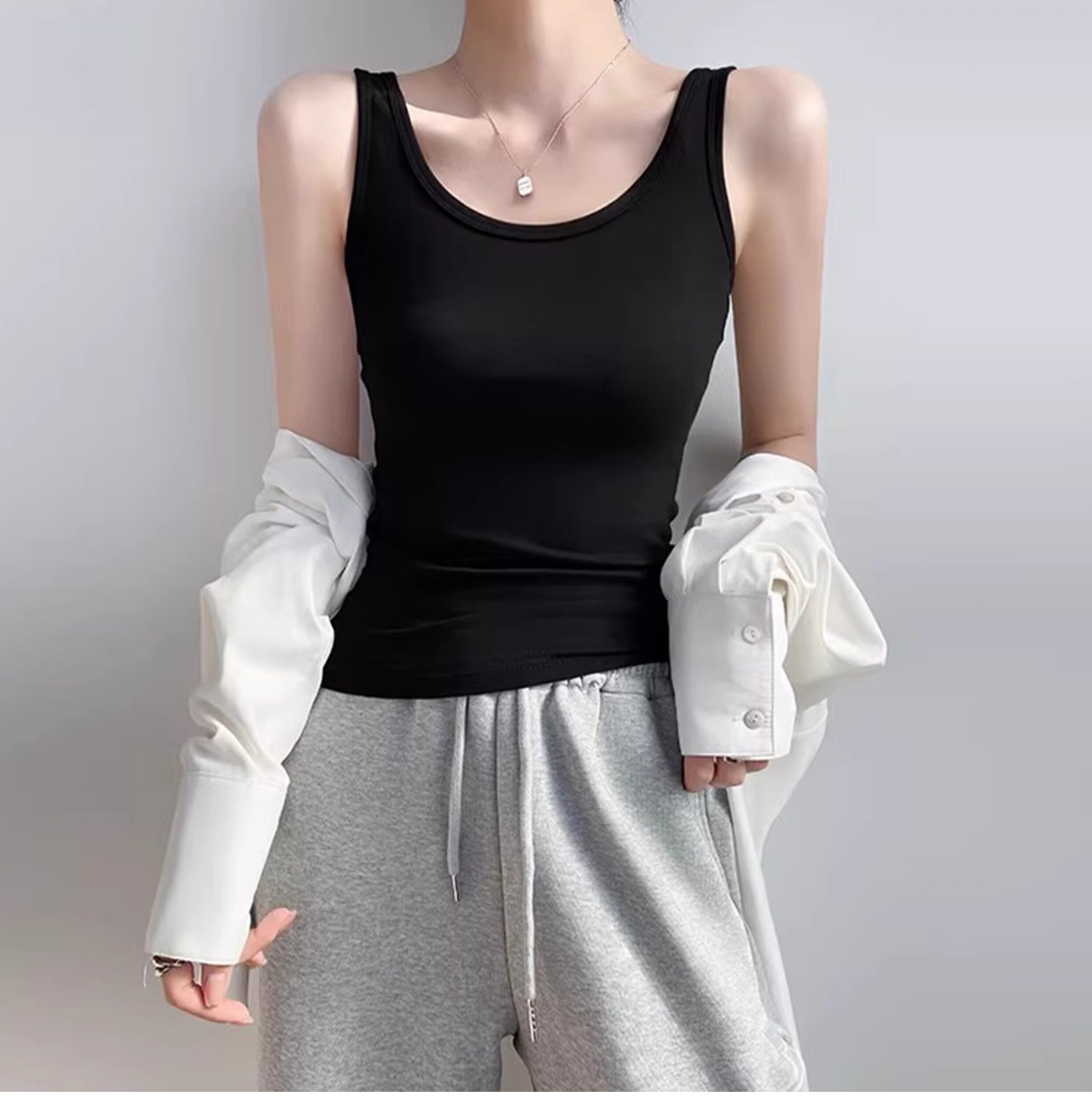Slim-Fit Pure Cotton High-End Camisole for Women, European Style 2026 Summer New Fashion Sleeveless Top with Beautiful Back Design