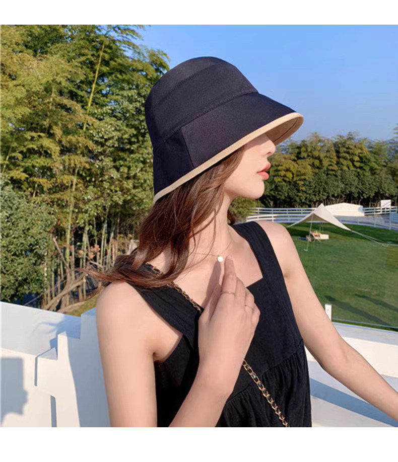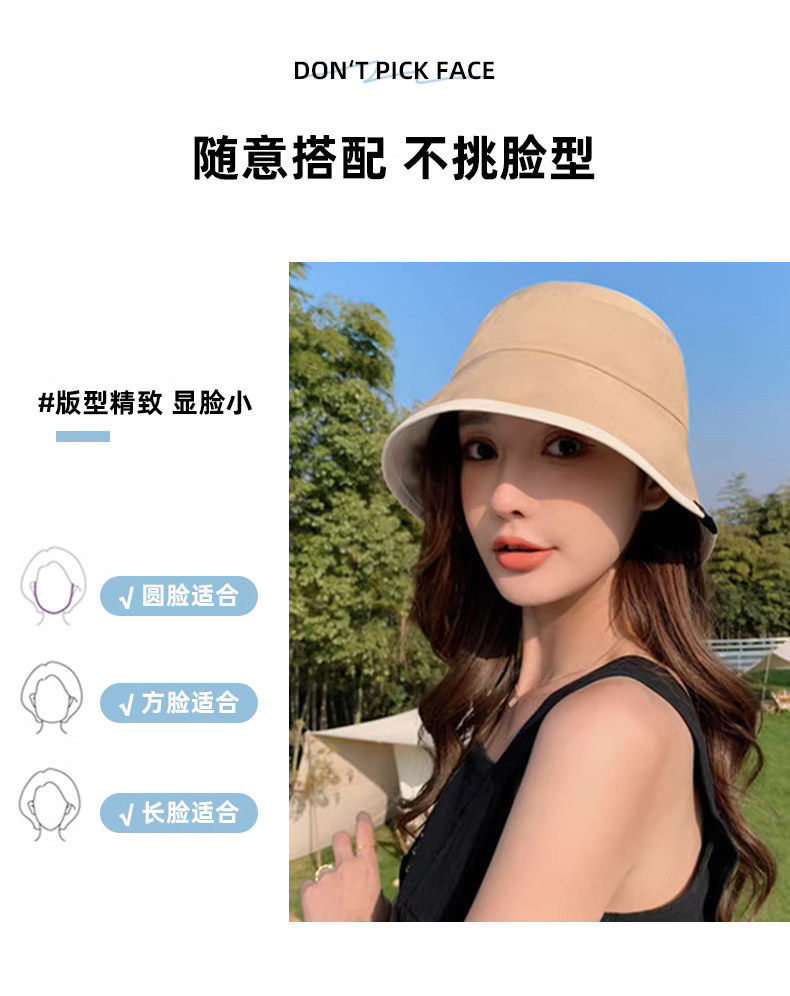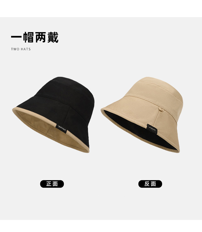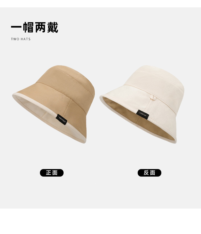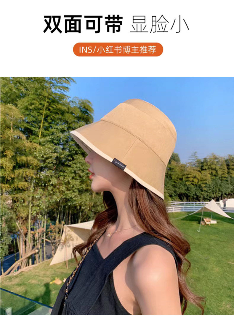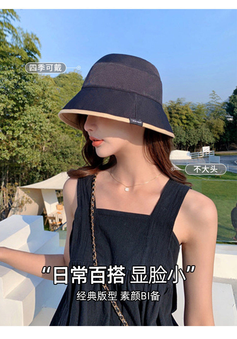 MQVQ fisherman hat women's spring and summer style versatile big head circumference showing face small retro double-sided sun-blocking bucket hat