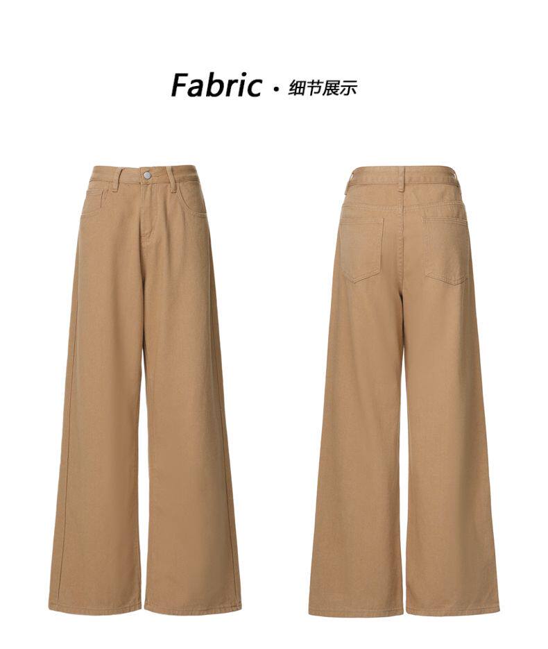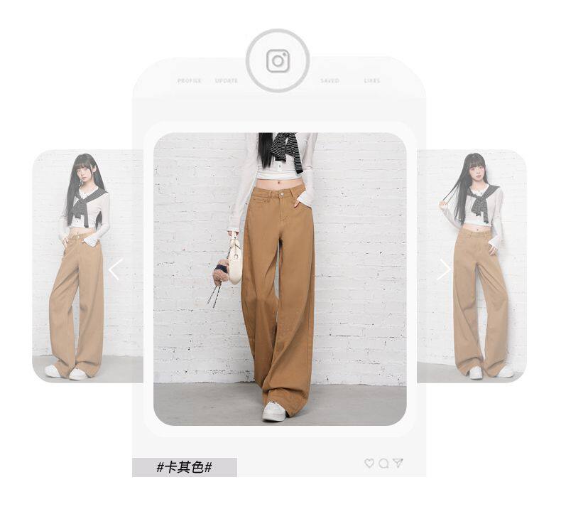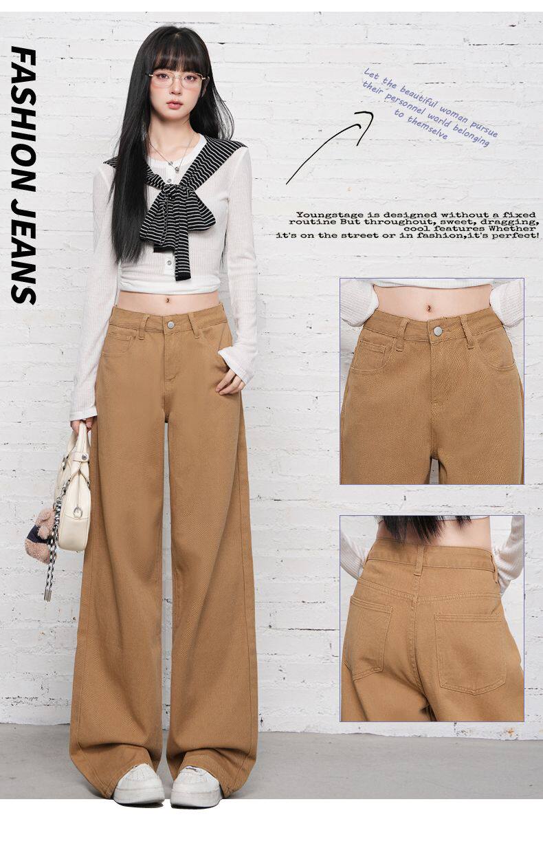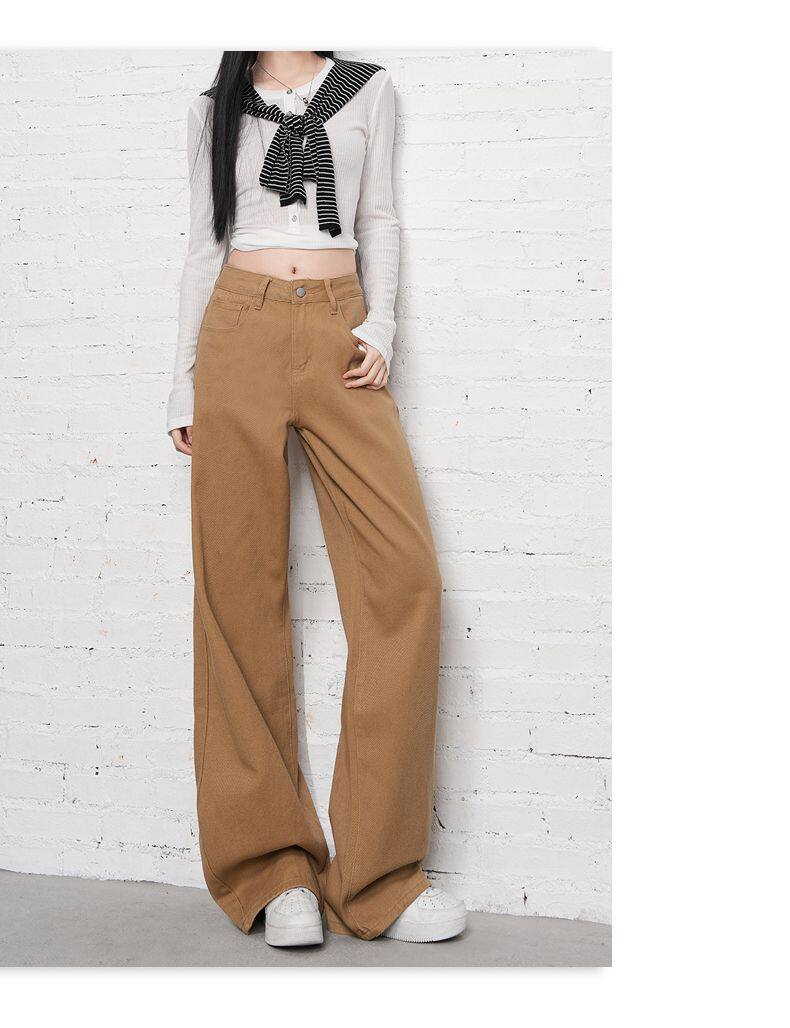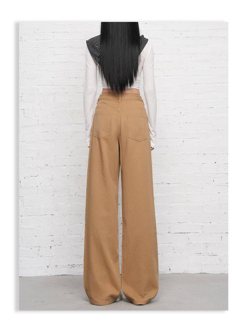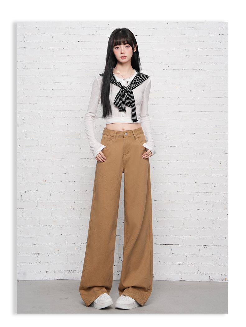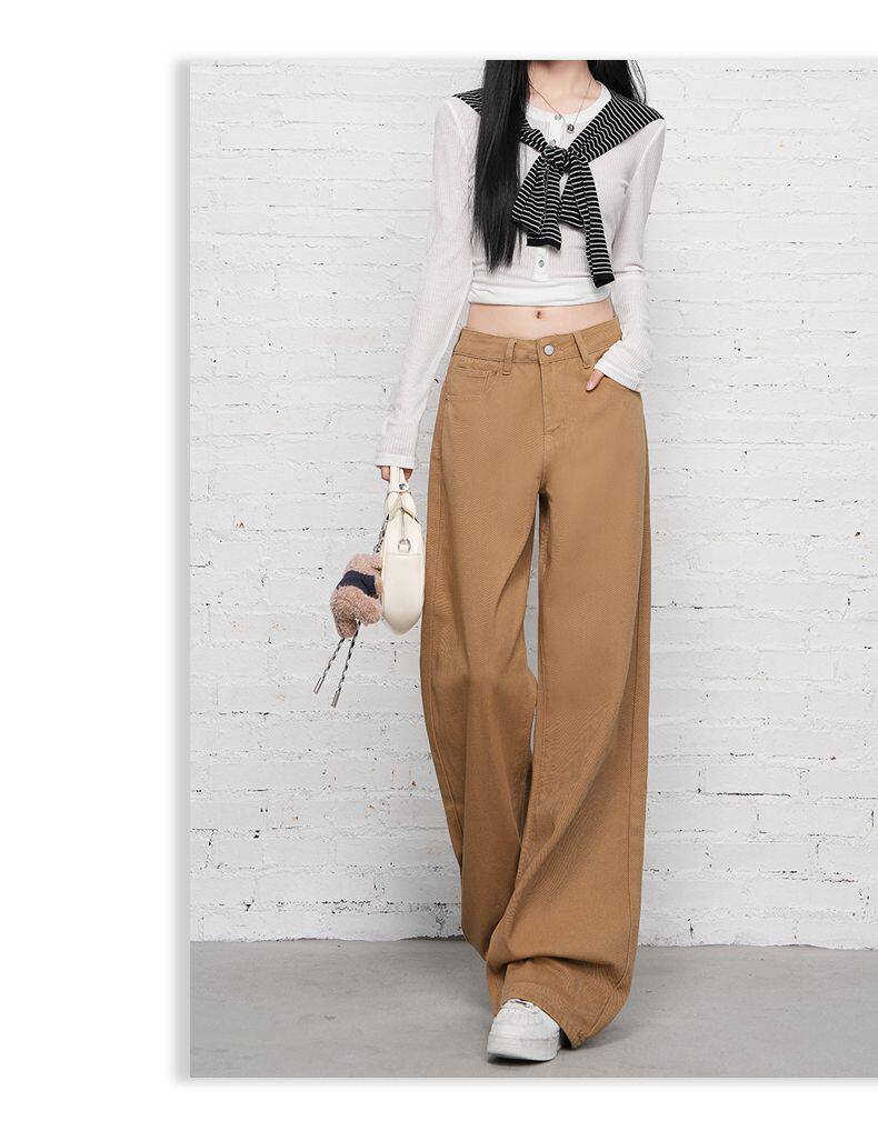 2026 Spring New Style High-Waisted Loose Slimming Wide-Leg Jeans for Women in Khaki Color with a Draping Effect Straight-Leg Long Pants