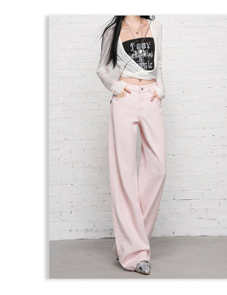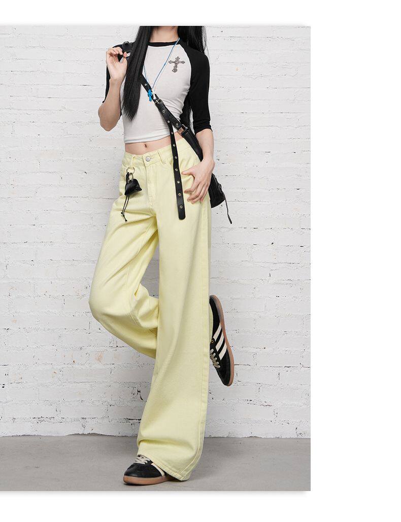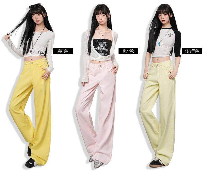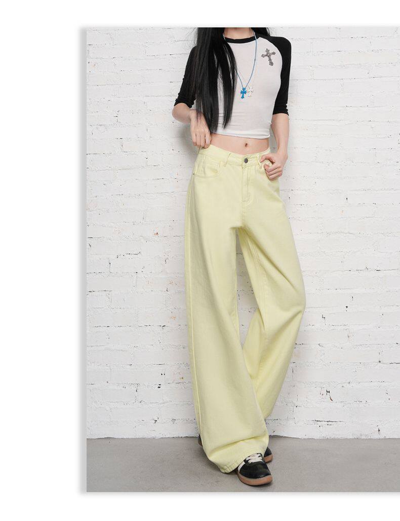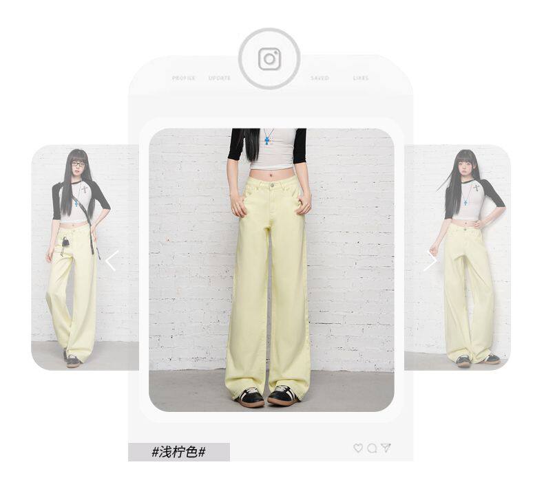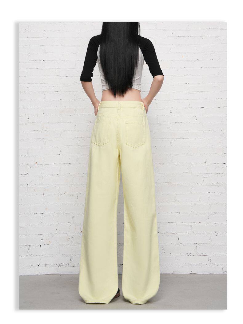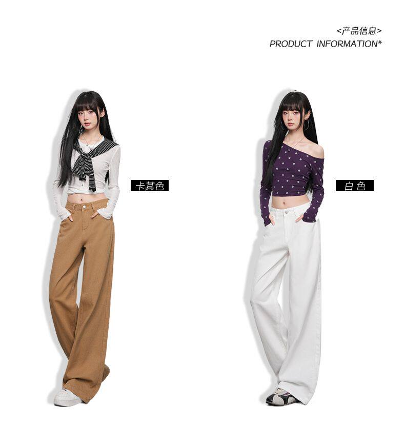 2026 Spring New Style High-Waisted Loose Slimming Wide-Leg Jeans for Women in Khaki Color with a Draping Effect Straight-Leg Long Pants