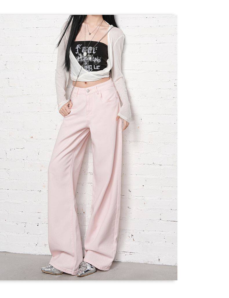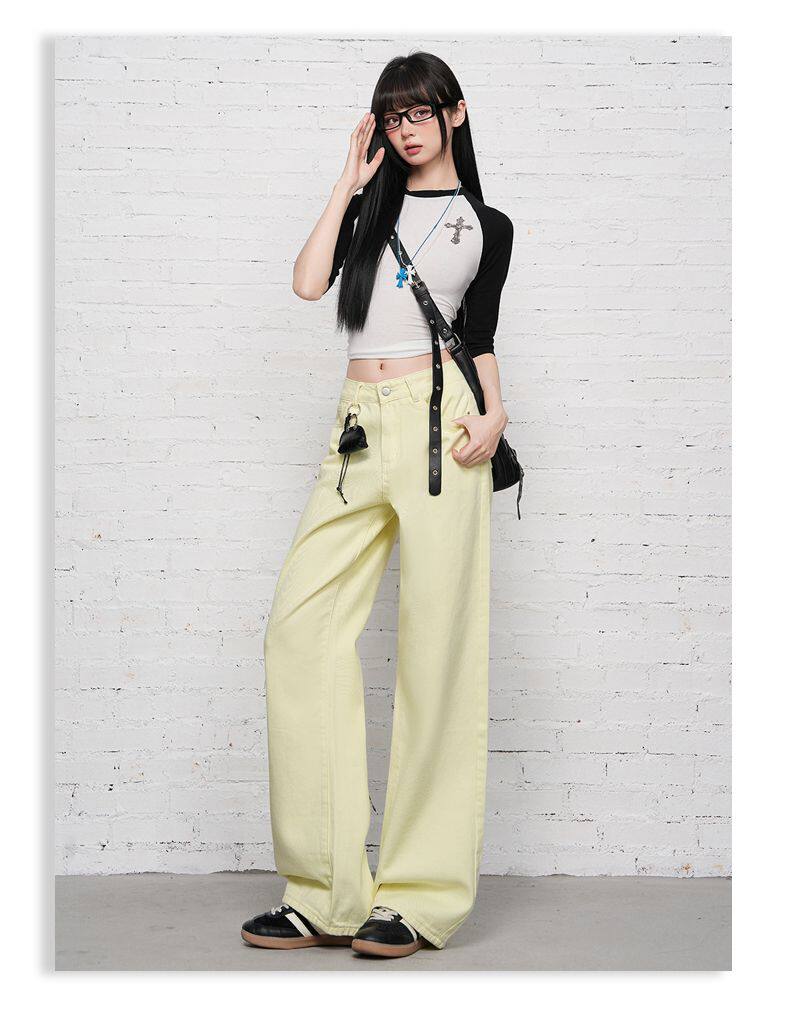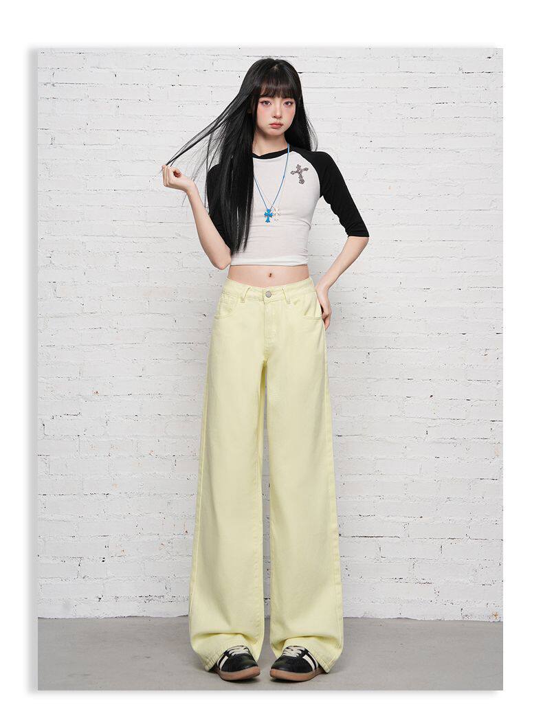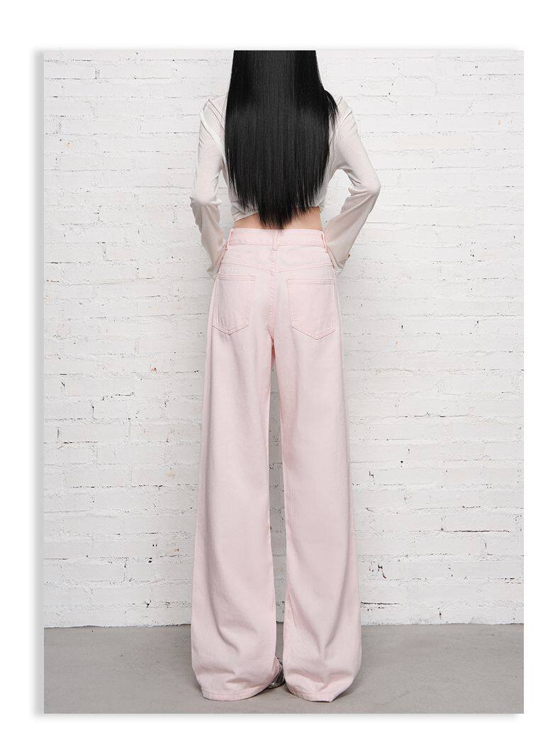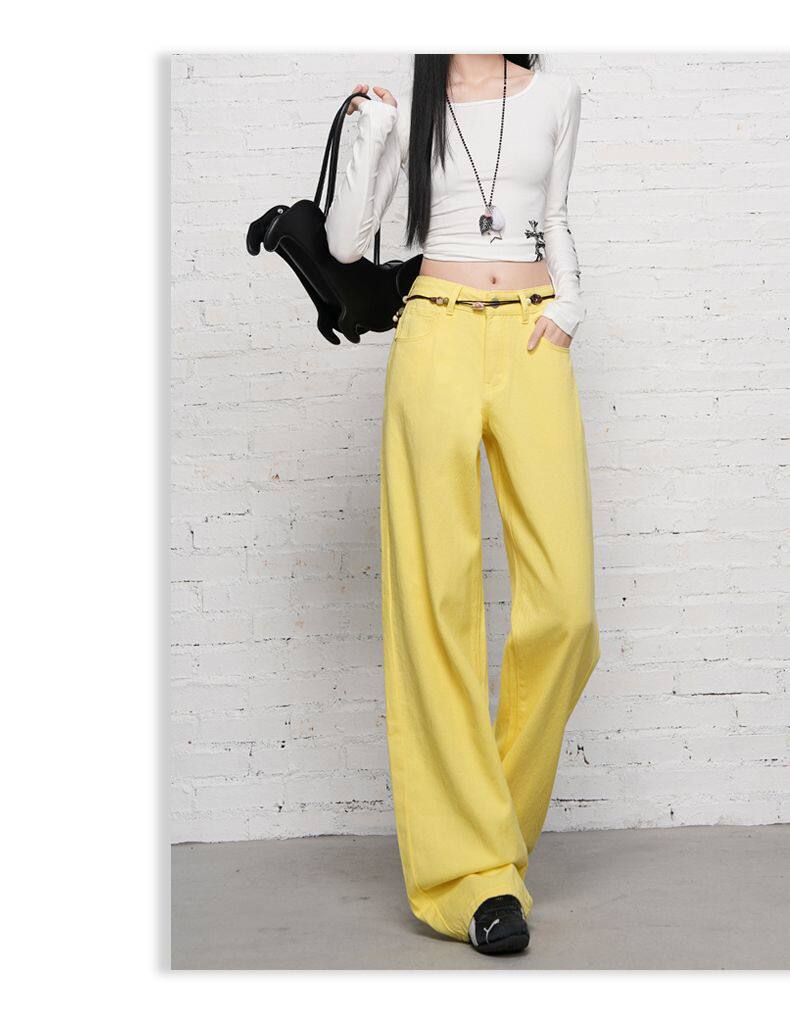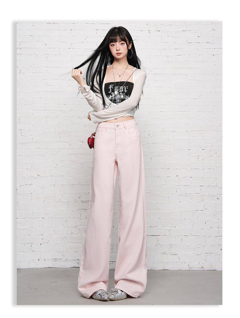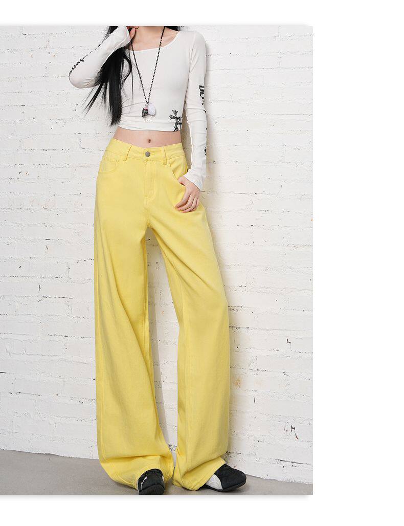 2026 Spring New Style High-Waisted Loose Slimming Wide-Leg Jeans for Women in Khaki Color with a Draping Effect Straight-Leg Long Pants