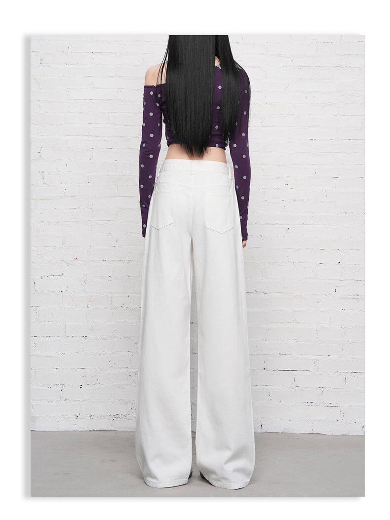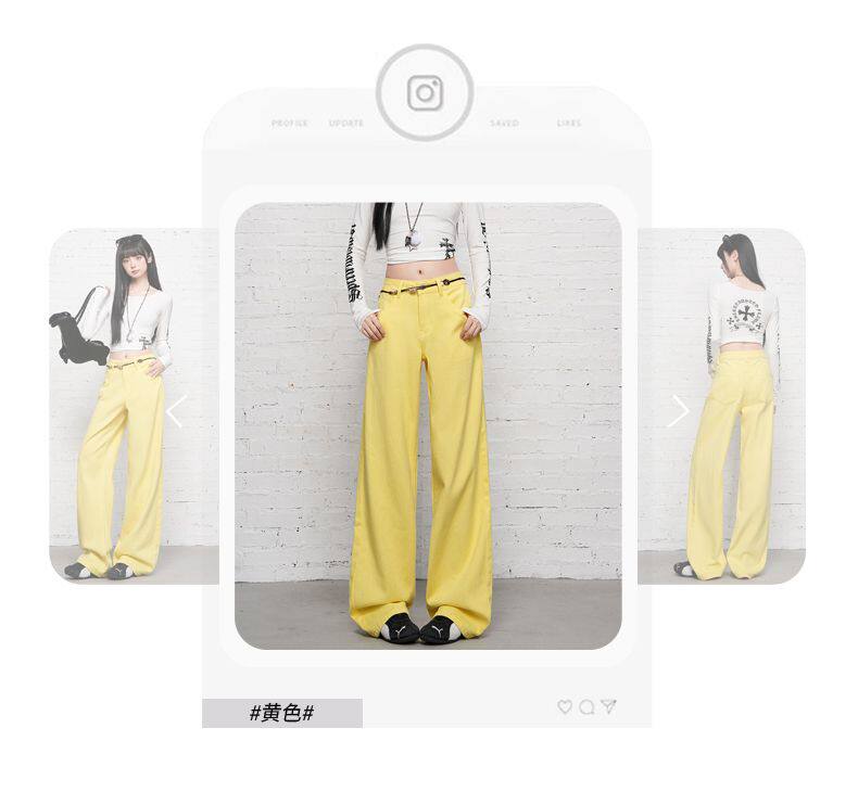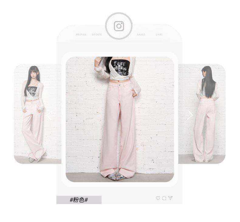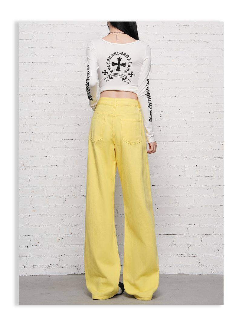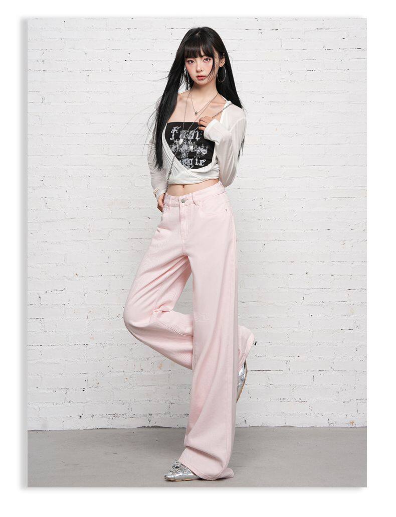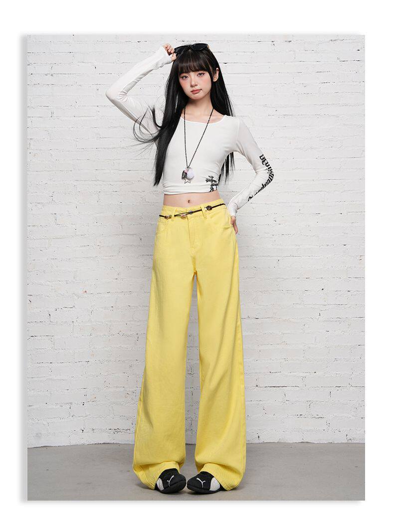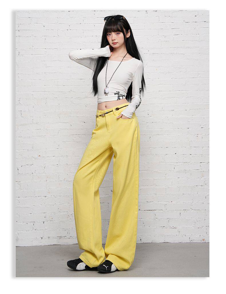 2026 Spring New Style High-Waisted Loose Slimming Wide-Leg Jeans for Women in Khaki Color with a Draping Effect Straight-Leg Long Pants