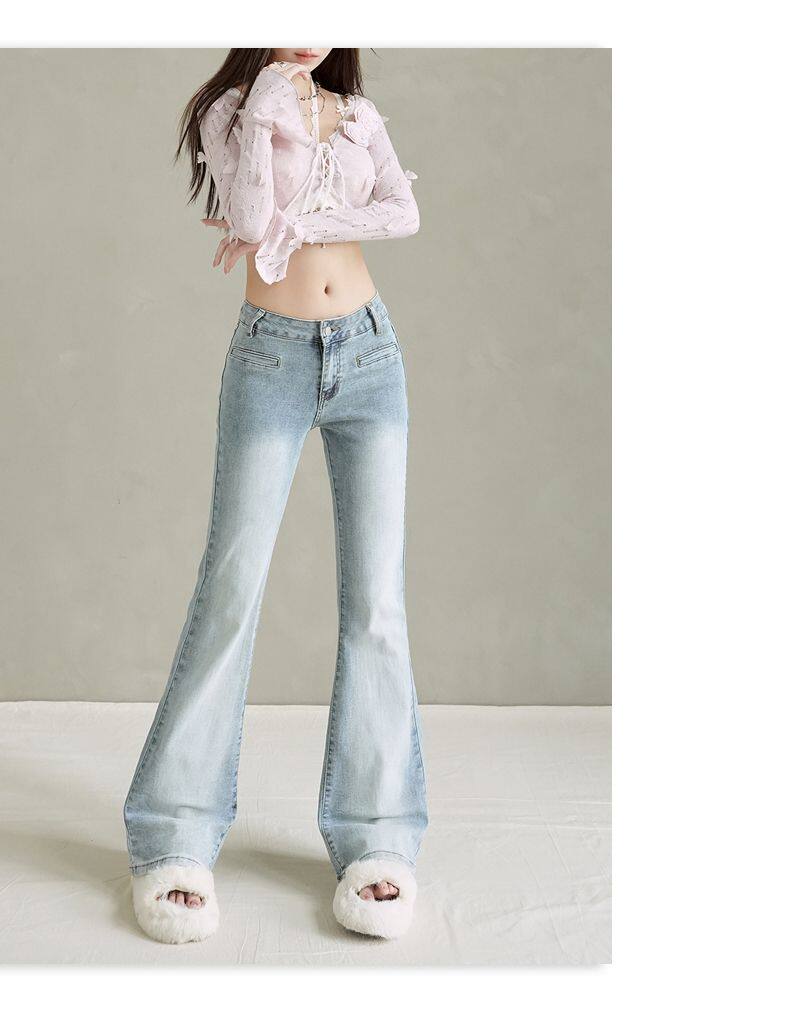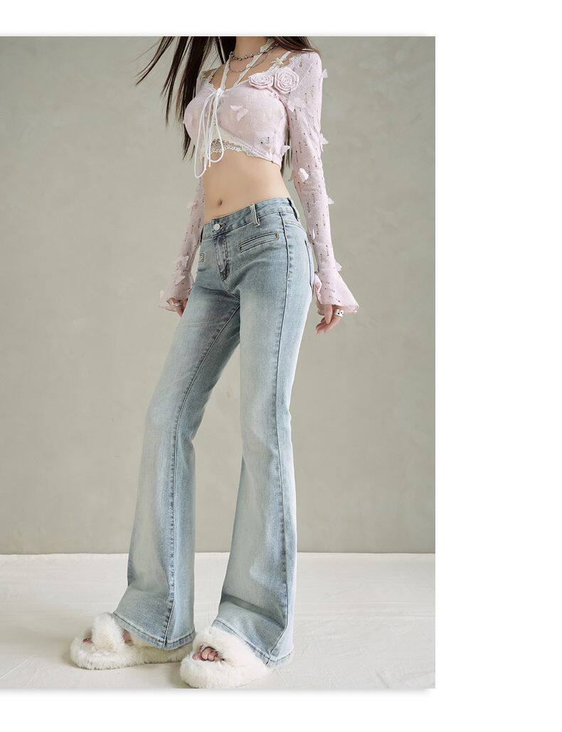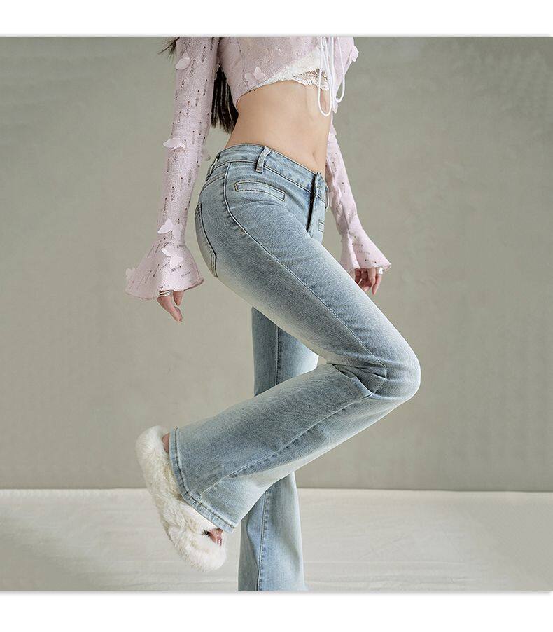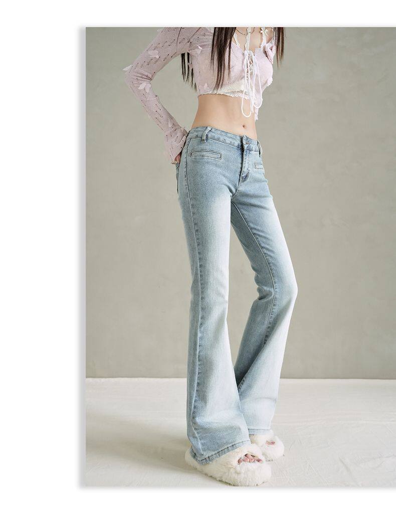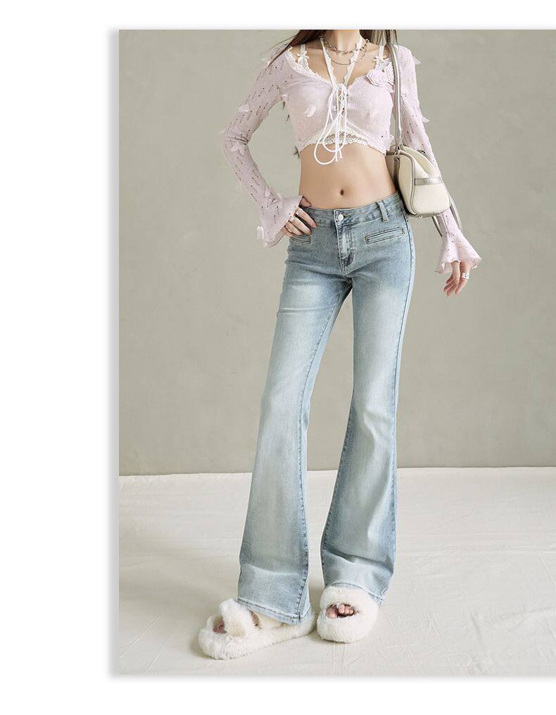 2026 New American Retro Style Spicy Girl Low-Waist Flared Jeans for Women, Light Blue Slim Fit Floor-Length Bell-Bottom Pants