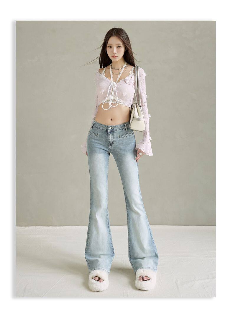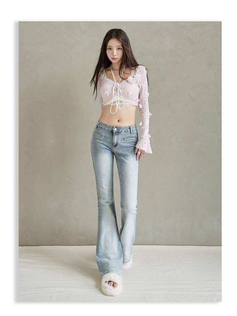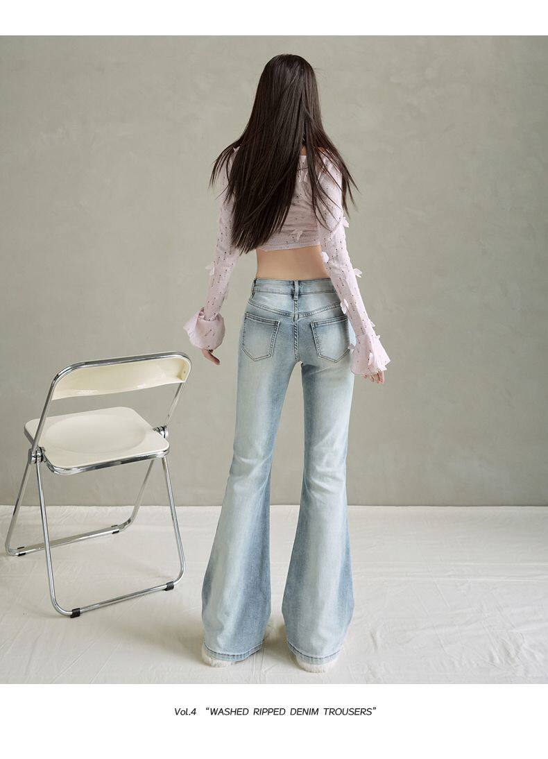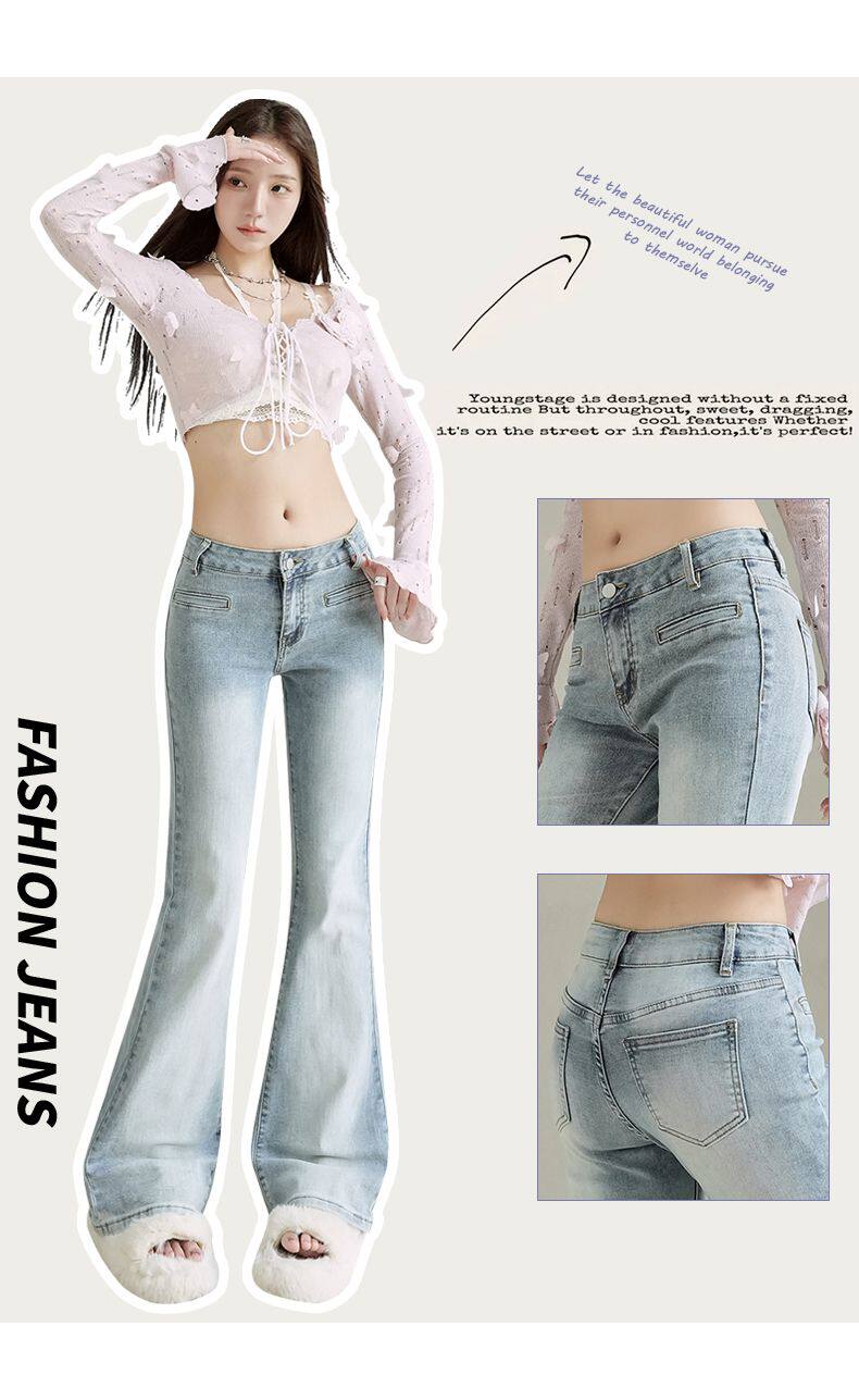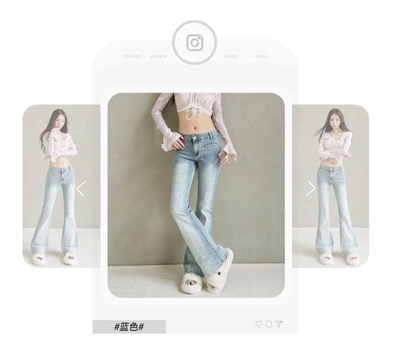 2026 New American Retro Style Spicy Girl Low-Waist Flared Jeans for Women, Light Blue Slim Fit Floor-Length Bell-Bottom Pants