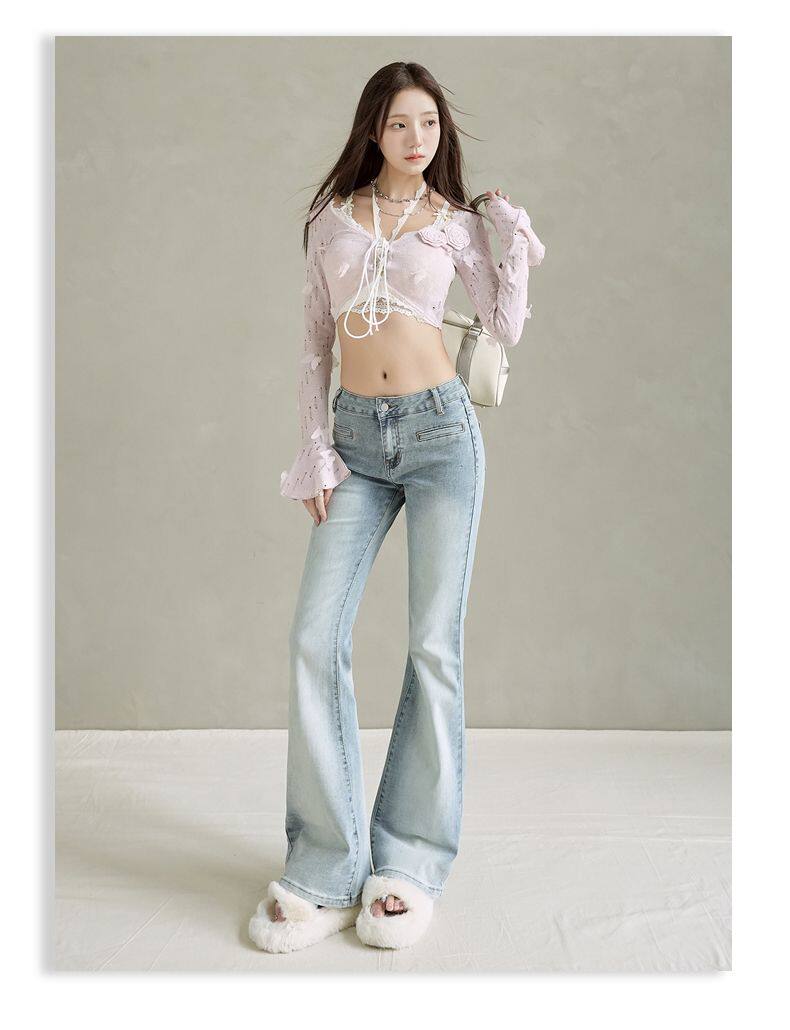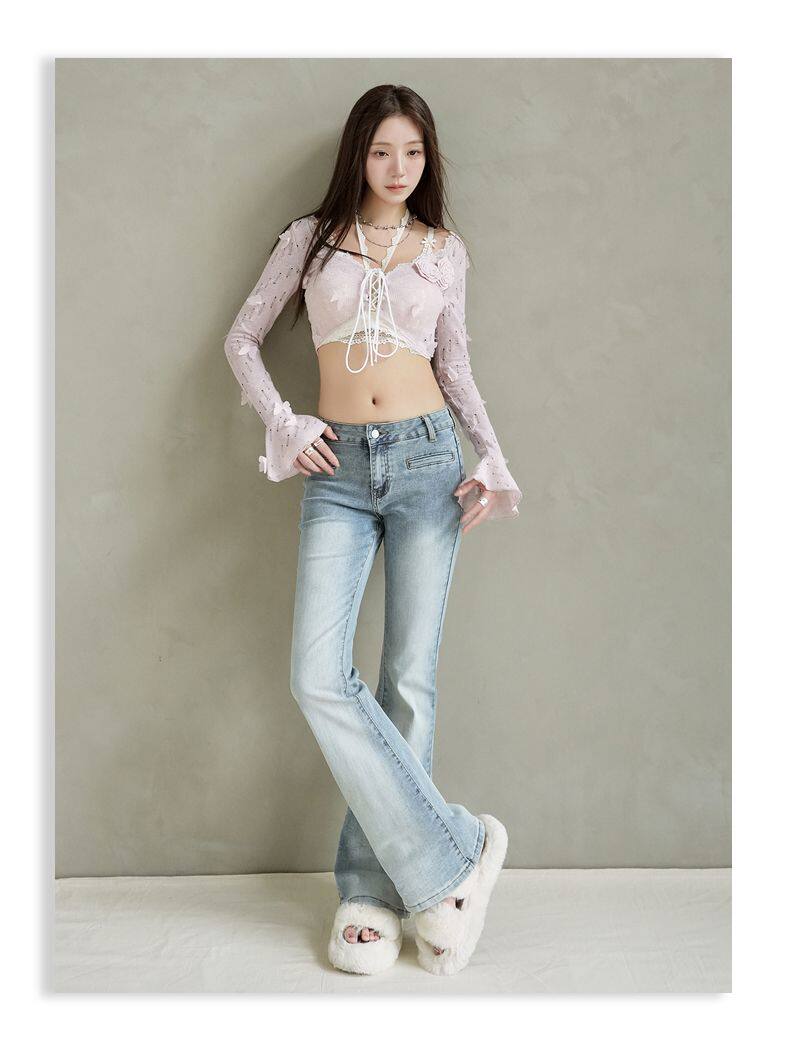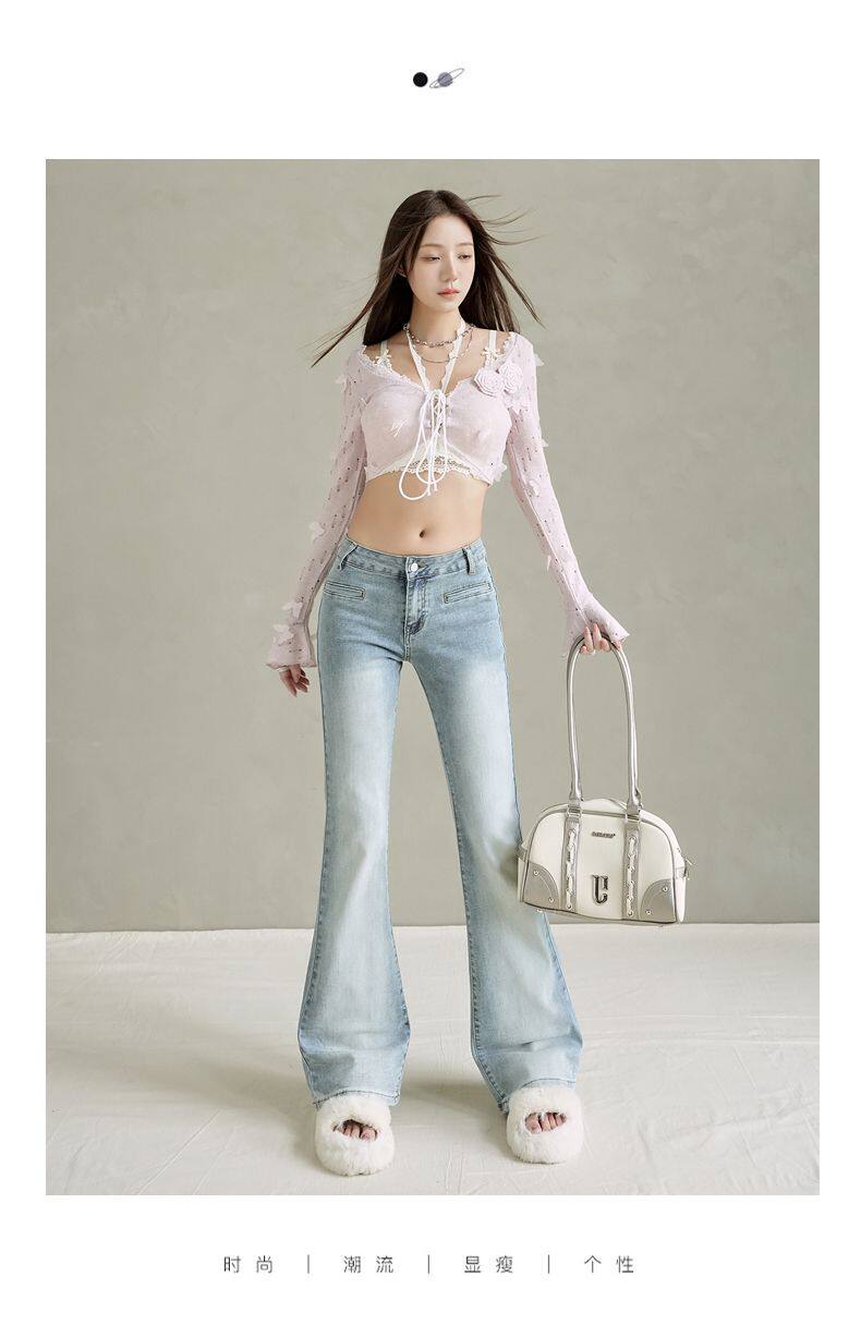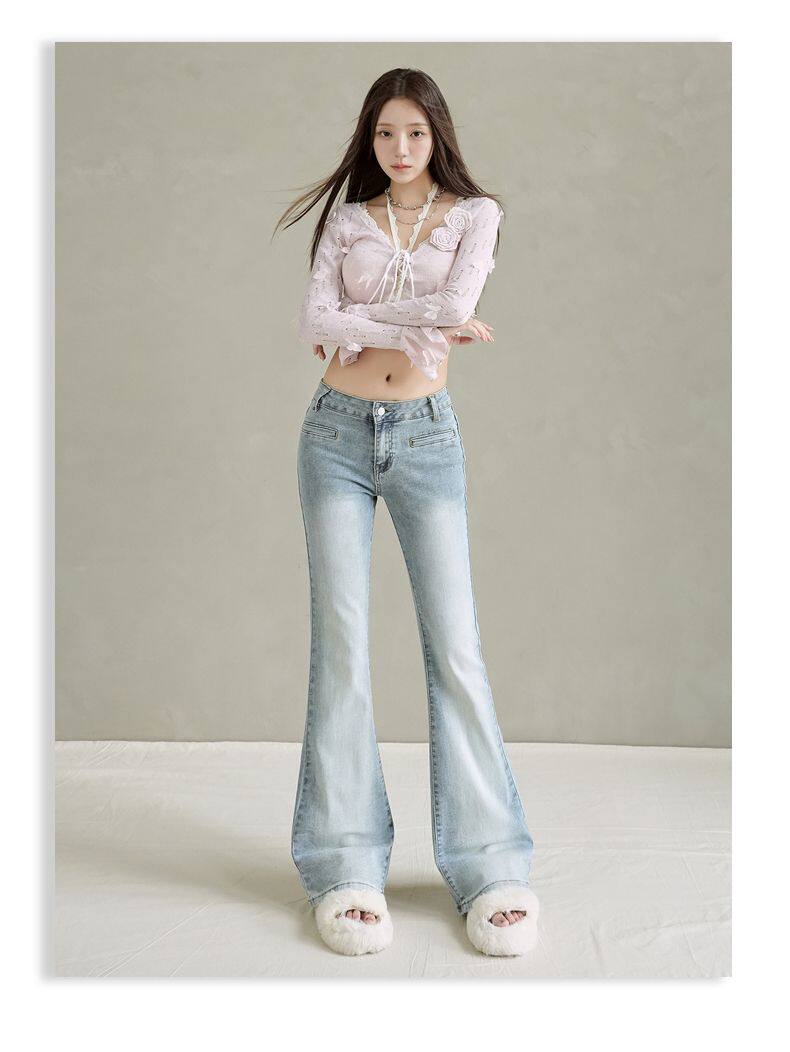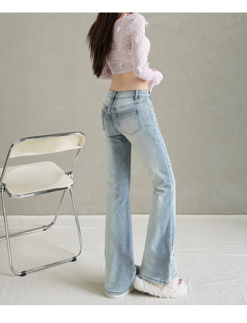 2026 New American Retro Style Spicy Girl Low-Waist Flared Jeans for Women, Light Blue Slim Fit Floor-Length Bell-Bottom Pants