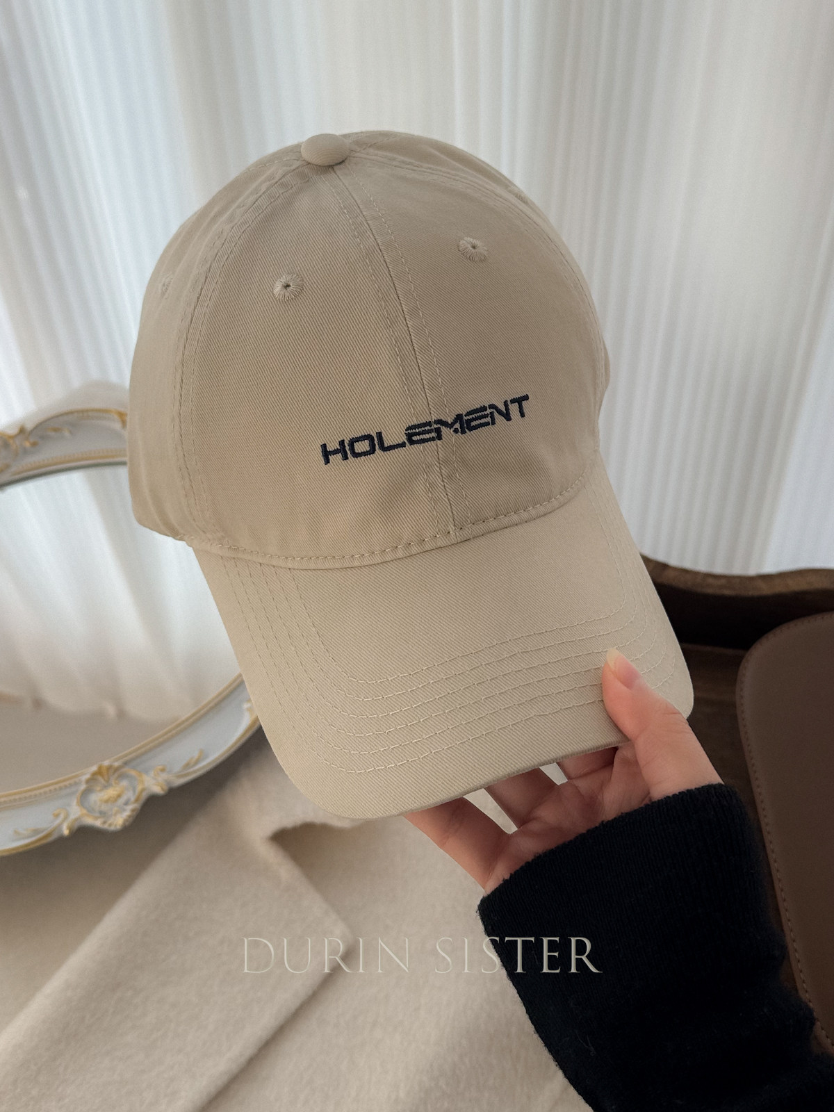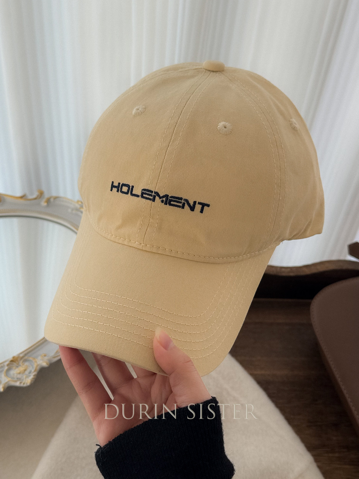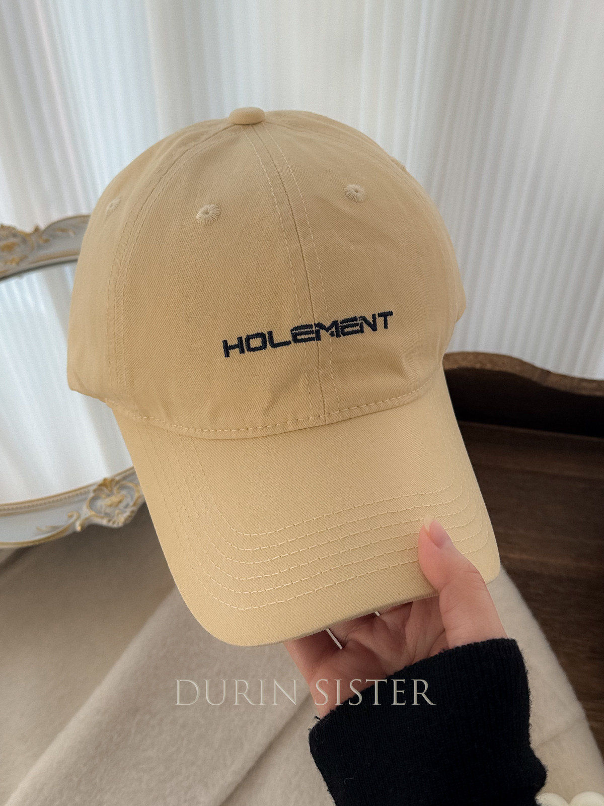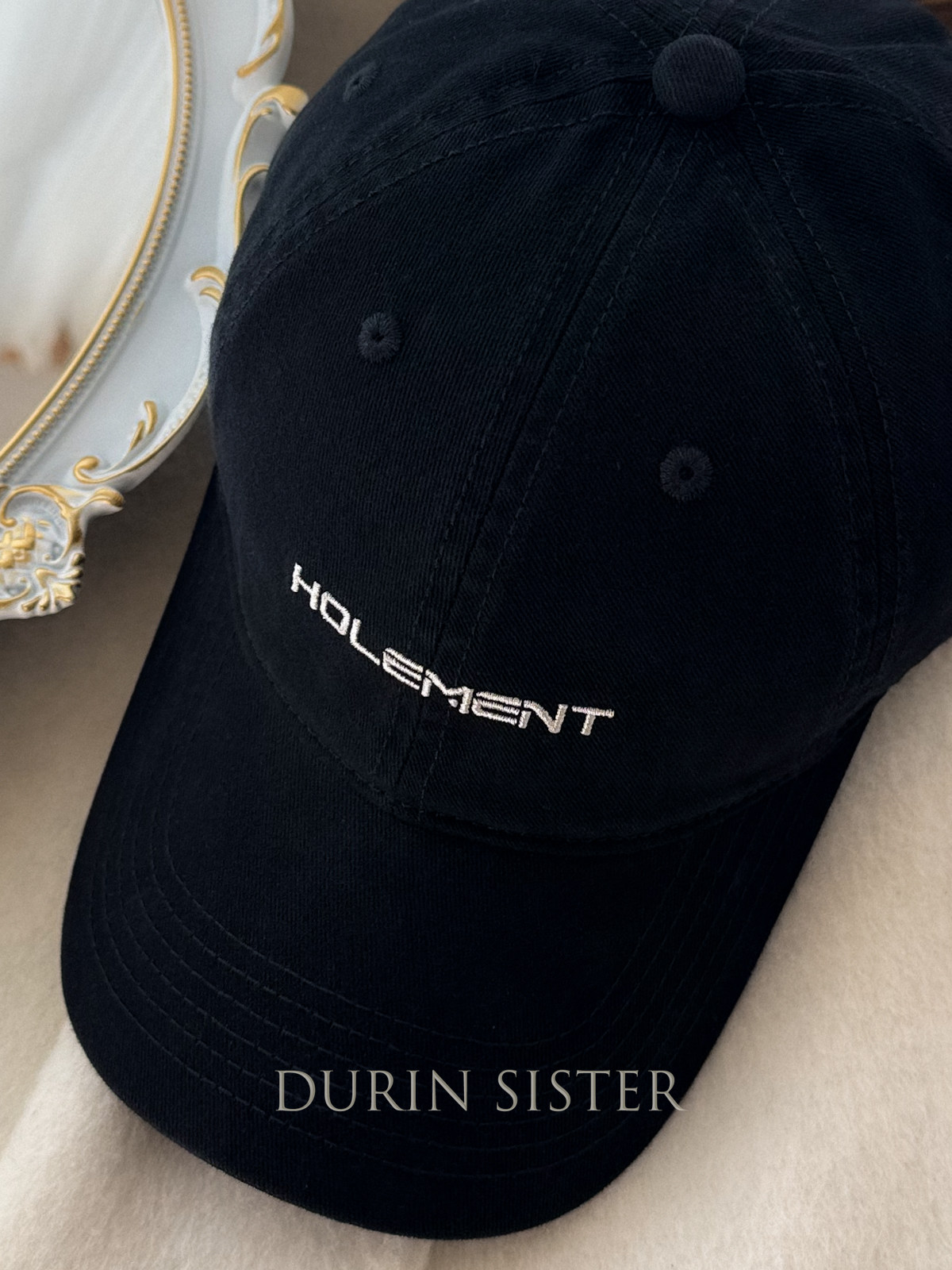 The Fit Is Perfect! so Korean-Style! Navy Blue Letter Embroidery Hol Baseball Cap for Women, Wide Brim, Makes the Face Look Smaller