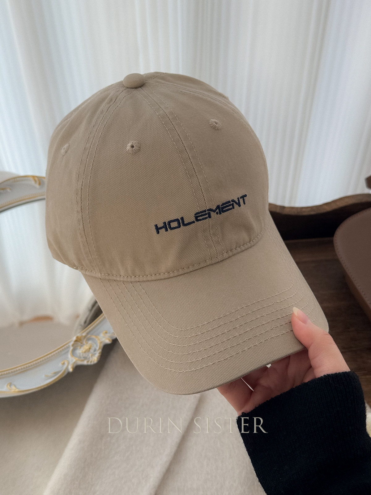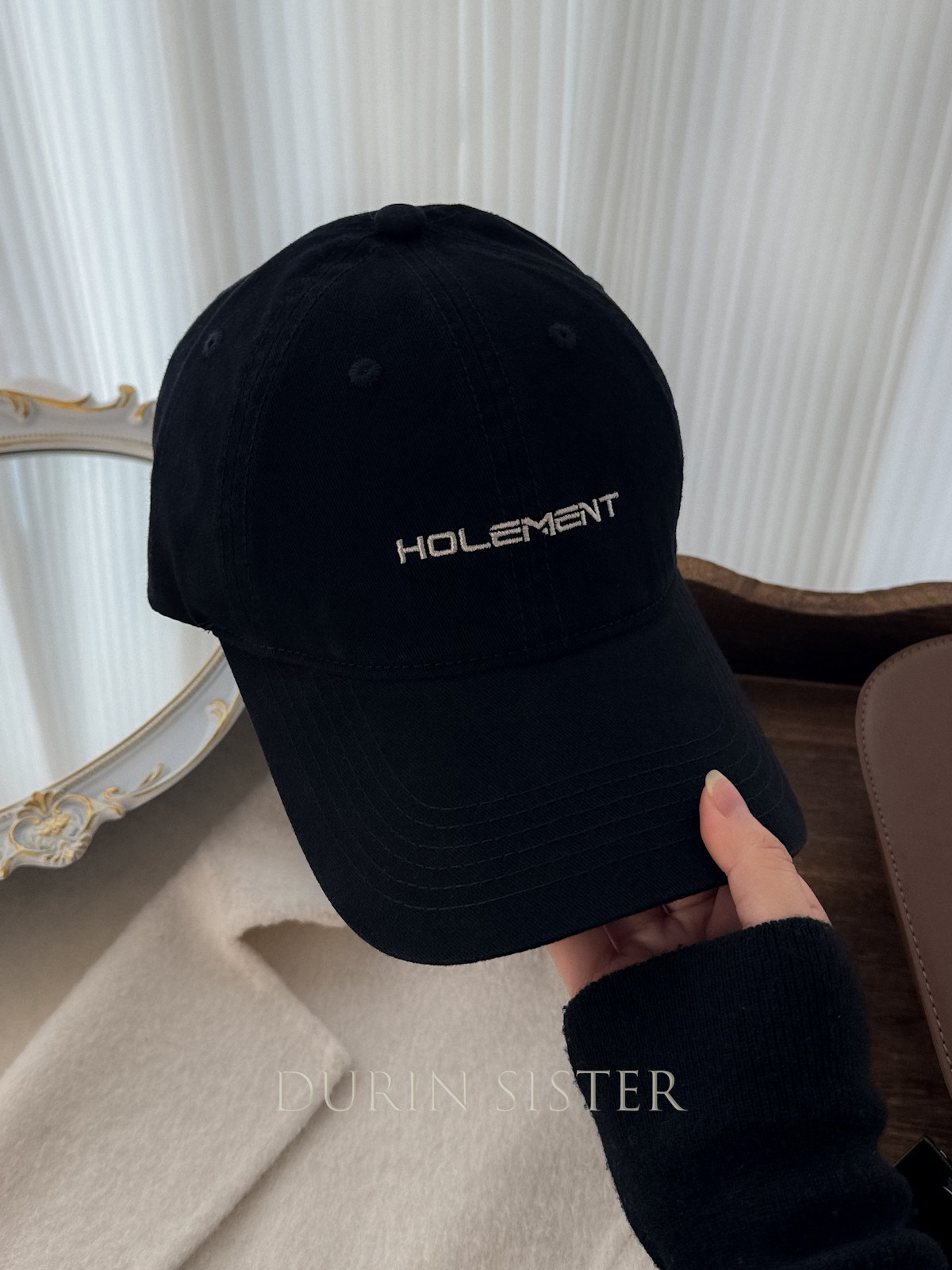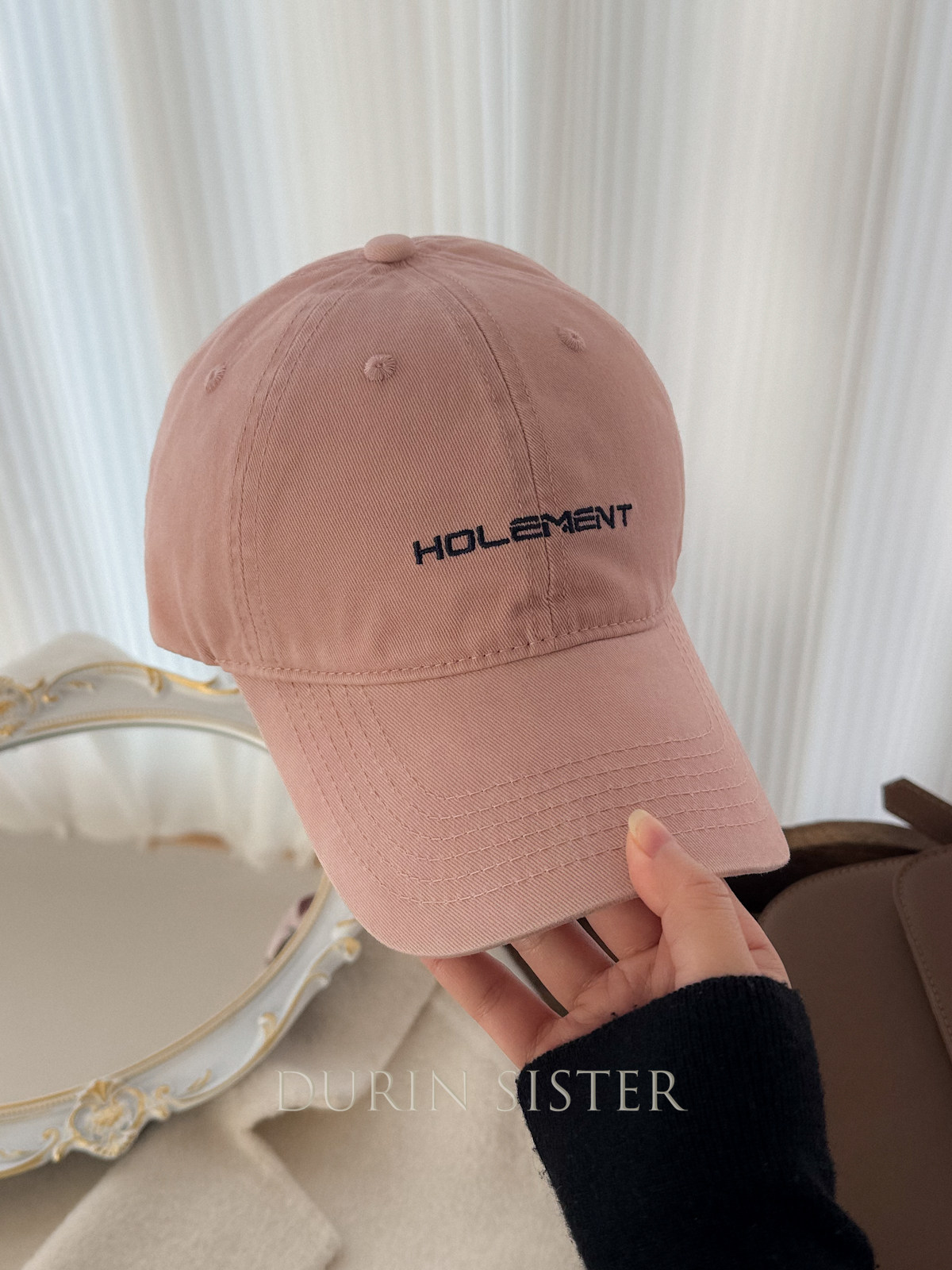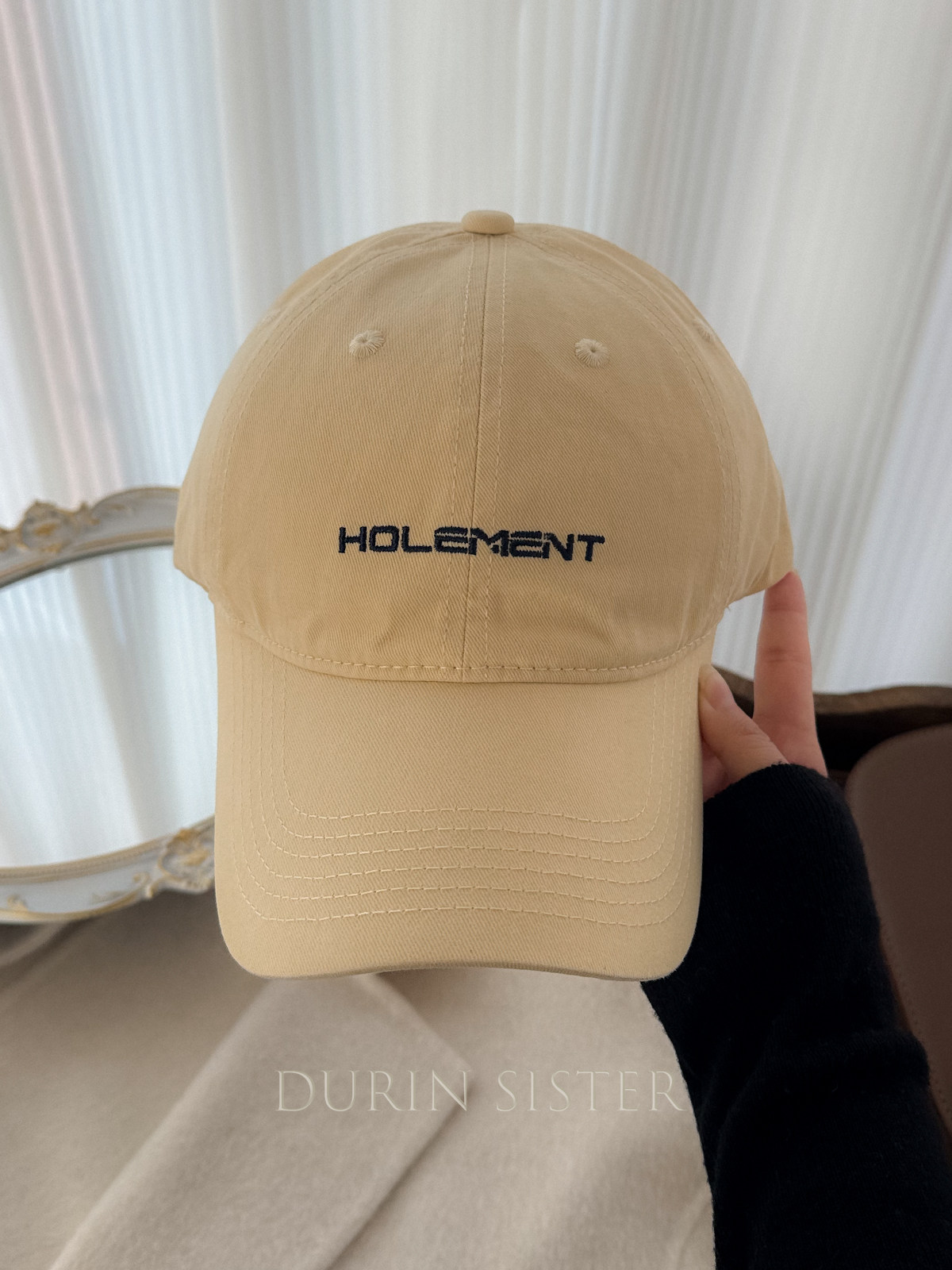 The Fit Is Perfect! so Korean-Style! Navy Blue Letter Embroidery Hol Baseball Cap for Women, Wide Brim, Makes the Face Look Smaller
