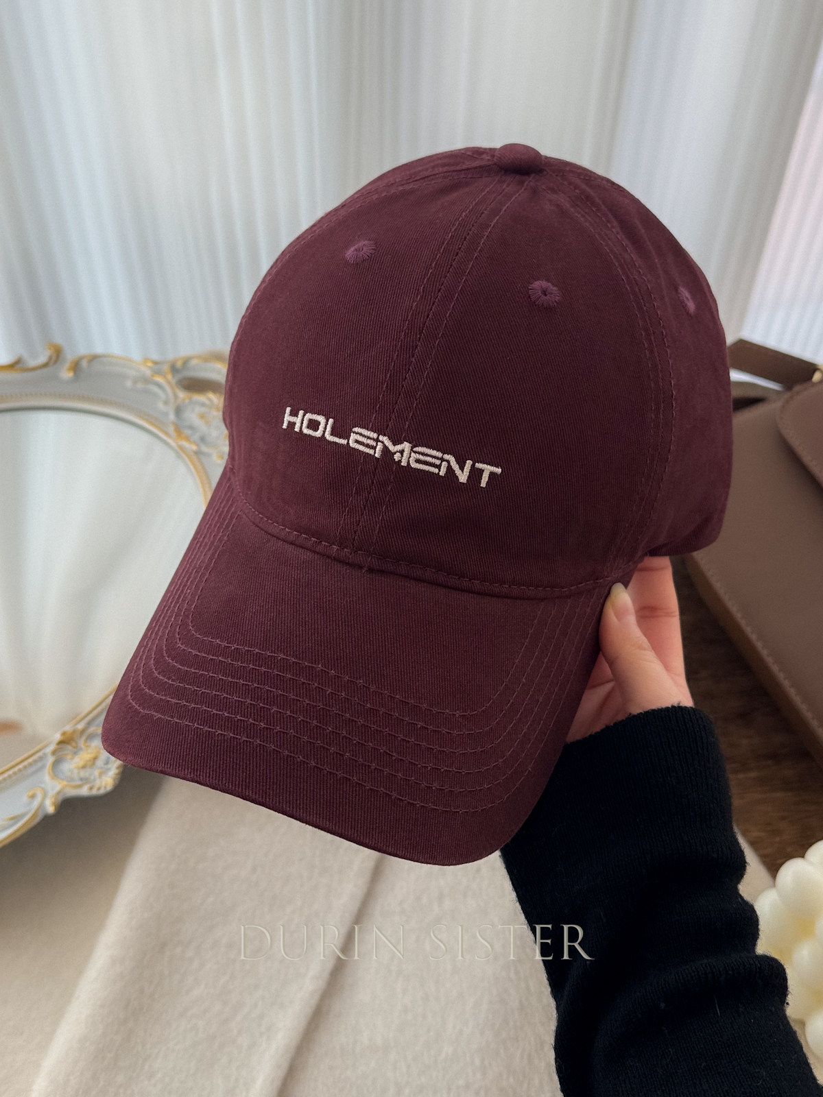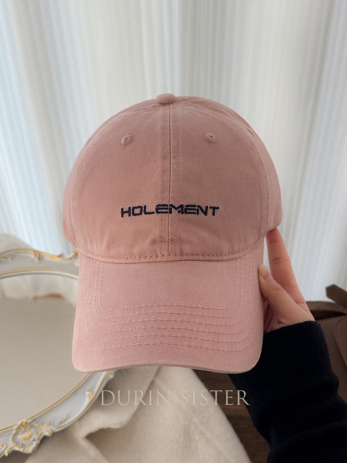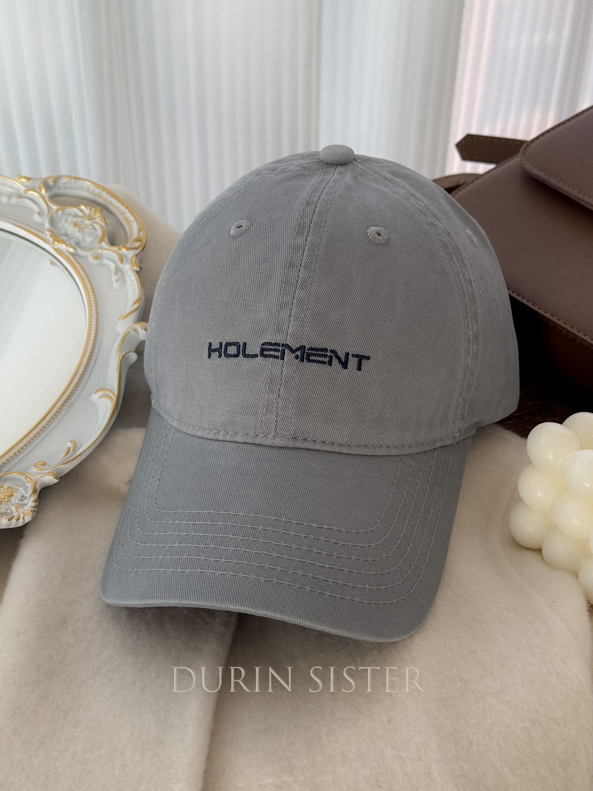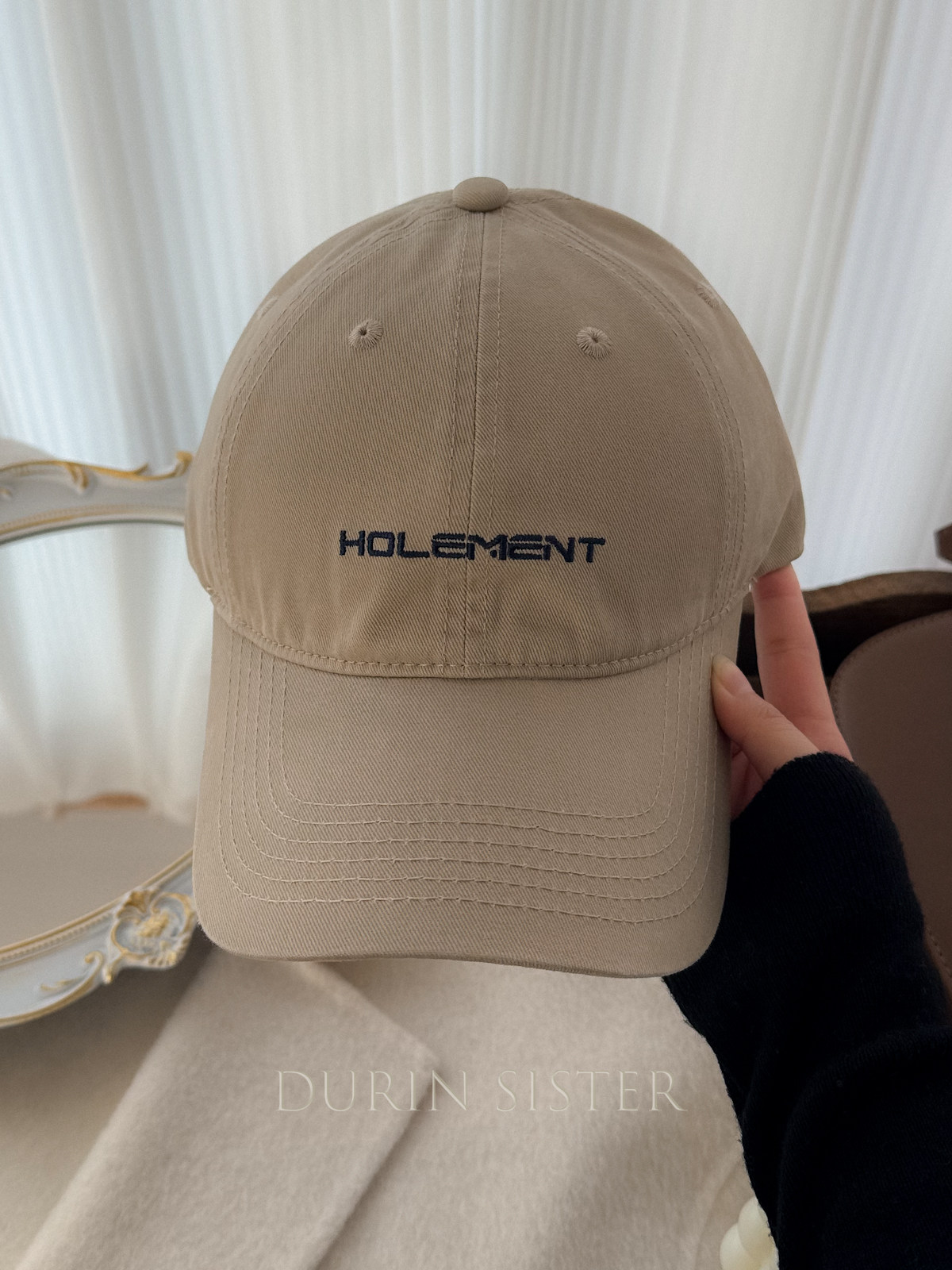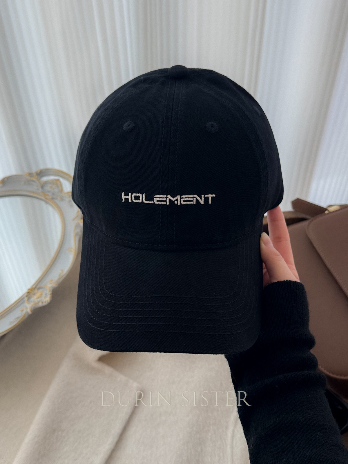 The Fit Is Perfect! so Korean-Style! Navy Blue Letter Embroidery Hol Baseball Cap for Women, Wide Brim, Makes the Face Look Smaller