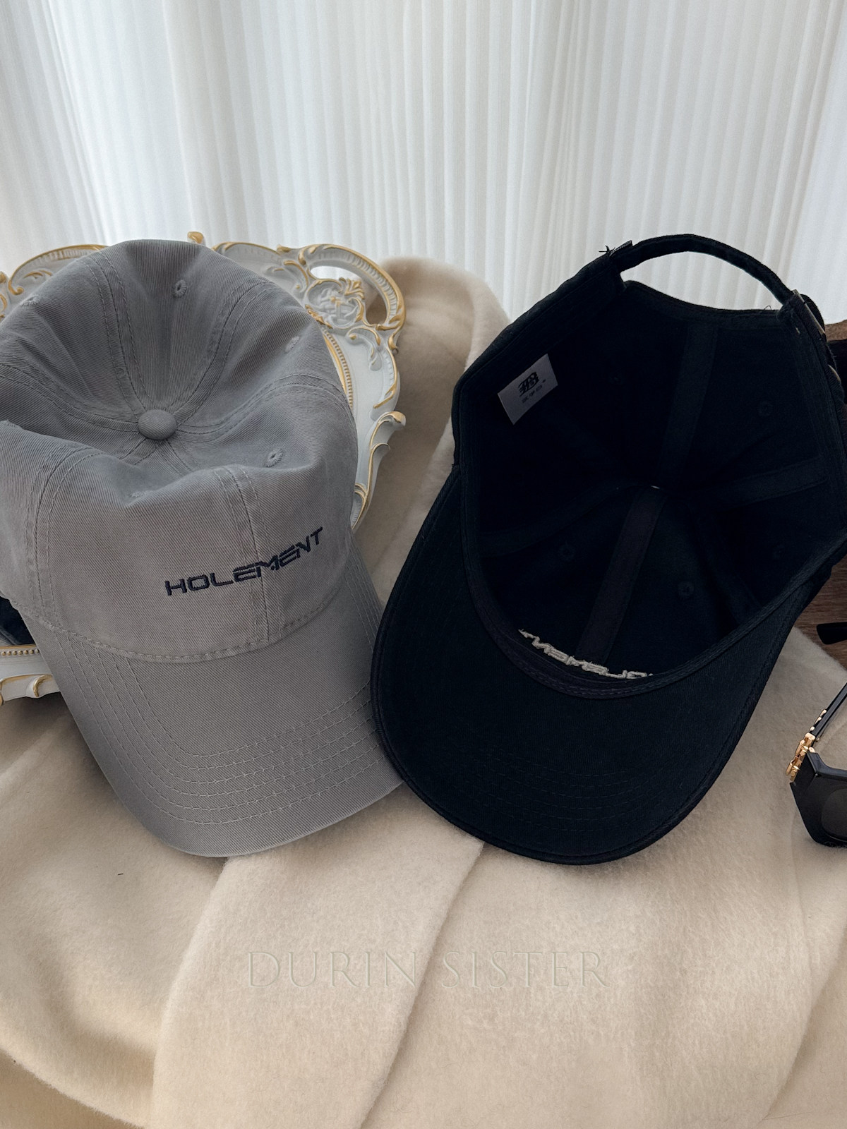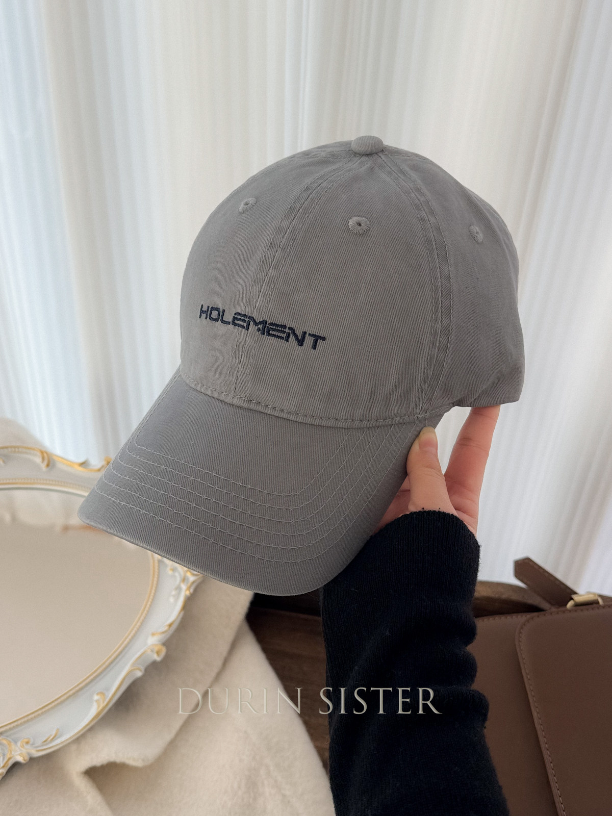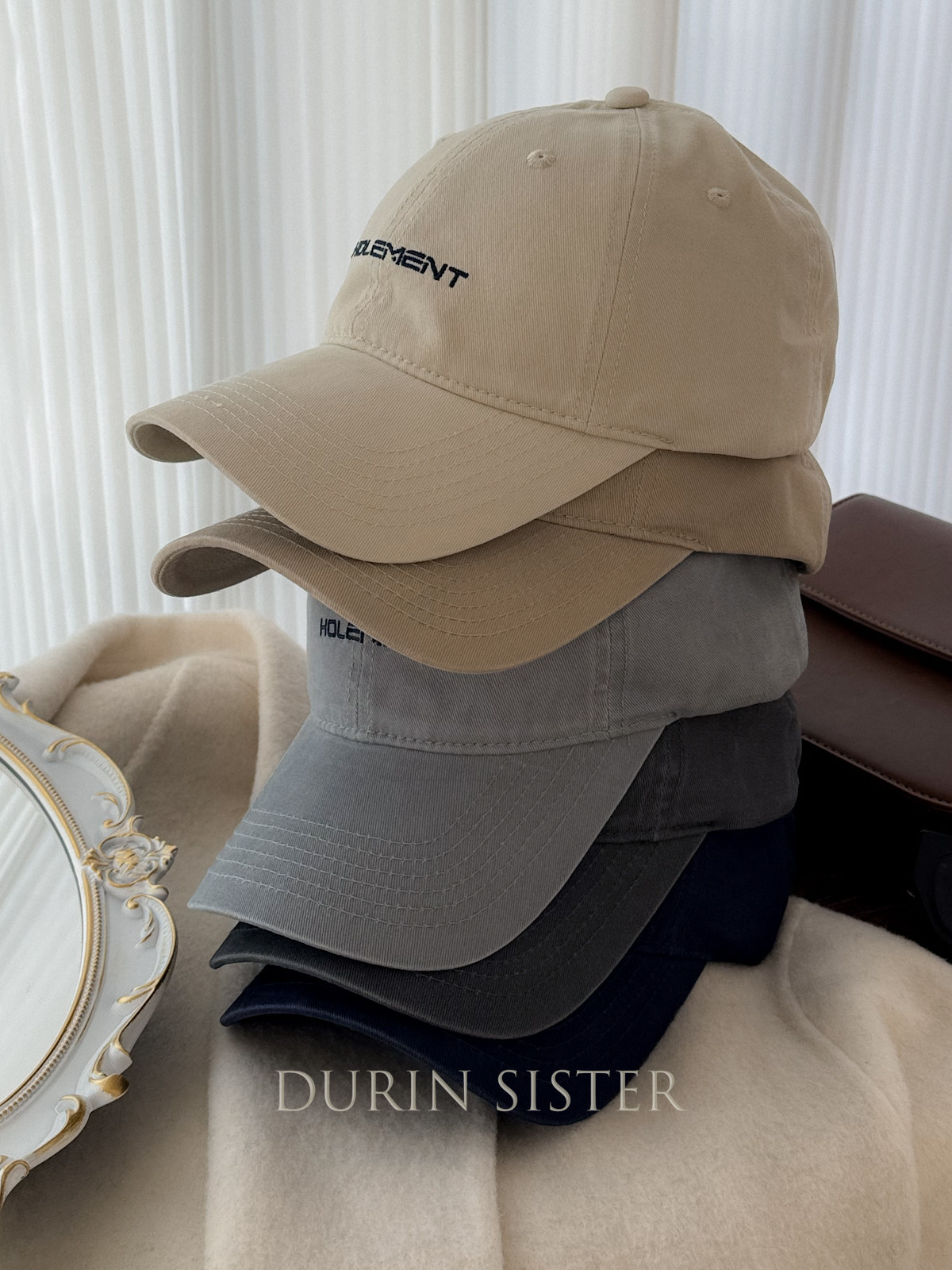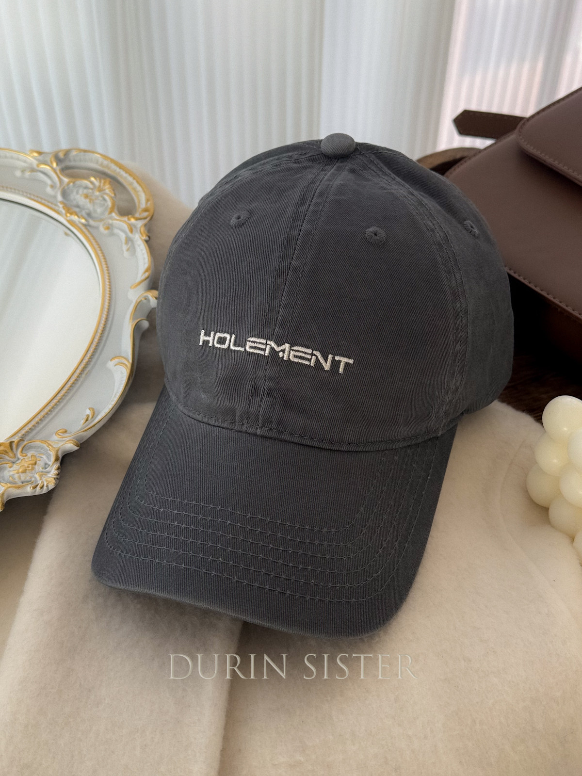 The Fit Is Perfect! so Korean-Style! Navy Blue Letter Embroidery Hol Baseball Cap for Women, Wide Brim, Makes the Face Look Smaller