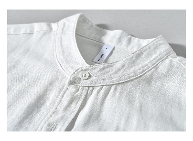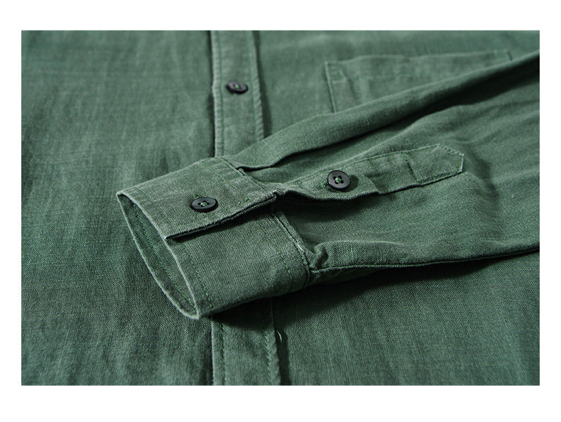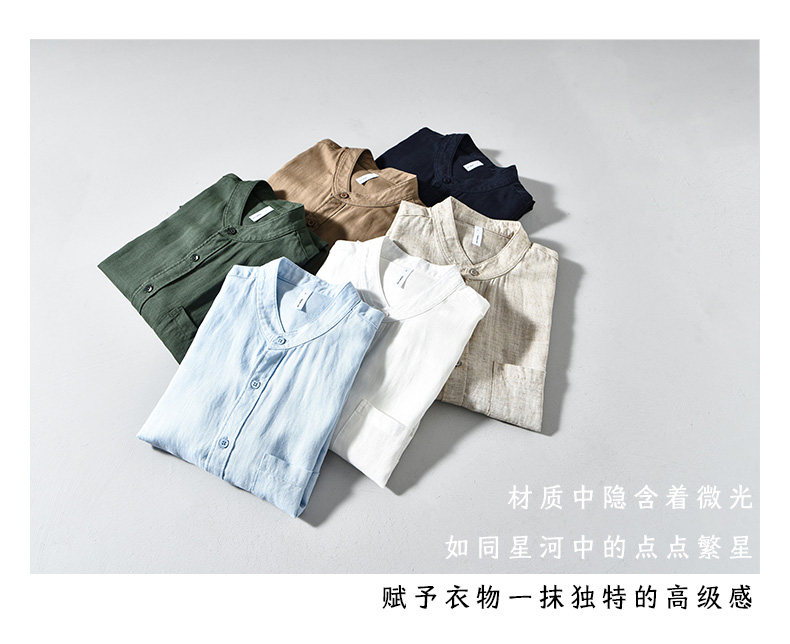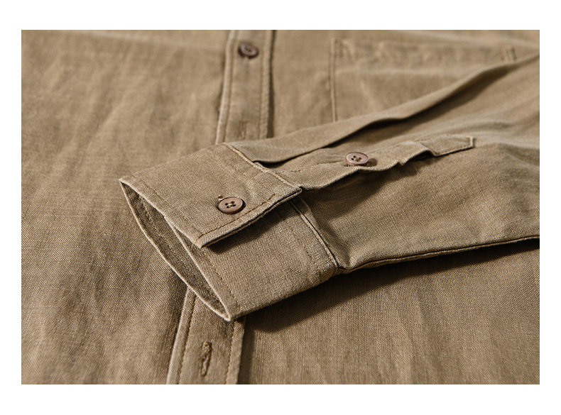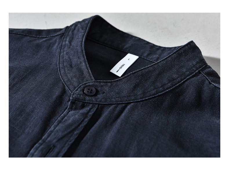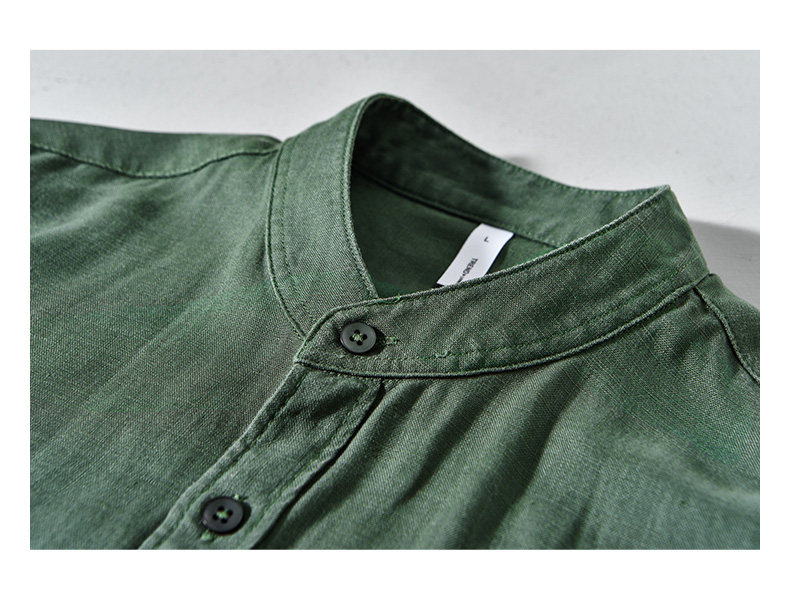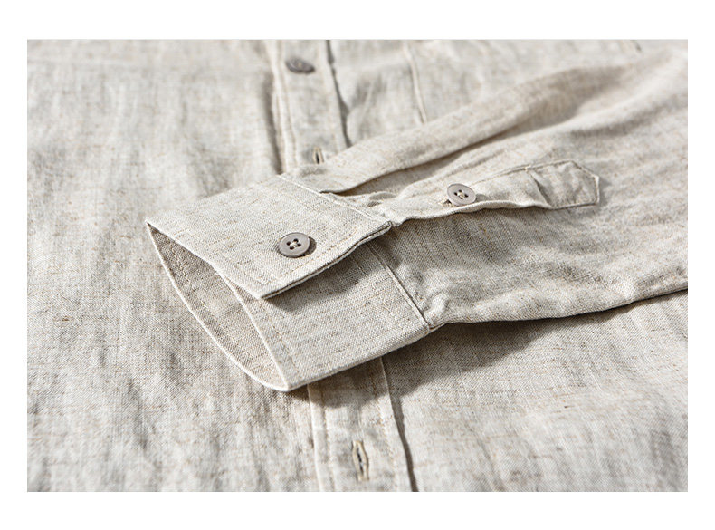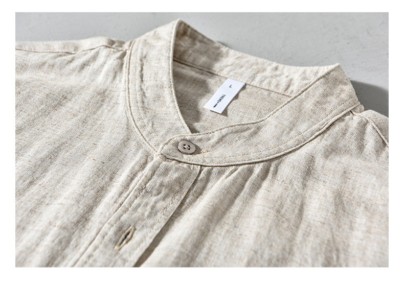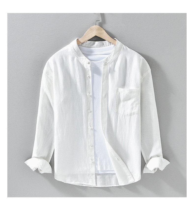 Elegant Gentleman Tencel Linen New Chinese Style Stand Collar Shirt for Men, Long Sleeve, Old Money Retro Original Linen Color with Pocket Design