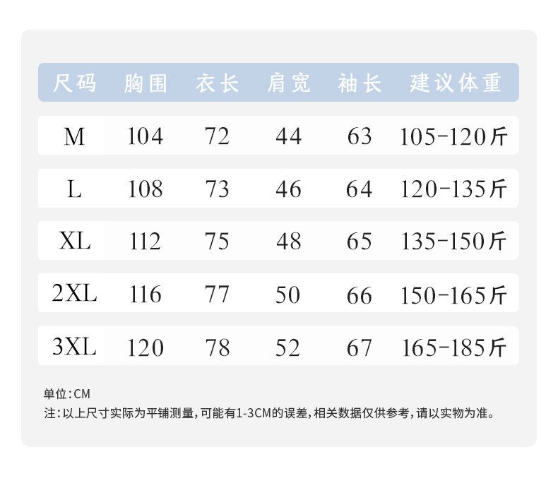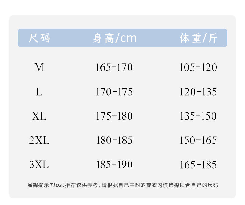 China (cm) 165 / 88-90 170 / 96-98 175 / 108-110 180 / 118-122 185 / 126-130