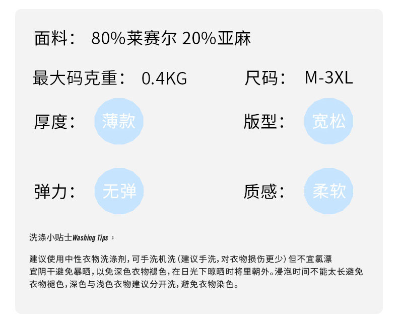 Material Composition Lyocell Fiber (Lyocell) 80.0% Linen 20.0%