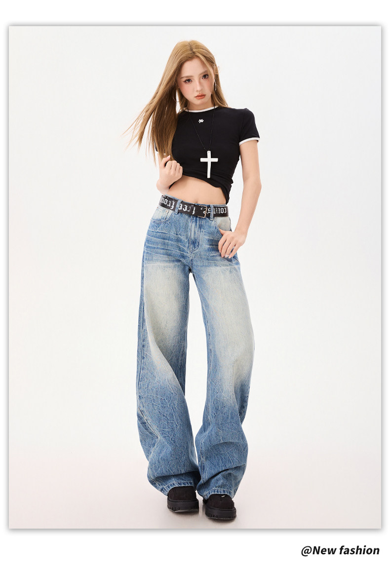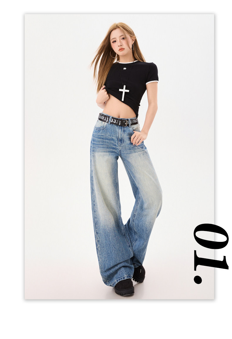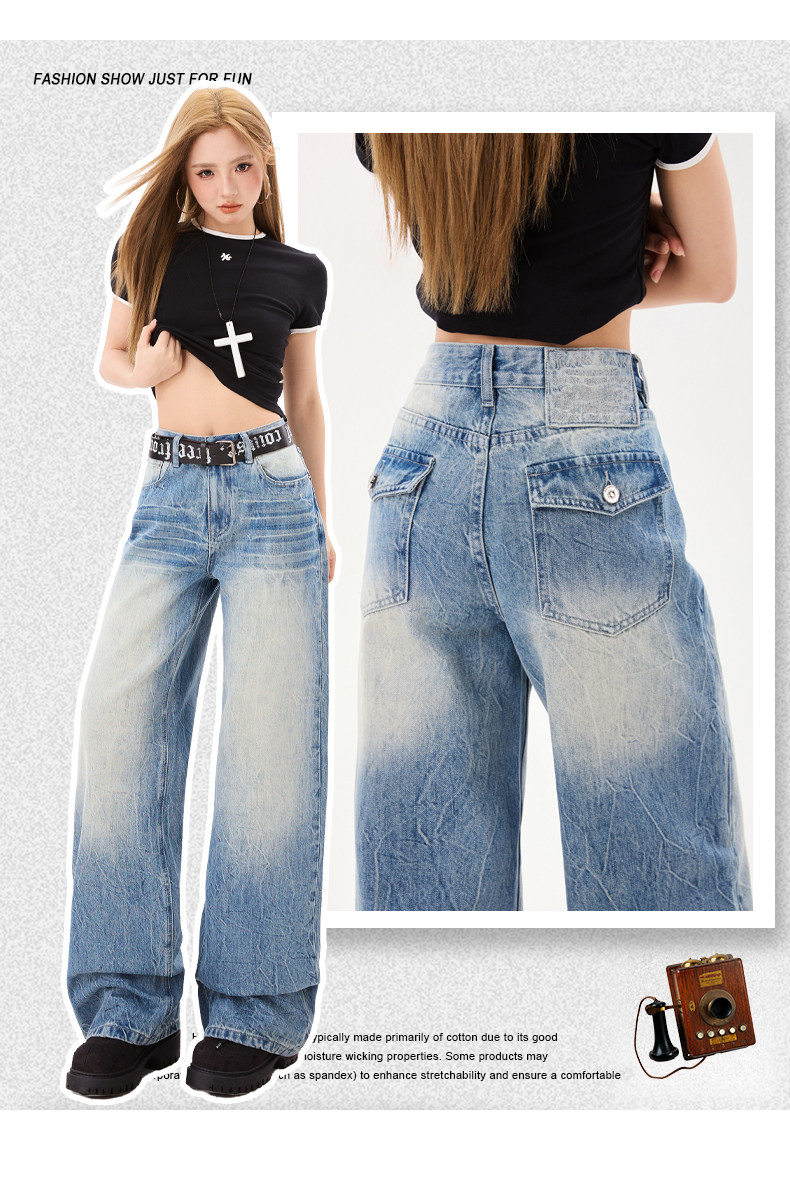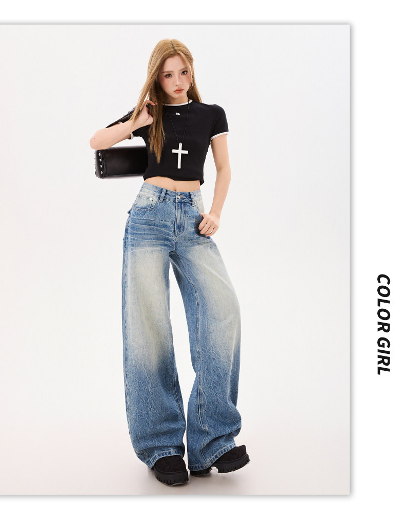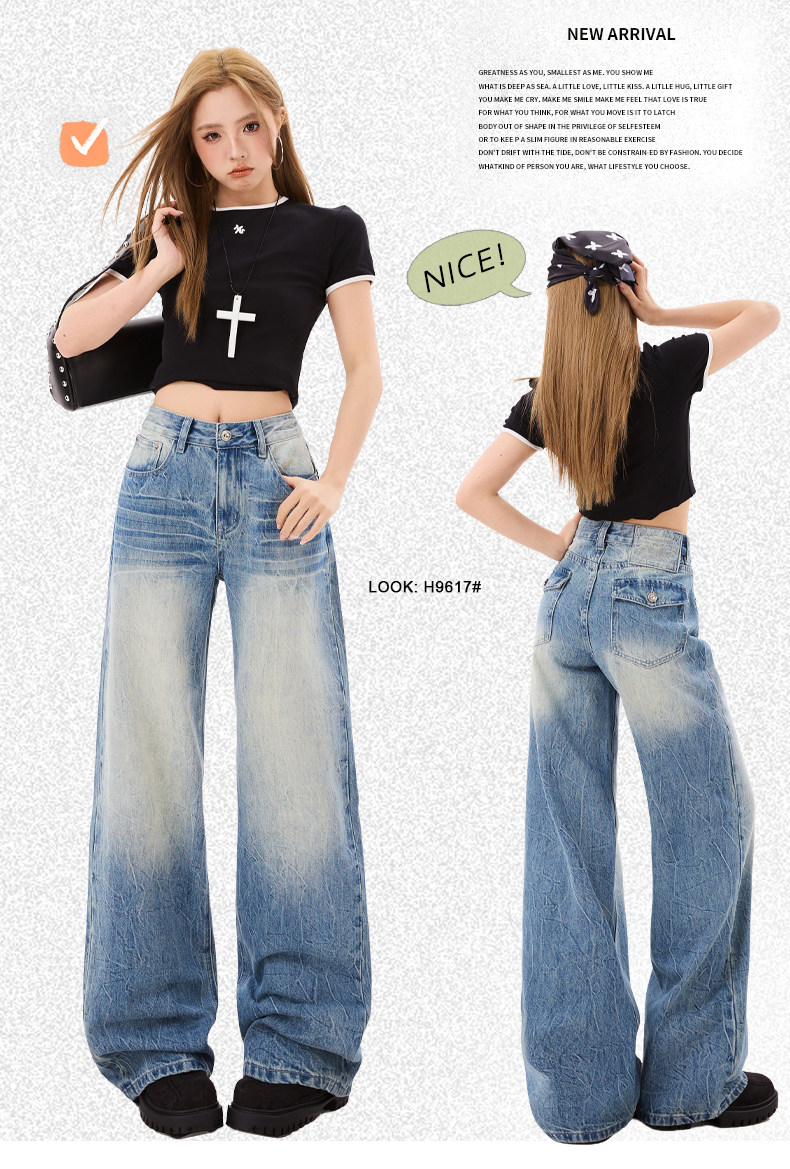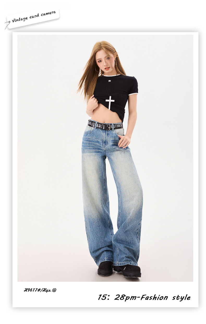 2026 Spring and Summer New American High Street Fashion Versatile Sweet Cool Hot Girl Loose Slimming Wide Leg Jeans Women's Clothing