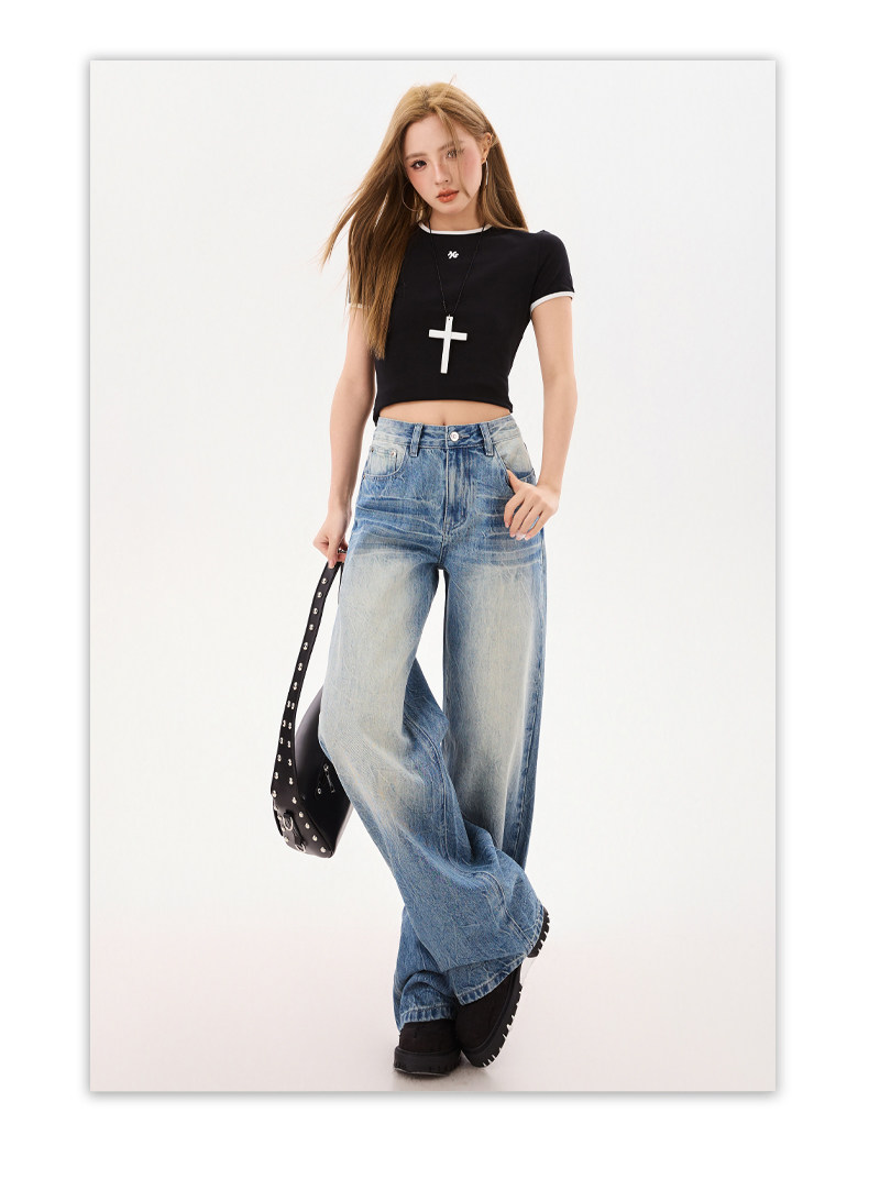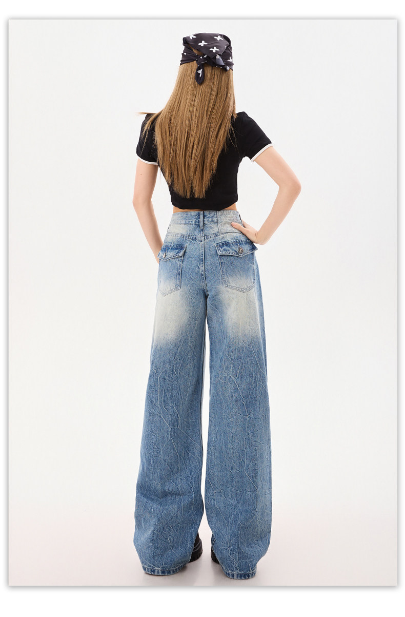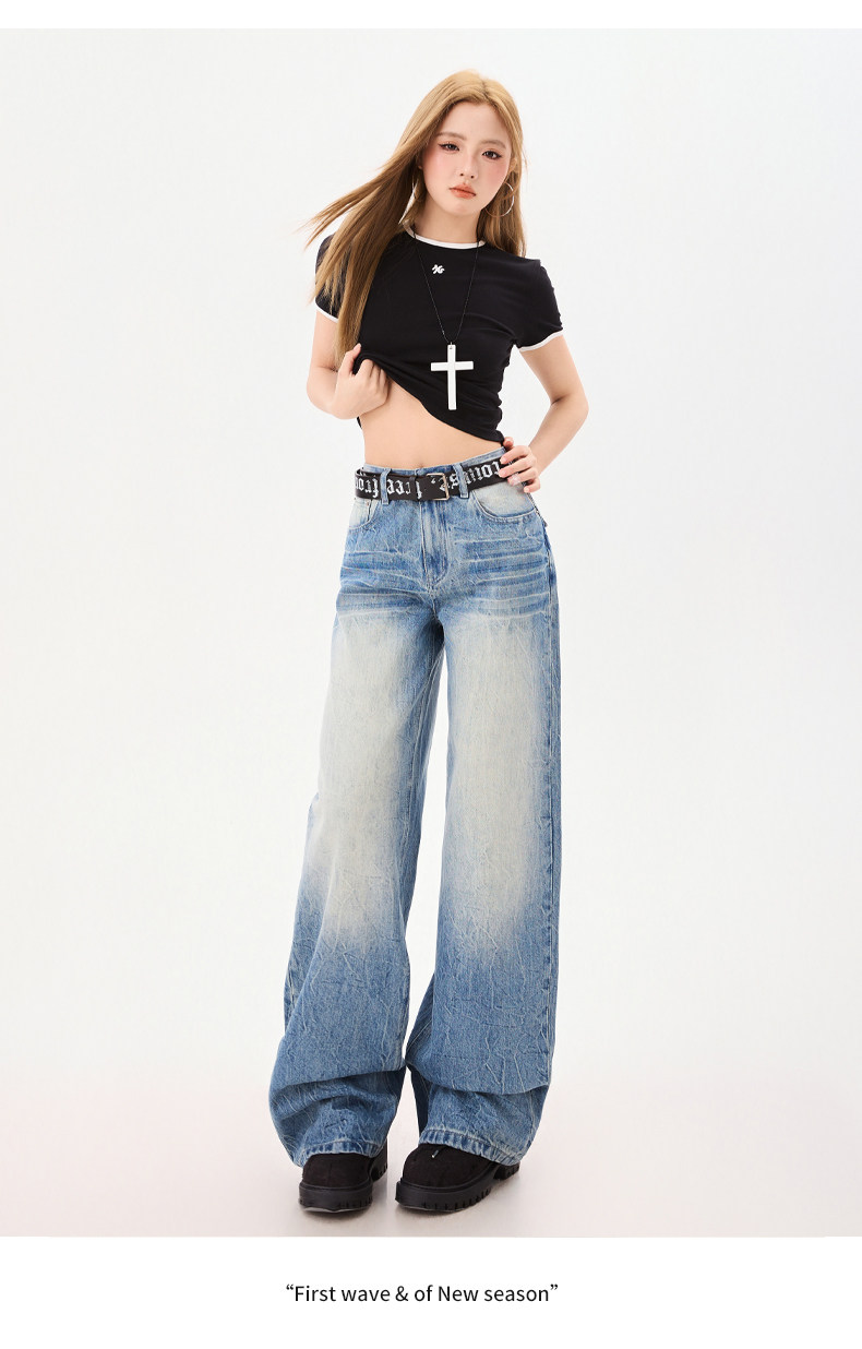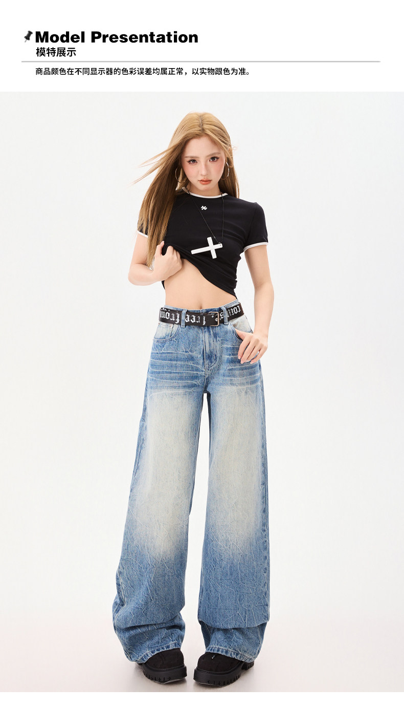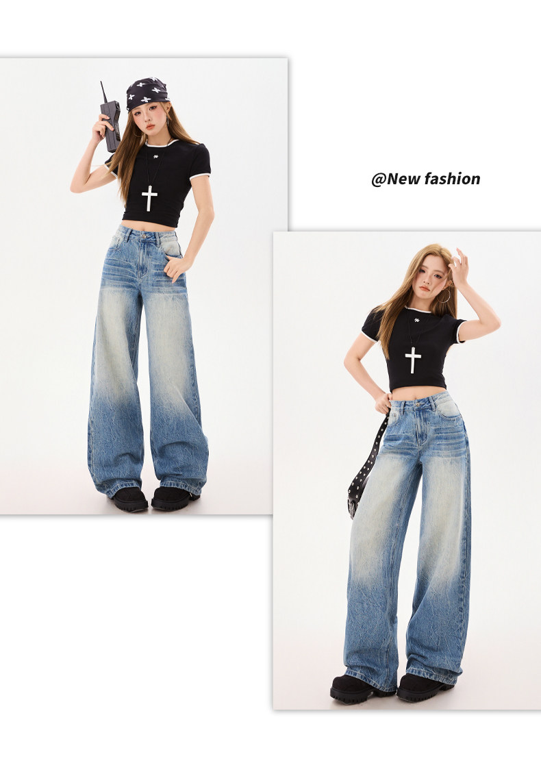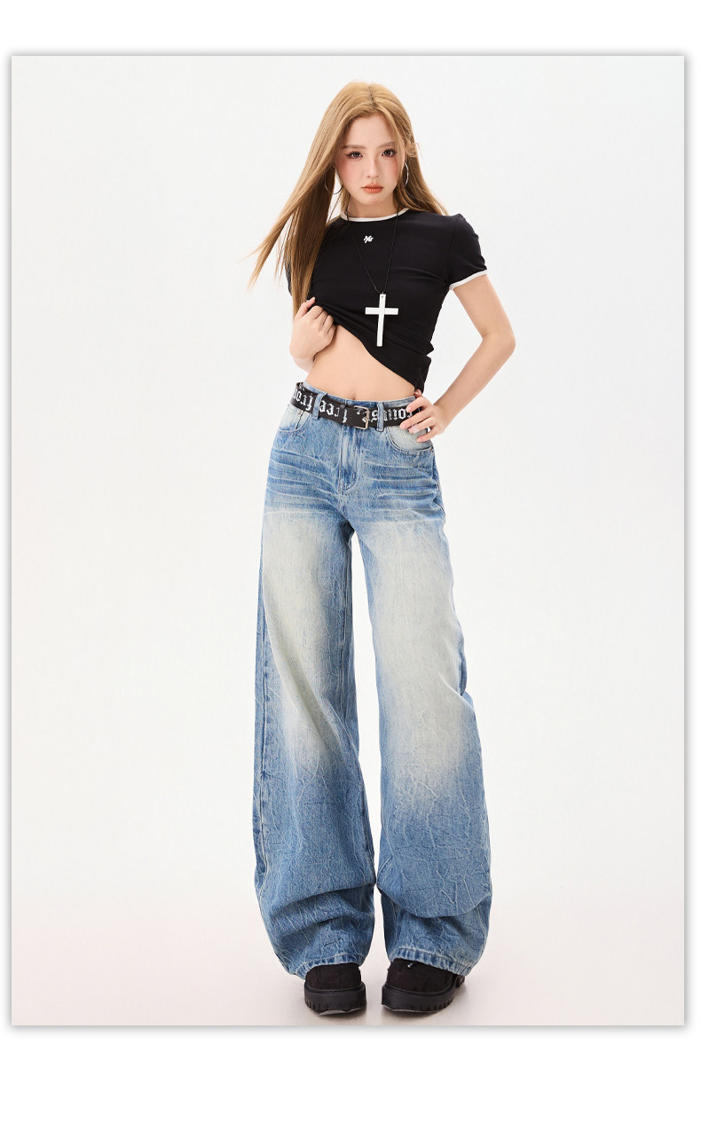 2026 Spring and Summer New American High Street Fashion Versatile Sweet Cool Hot Girl Loose Slimming Wide Leg Jeans Women's Clothing