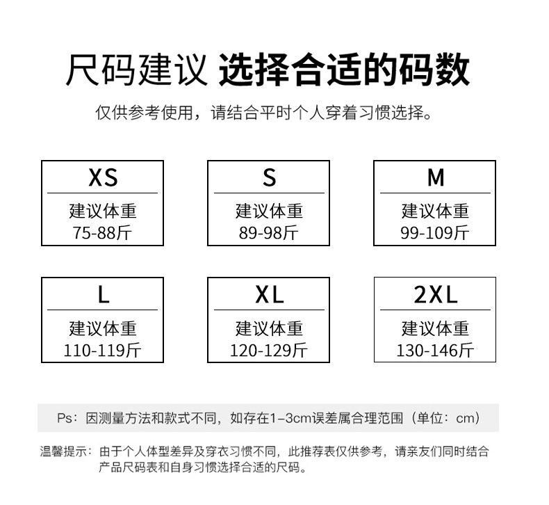 China (cm) 165 / 88-90 170 / 96-98 175 / 108-110 180 / 118-122 185 / 126-130