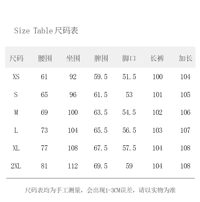 Outseam (cm) 99 cm 101.5 cm 104 cm 106.5 cm 109 cm