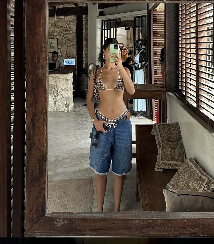Color Classification Plaid Bikini,Three-Piece Set