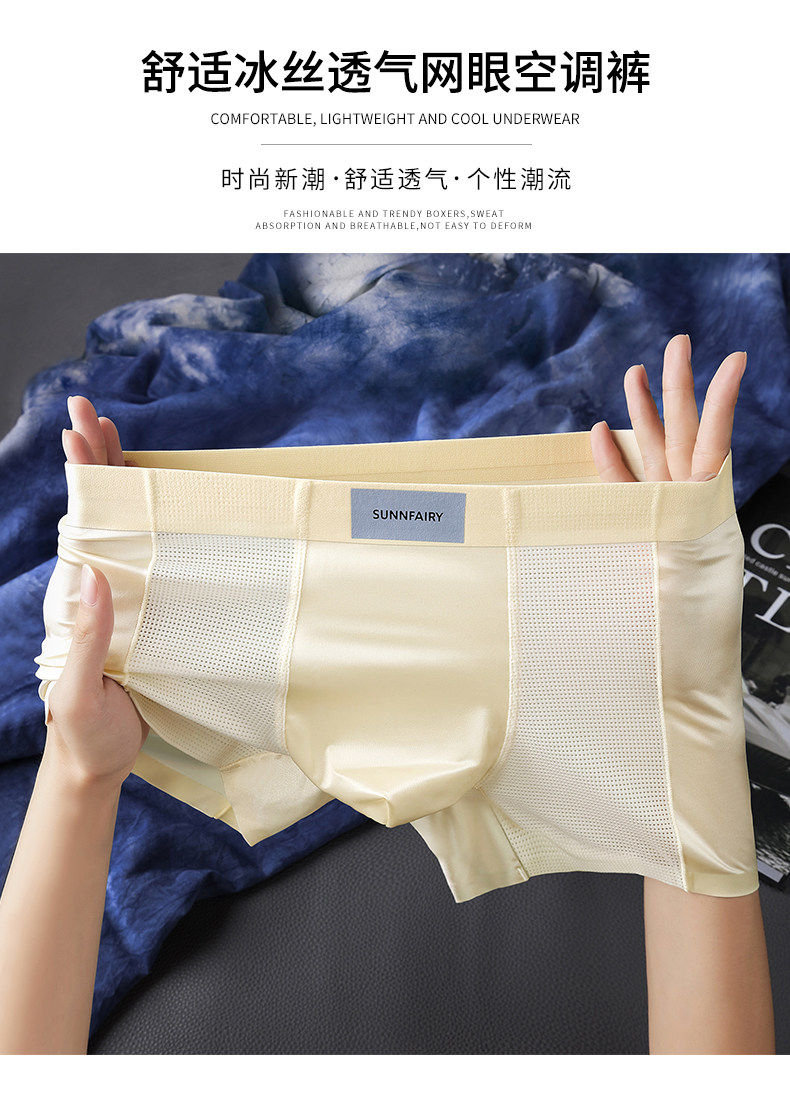 Satin Ice Silk Men's Underwear 2026 New Summer Thin Mesh Breathable Seamless Naked-Feel Boxer Shorts