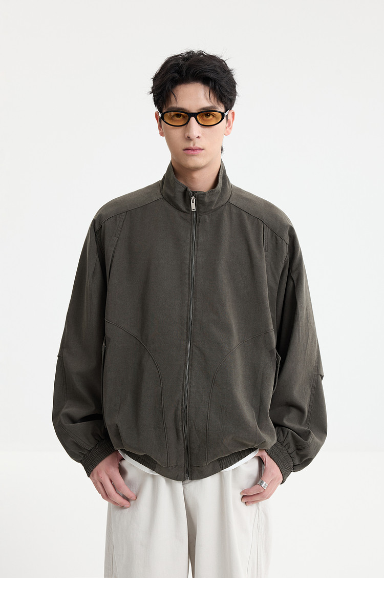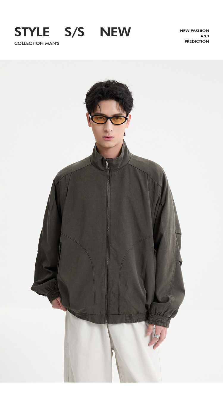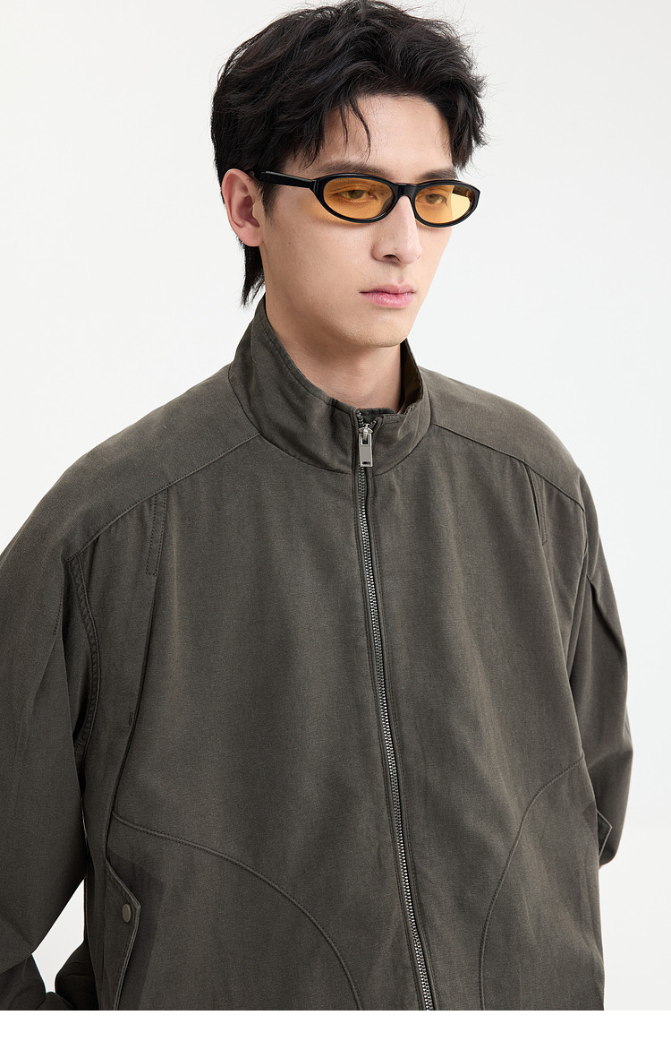 Black Zeming American Casual Men's Jacket 2026 Spring New Lyocell Motorcycle Stand Collar Workwear Silhouette Jacket