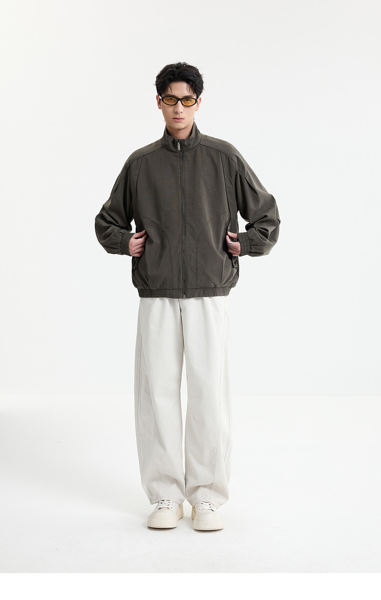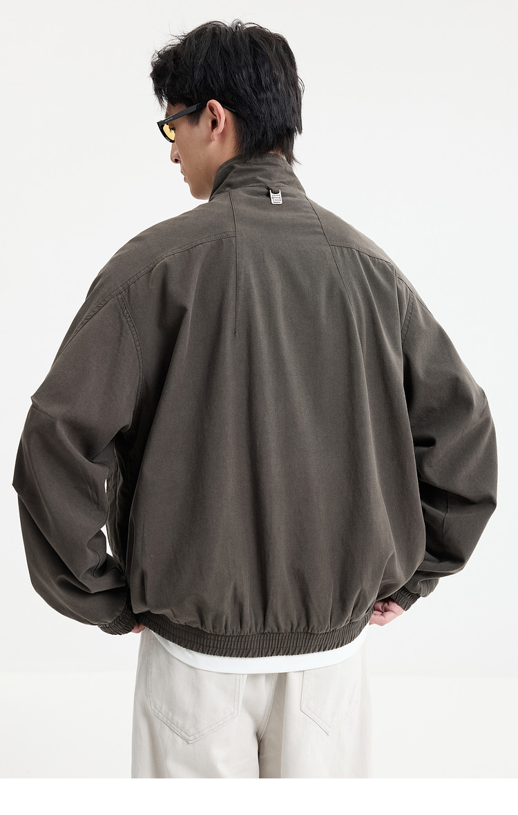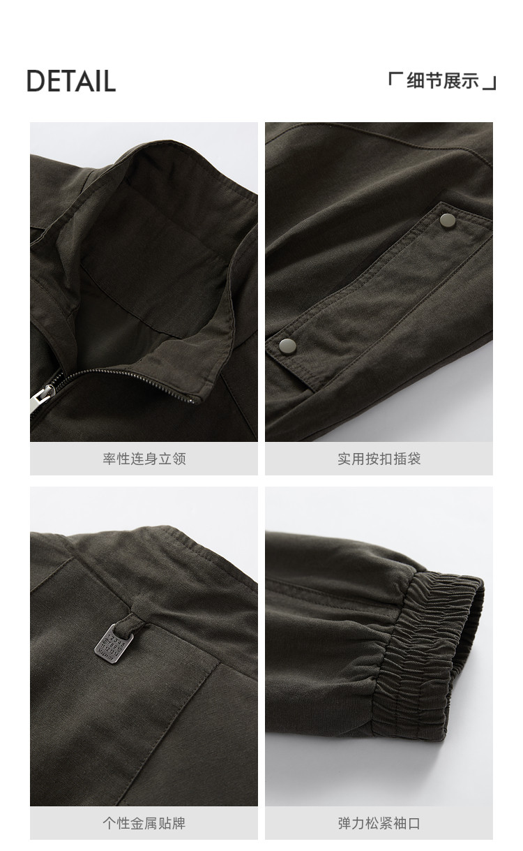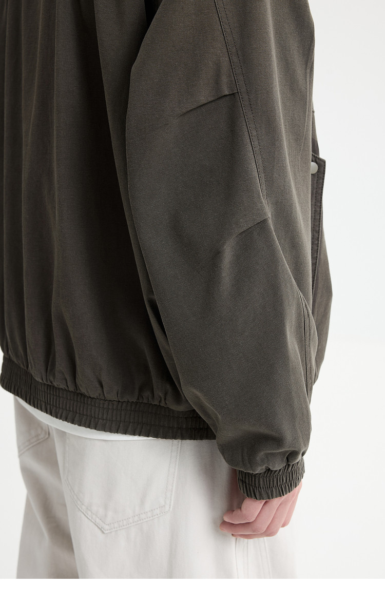 Black Zeming American Casual Men's Jacket 2026 Spring New Lyocell Motorcycle Stand Collar Workwear Silhouette Jacket
