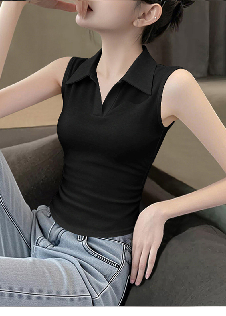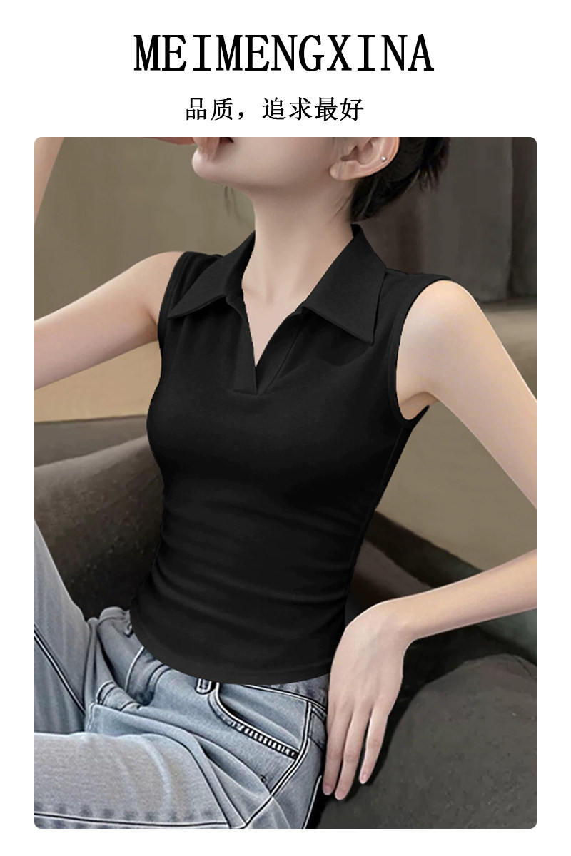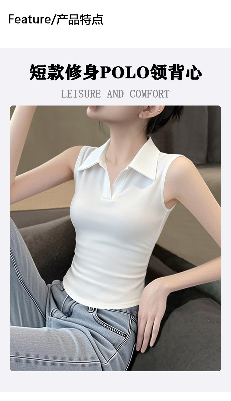 Slim-Fit Polo Collar Pure Cotton Short Vest for Women, European Style 2026 Summer New Slimming Irregular Top